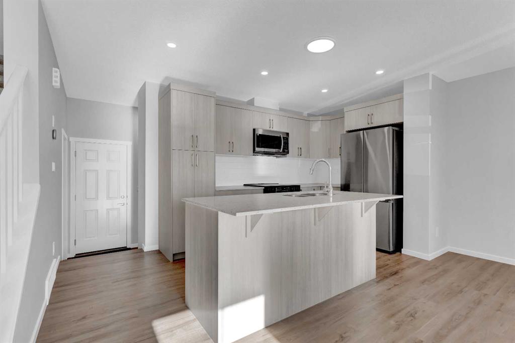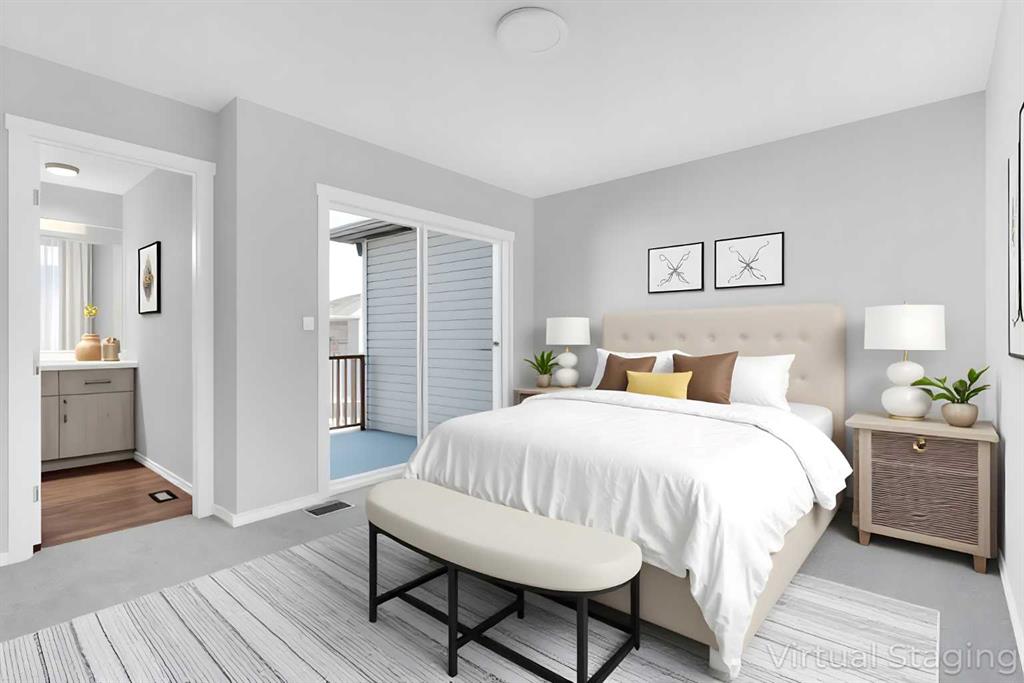 You are invited to view this Never occupied, absolutely Brand New and Freehold (No Condo Fee) Townhome equipped with Solar Panels that has it all- Front Porch, very practical layout of the living, dining and kitchen as large as some detached homes, a large mudroom with inbuilt shelves and coat hooks leading to a large powder room and the best of all- A double attached Garage adding much needed convenience over the winters to come. Upstairs: Owner's suite that consists of a large bedroom with attached balcony, a true walk-in closet and a 4 pc ensuite. There are two more Bedrooms that can all fit king sized bed, another common 4 pc bath and a must have 2nd level laundry. The home is sunlit all day due to the exposure and the evergreen finishes. There's a fence across the back alley separating the rear lane from the homes behind, for a nice clean access to the garage. Come and check it out today!
