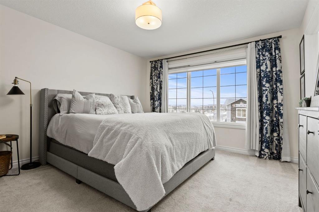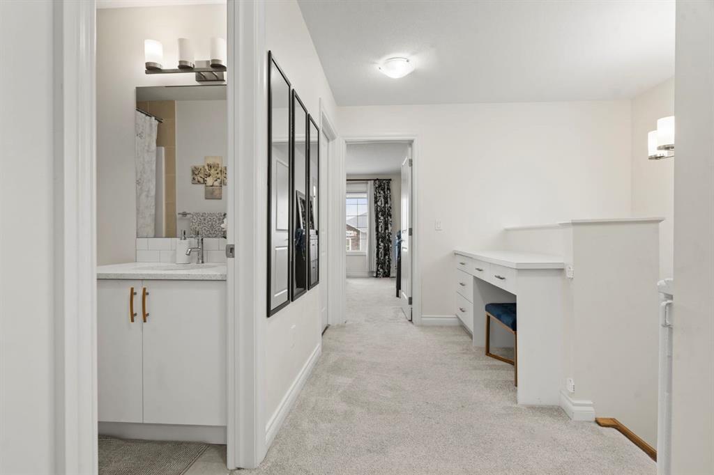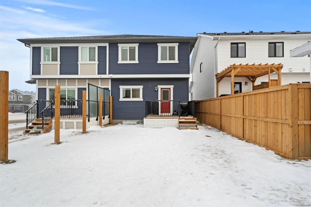 Welcome to this beautifully maintained 2-storey duplex in the heart of Cochrane, offering modern finishes, including smart technology with controls for lights, heat and door locks that can be controlled through your phone. As well as an Alexa doorbell. Thoughtful upgrades, and exceptional versatility in a neighbourhood loved for its proximity to schools, daycares, parks, and everyday amenities. The main level welcomes you with a bright, open-concept layout highlighted by vinyl plank flooring, recessed lighting, and stylish feature accents that add warmth and contemporary appeal. The inviting living room has large windows that flood the space with natural light creating an ideal setting for both everyday living and entertaining. At the heart of the home is the stunning kitchen, thoughtfully designed with quartz countertops, stainless steel appliances, crisp white cabinetry, and a large centre island with seating. Pendant lighting and a clean tile backsplash complete the space, while the adjacent dining area provides ample room for family meals and gatherings. A convenient main-floor powder room completes this level. Upstairs, you’ll find three well-sized bedrooms, including a serene primary retreat featuring a walk-in closet and private 4-piece ensuite. Two additional bedrooms are served by a second 4-piece bathroom, creating a functional and family-friendly layout. The upper level also includes convenient laundry located near the bedrooms and a thoughtfully designed built-in desk/workstation, perfect for homework, remote work, or creative use. The fully finished basement adds incredible flexibility and value, offering a spacious recreation area ideal for a home gym, media room, play space, or studio. This level also features a bedroom and bathroom, making it perfect for guests, teens, or extended family. Custom built-in storage and modern finishes complete this well-designed lower level. Additional highlights include central air conditioning for year-round comfort and a thoughtfully planned layout with 1,486 sq. ft. of above-grade living space, plus an additional 660.27 sq. ft. in the professionally developed basement. Situated in a welcoming Cochrane community close to parks, schools, daycares, and local amenities, plus enjoy, an outdoor pump track, skate park, and outdoor rink within a 5 min walk of the home. This home offers the perfect balance of style, comfort, and location ideal for families, first-time buyers, or anyone looking to enjoy small-town living with modern conveniences. Don't miss your chance to see this one today. Quick possession is available.