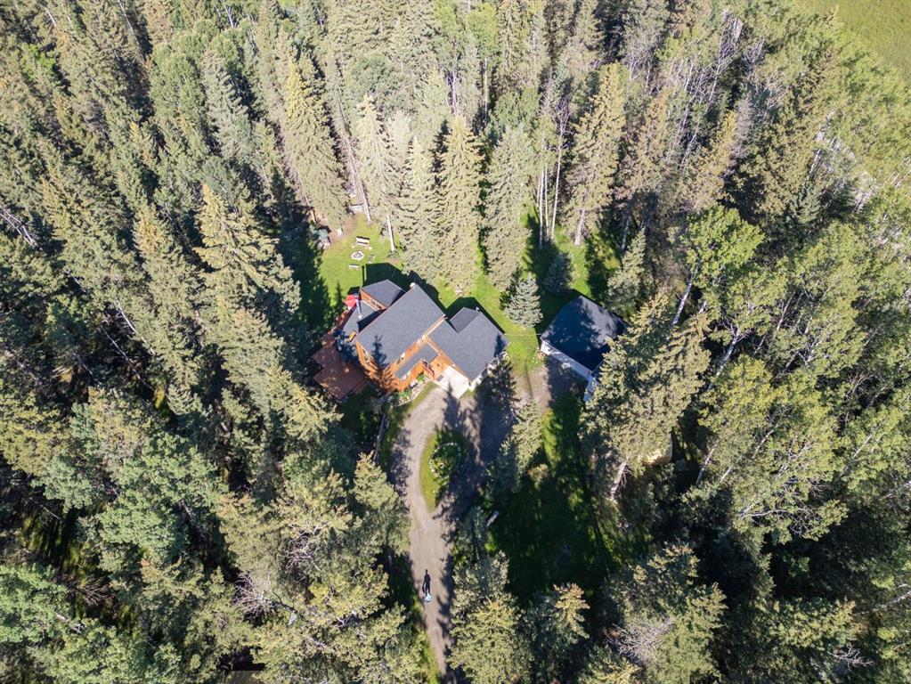 Escape to your own private 2.51 acre woodland paradise with this charming 4-bedroom, 2-bathroom home set on a beautifully treed lot in the serene Benchlands community. Nestled among towering evergreens, this property offers peace, privacy, and the perfect blend of rustic charm and modern comfort. Inside, warm wood accents and vaulted ceilings with skylights create a bright, inviting atmosphere. The sun filled living room features large windows overlooking the forest and a cozy airtight wood burning stove set against a stone feature wall. The spacious kitchen offers ample cabinetry, a gas stove, and direct access to the outdoors, ideal for both everyday living and entertaining. Bedrooms are generously sized, and bathrooms include unique touches such as vibrant tile work and wood finishes. The property includes an oversized detached garage with space to park 2 cars plus workshop space for quads or motorbikes, or woodworking, plenty of parking with a carport also attached to the house. Lush green space for outdoor activities, and the ability to have 2 horses onsite with corrals and horse shelter already in place. With its private driveway, fire pit area, and direct access to nature, this home is perfect for year-round living or a weekend getaway with easy access to the Waiparous area crown lands and the Ghost River just a few minutes walk from your front door. Call to book a showing today. New Starlink internet system just installed and will be left with the property. New roof 2024, new flooring 2024, new paint.