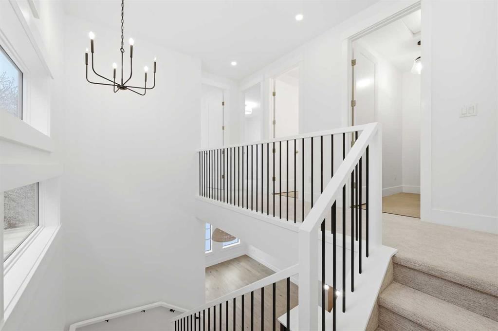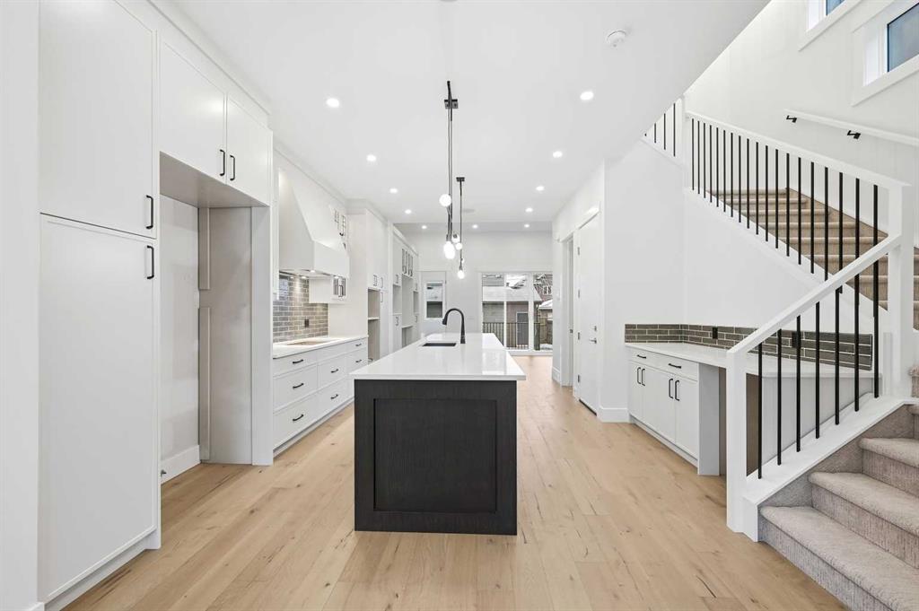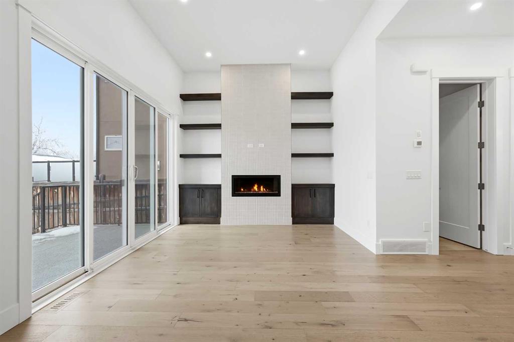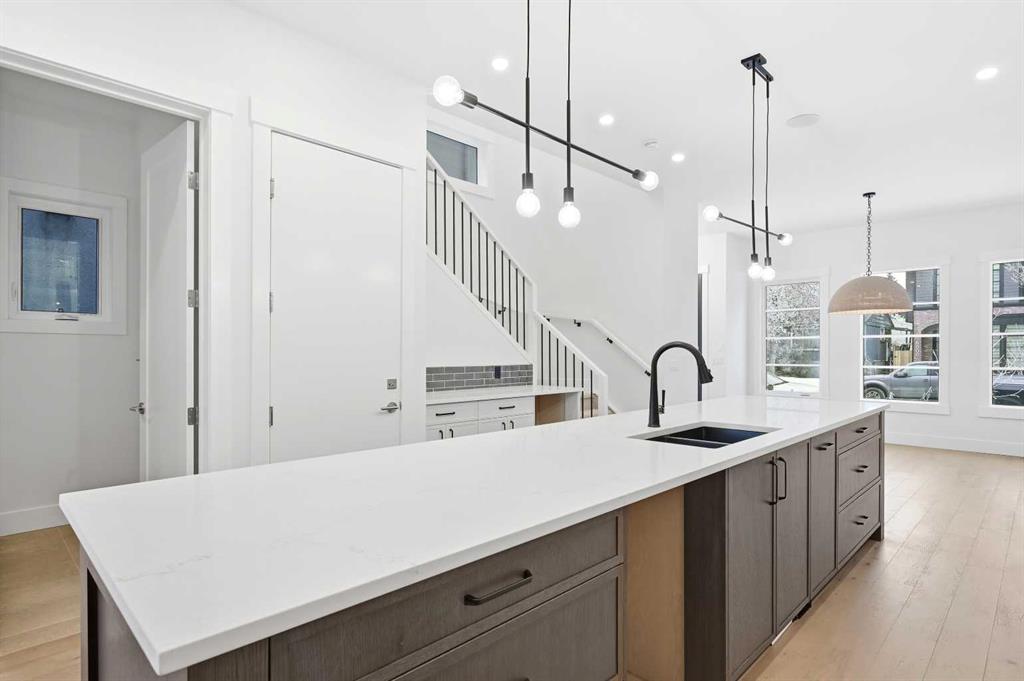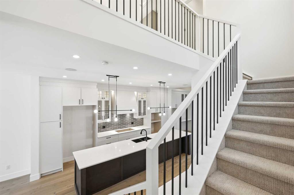 Welcome to 5005 21A Street. This modern 5-bedroom, 3.5-bath home opens with a bright dining area that leads directly into the main living space. The kitchen is built for both daily use and entertaining, featuring quartz countertops, ceiling-height cabinetry, a large island, and a dedicated coffee bar. In the living room, high ceilings, a gas fireplace, and a built-in desk create a functional yet comfortable atmosphere. Double doors connect to the back deck, while a mudroom and powder room add convenience to the main floor. The upper level features a primary suite with its own coffee station, two walk-in closets, and a 5-piece ensuite with a soaking tub and glass shower. Two additional bedrooms, a full bath, and the laundry room are also on this floor. With a classic brick exterior, double garage, and landscaped yard, the home is just minutes from the shops and dining in Marda Loop. Book your showing today!