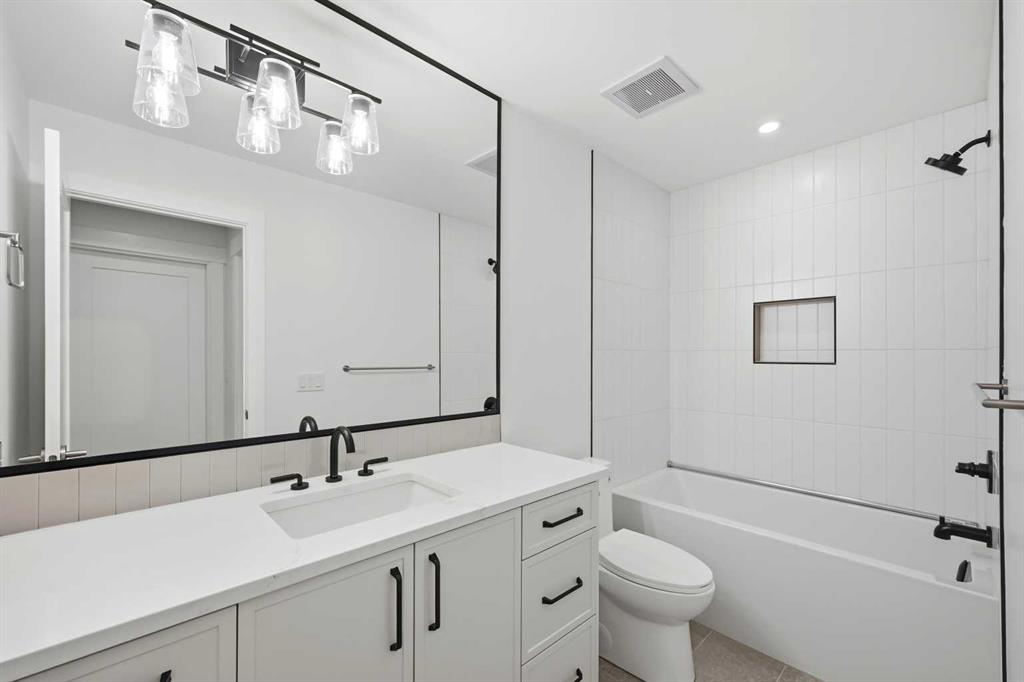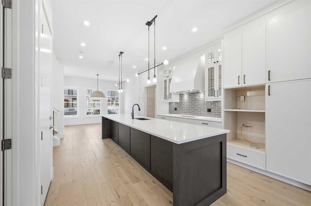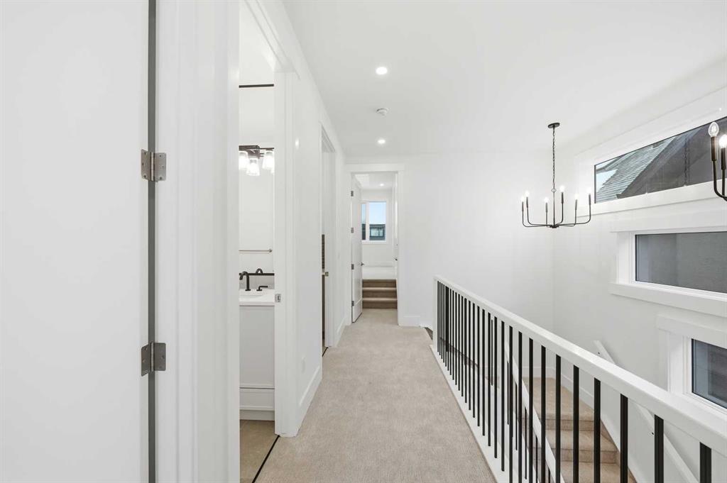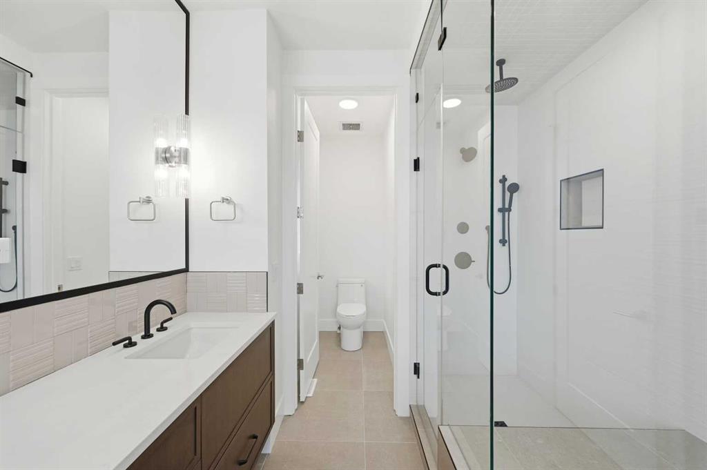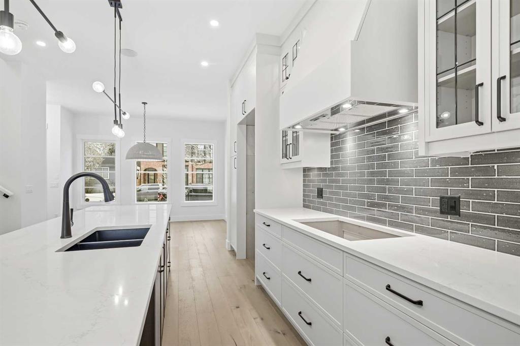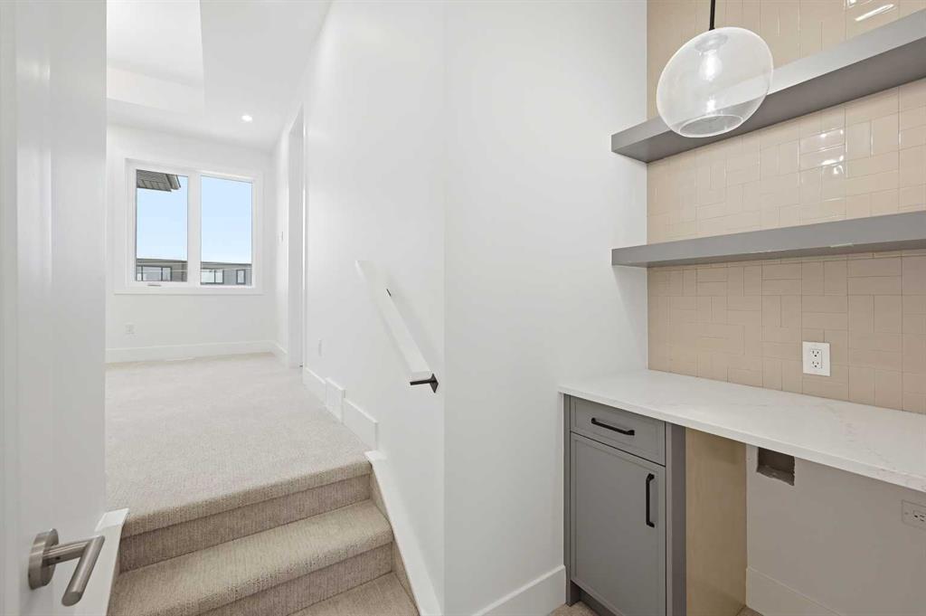 Welcome to 5005 21A Street. This modern 5-bedroom, 3.5-bath home opens with a bright dining area that leads directly into the main living space. The kitchen is built for both daily use and entertaining, featuring quartz countertops, ceiling-height cabinetry, a large island, and a dedicated coffee bar. In the living room, high ceilings, a gas fireplace, and a built-in desk create a functional yet comfortable atmosphere. Double doors connect to the back deck, while a mudroom and powder room add convenience to the main floor. The upper level features a primary suite with its own coffee station, two walk-in closets, and a 5-piece ensuite with a soaking tub and glass shower. Two additional bedrooms, a full bath, and the laundry room are also on this floor. With a classic brick exterior, double garage, and landscaped yard, the home is just minutes from the shops and dining in Marda Loop. Book your showing today!