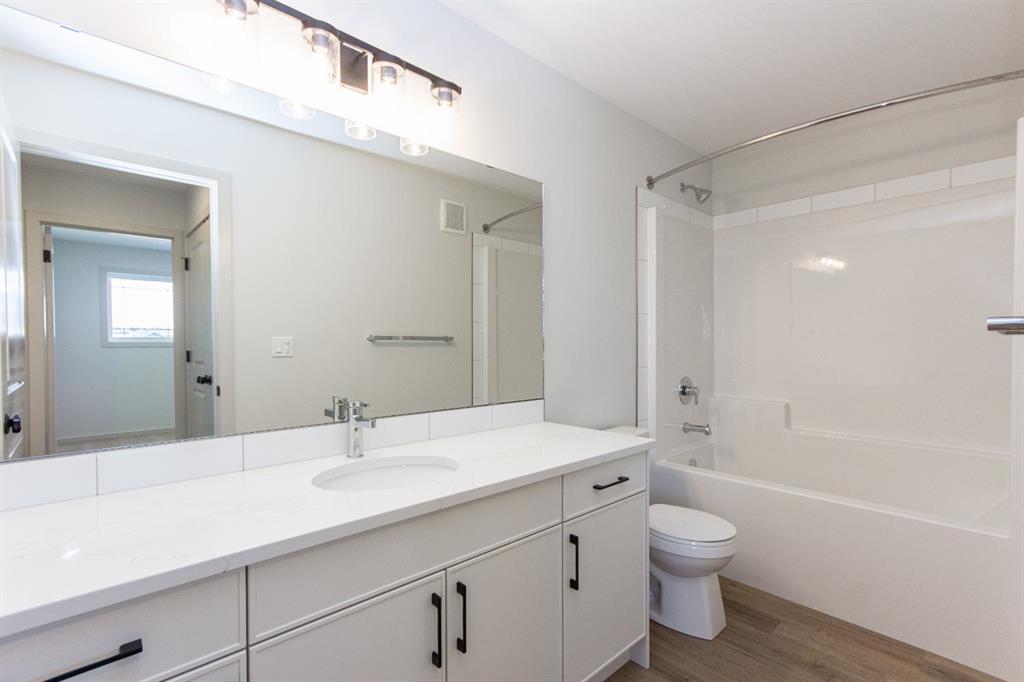 Be the first owner of this beautiful brand new build by Laebon Homes in Creekside! Designed with a family in mind, the Harlow is a spacious 1860 sq ft plan offering a wide open living space with vinyl plank flooring, large windows, and modern finishes throughout. The nicely appointed kitchen offers raised cabinetry, stainless steel appliances, quartz countertops, a large island with eating bar, and a walk in pantry. The living area is bright and spacious, and the adjacent dining area offers access to the back deck through large sliding patio doors. Upstairs you'll find a spacious bonus room, two nicely sized kids rooms each with their own walk in closet, a shared 4 pce bathroom, and conveniently located laundry. The large primary suite offers a 3 pce ensuite with walk in shower, private water closet, and a spacious walk in closet. The attached garage is insulated, drywalled, and taped. If you need more space, the builder can complete the basement development for you, and allowances can also be provided for blinds and a washer and dryer. 1 year builder warranty and 10 year Alberta New Home Warranty are included. Taxes have yet to be assessed, and GST is already included in the price. Immediate possession is available!