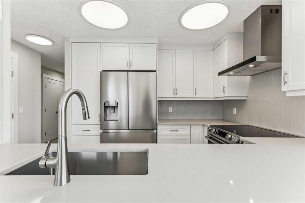 Impressive adult living 18+ COMPLETELY RENOVATED top to bottom 5th floor condo with exceptional workmanship and finishing in the exclusive Odyssey Towers of Coach Hill, with only four units per floor. Enjoy panoramic views from the floor-to-ceiling curved windows in this beautifully appointed 1178sq ft, bright and open floor plan. The condo features a CUSTOM KITCHEN, two bedrooms, an updated bathroom with a walk-in shower, in-suite laundry with a sink, a large in-suite storage room, and a generous-sized balcony. Renovations include a custom kitchen, vanities with quartz throughout, a complete stainless steel appliance package, air conditioning, a stunning feature wall with a built-in electric fireplace, new flooring throughout (luxury vinyl plank, and carpet), a new laundry sink, a wall-to-wall walk-in shower, knockdown textured ceilings throughout, upgraded plumbing and electrical, and much more. There are two parking stalls—one secured underground and a second convenient outdoor stall, as well as ample visitor parking. Amenities include a personalized building manager, a guest suite in each building for overnight guests, a sauna/steam room, a resident's club, beautifully manicured green spaces and gardens, and a very well-managed and maintained complex. Enjoy maintenance-free living in one of Calgary's premier adult living communities! Conveniently located within minutes to the bus stop/direct line to West Side LRT Station, Ambrose University, Rundle College, West Side Rec Center, parks, pathways, restaurants, and less than fifteen minutes to downtown. Quick possession and move-in ready!