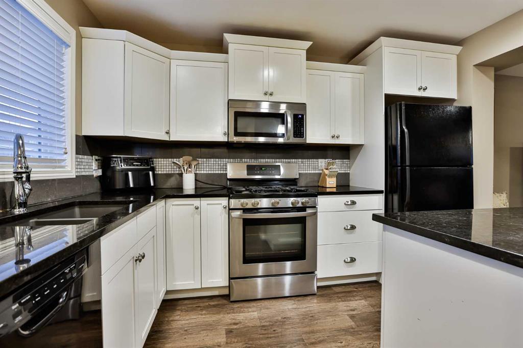 Well maintained 2 storey home offering low maintenance living with extensive hardscaping in both the front and backyard. The outdoor space is ideal for family gatherings and entertaining, featuring a large deck, detached double garage, and a powered gazebo with lighting and a TV mounting bracket, perfect for enjoying summer evenings. With parking for up to six vehicles, this property offers excellent convenience for families and guests alike. Inside, the home is bright, comfortable, and thoughtfully laid out with an open main floor, durable vinyl plank flooring, and a functional, well-lit kitchen featuring a central island that provides additional seating and prep space. Upstairs you’ll find three bedrooms, including a spacious primary with walk-in closet and ensuite, along with the convenience of upper-level laundry. The basement is developed into a non-conforming (illegal) suite with a bedroom, full bathroom, private laundry, and newly purchased appliances, offering excellent flexibility for extended family or additional income.