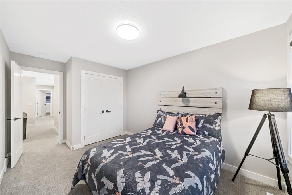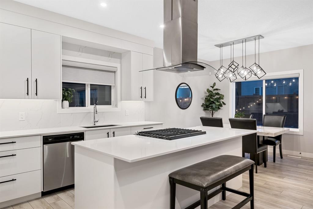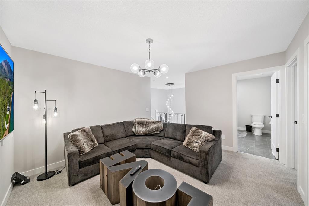 Experience elevated luxury living in the prestigious NW community of Carrington. This stunning custom Truman-built home offers 2,340 sq. ft. of refined living space, showcasing timeless design, exceptional craftsmanship, and premium upgrades throughout. The open-concept main floor features 9-foot ceilings, abundant natural light, and a chef-inspired gourmet kitchen with gas range, chimney hood fan, marble backsplash, oversized island, and under-cabinet lighting. The elegant living room is anchored by a gas fireplace, creating the perfect space for entertaining. A main-floor bedroom with a full 4-piece bath adds rare flexibility for guests or multigenerational living. Upstairs, enjoy four spacious bedrooms, a bonus/family room, upper-level laundry, and two full bathrooms, including a luxurious primary retreat with a spa-like 5-piece ensuite and walk-in closet. Meticulously maintained and in prestige condition, this exceptional home blends luxury, comfort, and functionality in one of NW Calgary’s most sought-after communities. A rare opportunity not to be missed.