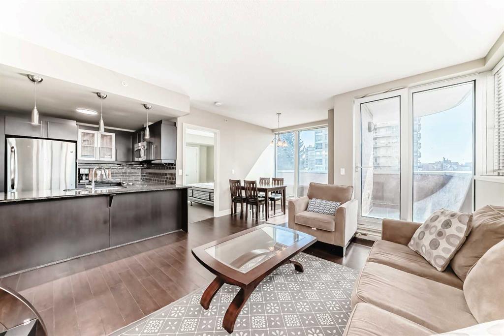 The MONTANA is a classical style building located in the heart of shopping and entertainment district, walking distance to 17th Ave. This is a 2 bed and 2 bath with bright and sunny SOUTH view of Calgary beautiful skyline. Entering into this unit you are welcomed by dark hardwood floors in hallway, kitchen, living room and dining area, 9' ceilings, in-suite laundry, granite counters, two generous-sized bedroom with walk-in closet. Balcony with gas BBQ outlet. Central air condition keeps the home cool all summer long. One titled underground parking stall, and storage locker come with the unit. This building has 3 high-speed elevators, gym on the main floor totally renovated with new equipment, waste chute on every floor, professional and convenient concierge services available to all residents. MONTANA is the best location in Beltline, just around the corner from Uptown 17th Ave and Mount Royal Village, enjoy the fashionable Inner City lifestyle!