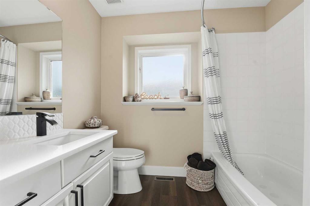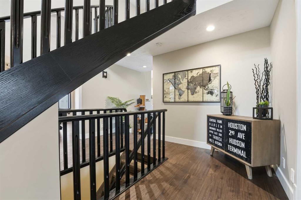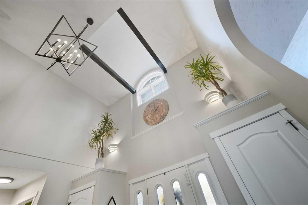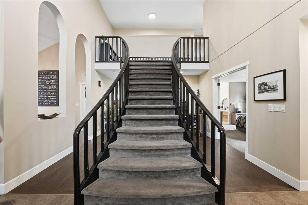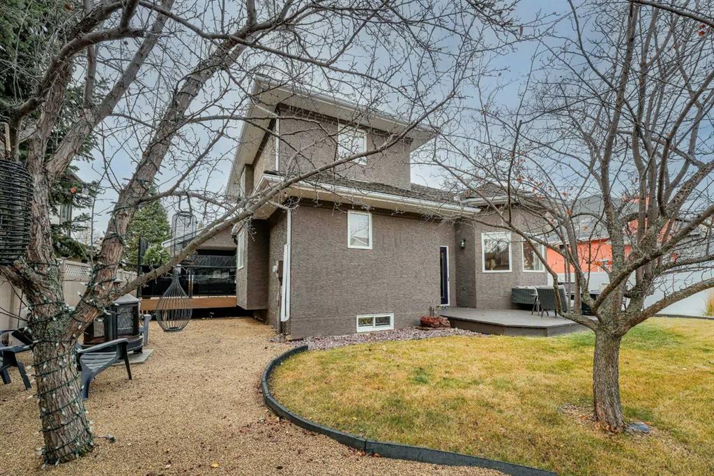 Discreetly set on a quiet street in one of Red Deer’s most sought-after neighborhoods, this sophisticated executive residence blends timeless design with refined modern luxury. A striking hourglass staircase and soaring ceilings deliver an immediate sense of scale and presence. Designed for a polished, low-maintenance executive lifestyle, the main level is bright, polished, and thoughtfully updated with engineered hardwood, curated designer lighting, and a clean contemporary aesthetic. Vaulted ceilings and a gas fireplace anchor the living space, while the formal dining area is ideal for elevated entertaining. The refreshed kitchen features white cabinetry, quartz countertops, sleek black fixtures, stainless-steel appliances, and updated lighting, flowing seamlessly into a sunken living space with a stone-faced fireplace and walkout to an expansive deck. The main-floor primary suite offers a spa-inspired ensuite and direct access to a private Duradek patio complete with privacy screens and a Dynasty Spa hot tub — a true executive retreat. Upstairs, two generous bedrooms and an updated four-piece bath provide flexible guest or office space. With a heated double garage, Gemstone lighting, in-ground irrigation, and professionally finished landscaping, this meticulously maintained Anders home is truly move-in ready — refined, private, and unforgettable