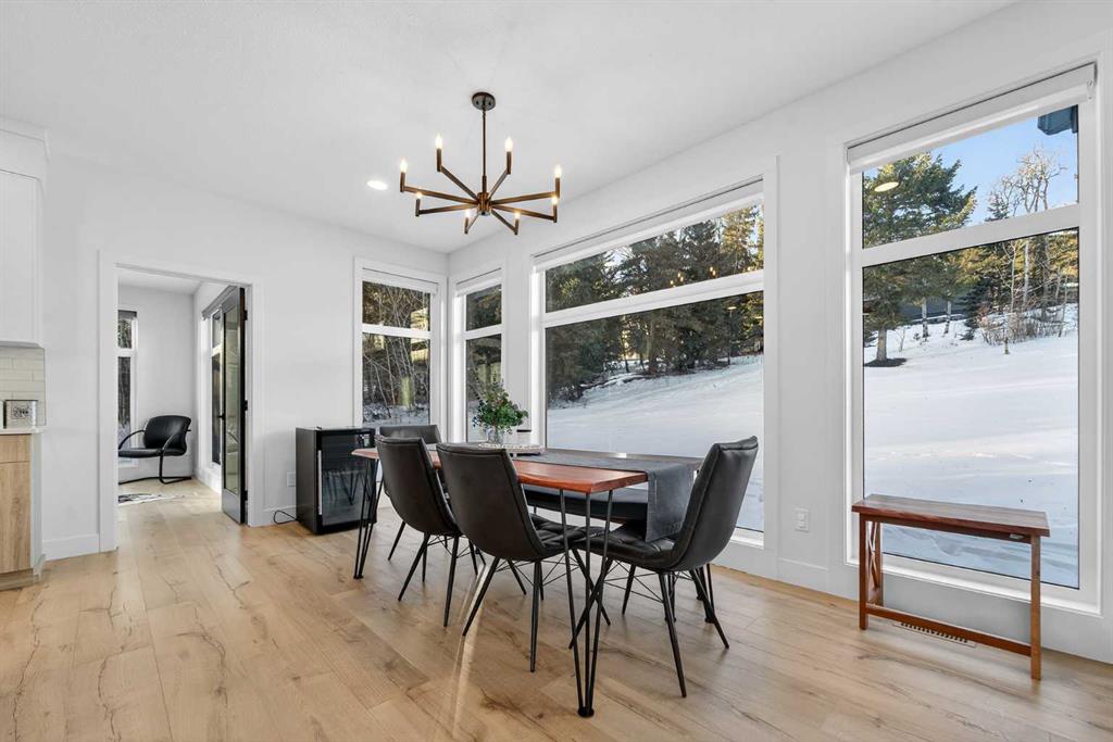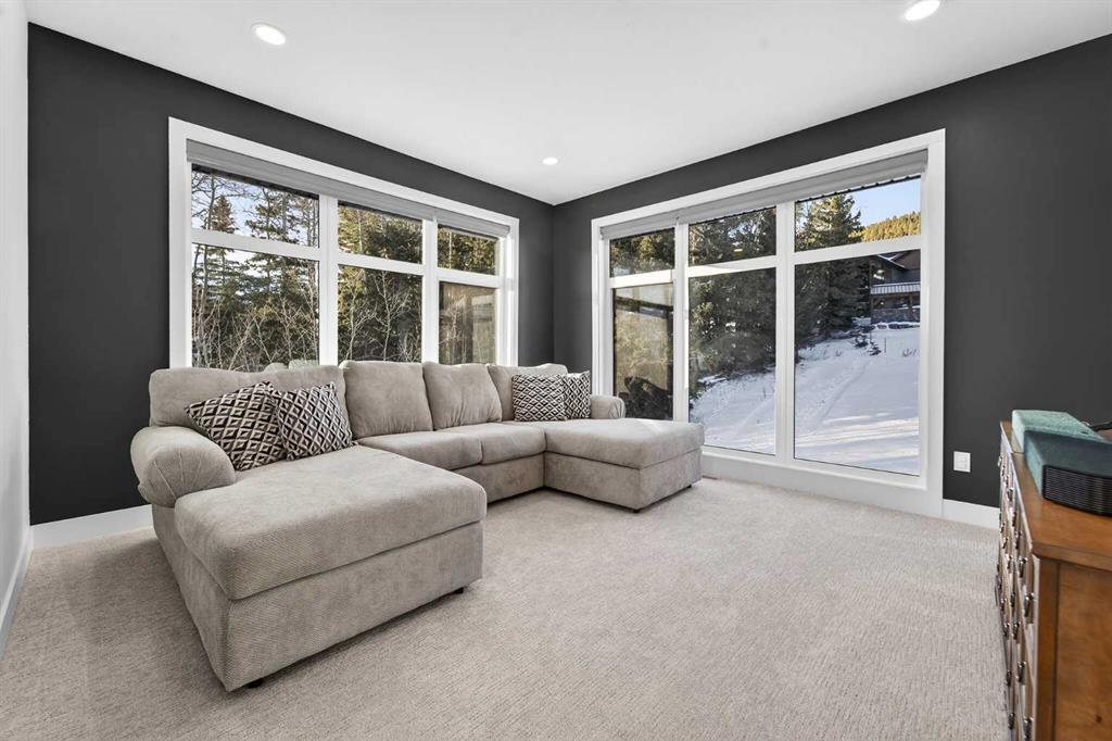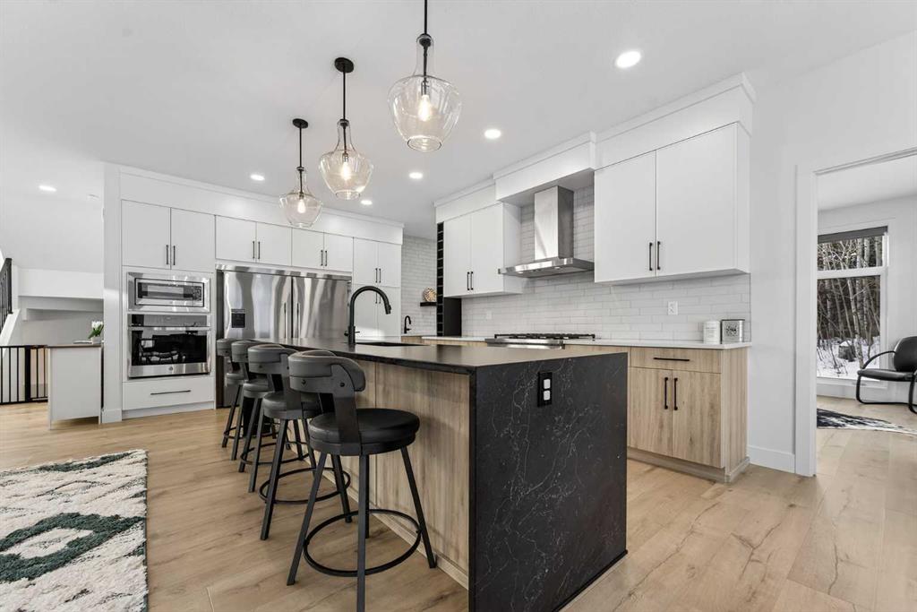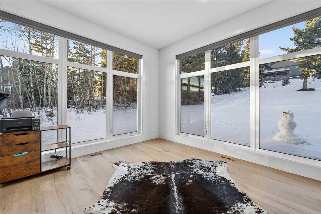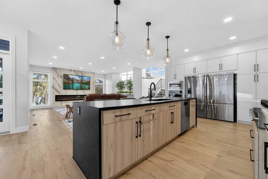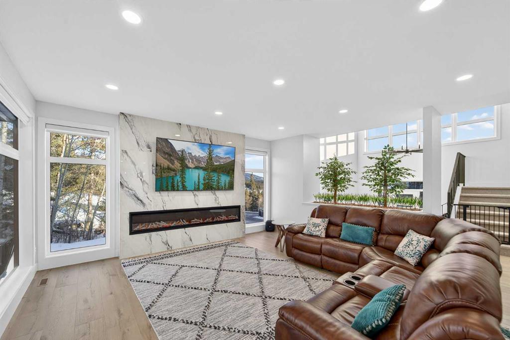 Welcome to refined mountain living in the prestigious, gated community of Kananaskis Wilds, where this Stranville Living Master Builder home sits perfectly positioned to take in sweeping views of the Crowsnest Pass and iconic Turtle Mountain. Set against the natural beauty of Coleman, this residence blends modern luxury with its rugged surroundings in a way that feels both elevated and effortless. From the moment you enter, the grand foyer and soaring ceilings create an immediate sense of space and sophistication. The main living area is anchored by a striking quartz fireplace and framed by floor-to-ceiling windows that capture the ever-changing mountain landscape, bringing the outdoors in year-round. Thoughtfully added automated window coverings enhance both comfort and convenience, allowing you to control light and privacy at the touch of a button. The kitchen is as functional as it is beautiful, designed for both entertaining and everyday living. A large quartz waterfall island offers generous seating, while premium Fisher & Paykel appliances—including a gas cooktop, dual fridge/freezer, and built-in oven and microwave—deliver a seamless, high-end finish. The butler’s pantry, complete with custom shelving and a secondary sink, adds a layer of practicality that serious cooks will appreciate. A sun-filled executive office on the main floor is surrounded by windows, making working from home feel anything but routine. Upstairs, the primary suite is a true retreat, featuring its own tiled fireplace, wet bar with wine fridge, and expansive windows that frame the mountain views beautifully. The walk-in closet includes a dedicated vanity area and connects discreetly to the upper laundry room, keeping daily life streamlined. The ensuite rivals a private spa, with dual vanities, a glass-enclosed tiled shower, and a soaker tub set among windows that invite in natural light and scenery. Two additional bedrooms on this level continue the theme of space and views, while the bonus room offers a cozy yet bright place to unwind, overlooking the surrounding woodland. Outside, the landscaping has been fully completed, creating a polished exterior that complements the home’s architecture and setting. With the recent addition of air conditioning, the home is now equally comfortable through warm summer days and cool mountain evenings. This is a rare opportunity to own a meticulously finished home where luxury, technology, and nature come together seamlessly, all within one of the Crowsnest Pass’s most sought-after communities.