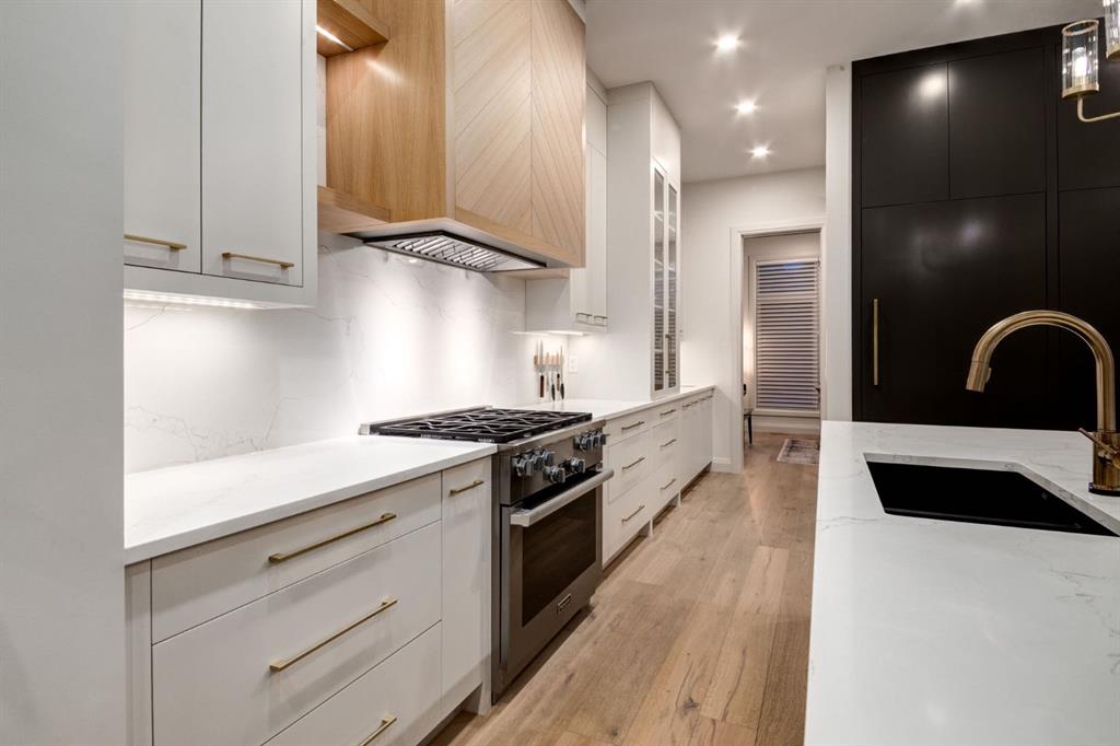 Experience the pinnacle of luxury living in this exceptional "ELLE Decor" residence by Willix Developments, where unparalleled craftsmanship meets timeless design. Boasting over 4,000 square feet of meticulously developed living space, this sophisticated home is perfectly positioned on a generous lot with a sunny, south-facing backyard, offering privacy, elegance, and space for outdoor entertaining or relaxation. A detached, heated triple garage adds convenience, while the vibrant heart of Marda Loop, with its eclectic shops, cafés, and cultural offerings is just a short stroll away, blending urban lifestyle with the tranquility of a private retreat. From the moment you enter, the home impresses with its soaring ceilings on all three levels, extensive exterior brick detailing, and a thoughtfully designed floor plan. Natural light pours through large windows, highlighting every detail of the refined interior, from designer light fixtures and striking wallpaper accents to exquisite millwork, tile detailing, and wide-plank white oak hardwood floors. The seamless flow of the living spaces creates an inviting atmosphere, ideal for both everyday family life and sophisticated entertaining. The chef-inspired kitchen is a statement of modern luxury, featuring a full Miele appliance package, sleek custom cabinetry with ample storage, quartz countertops and backsplash, and a generous center island perfect for meal preparation or casual gatherings. Adjacent spaces flow effortlessly into the dining and living areas, anchored by a gas fireplace framed by custom-designed built-ins that create warmth and intimacy. The private primary suite is a true sanctuary, complete with a spa-inspired steam shower, a spacious dressing area, and a coveted makeup area. Three additional bedrooms are generously proportioned, providing comfort for family or guests. For productivity and wellness, the home offers a main-level office and a lower-level gym, along with a temperature-controlled glass wine display for the discerning collector. Radiant in-floor heating in the basement ensures comfort year-round, while thoughtful touches throughout emphasize quality and attention to detail. This residence is more than just a home - it is a lifestyle. Imagine relaxing on the sunny patio, or walking to nearby cafés, boutique shops, and local entertainment. Excellent schools, parks, and a community center are all within easy reach, making this location ideal for families seeking convenience without compromising sophistication. The combination of indoor luxury and outdoor living creates a perfect harmony that caters to both relaxation and vibrant social living. Every aspect of this home reflects refinement, quality, and attention to detail, providing an unmatched living experience in one of the city’s most desirable locations. From morning coffee in the kitchen to evening gatherings by the fireplace, every day is elevated by the thoughtful design, premium finishes, and enviable lifestyle this property affords.