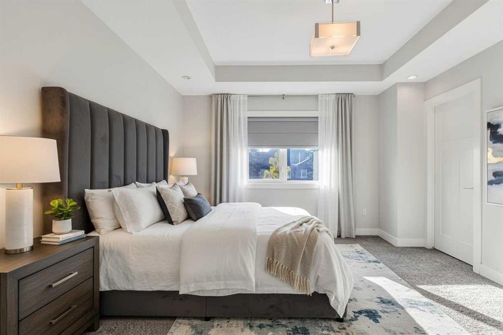 FRONT UNIT with WEST EXPOSURE, CENTRAL AC, and a thoughtful layout designed for comfort and flexibility. NATURAL LIGHT fills the main level where a front living room overlooks the street and a GAS FIREPLACE with floor-to-ceiling tile adds a relaxing focal point. Wide-plank HARDWOOD floors extend into a central dining area with a table and chairs included. The modern kitchen is appointed with QUARTZ COUNTERTOPS, a peninsula island, GAS STOVE, FULL HEIGHT CABINETS, CORNER PANTRY, and stainless steel appliances. A tucked-away powder room completes the main floor. Upstairs, a SKYLIGHT brightens the stairwell and illuminates the upper level. The primary bedroom is spacious with a COFFERED CEILING, WALK-IN CLOSET with BUILT-IN ORGANIZERS, and a LUXURIOUS ENSUITE featuring a DUAL VANITY and STAND-UP SHOWER. A second bedroom includes its own 4PC ENSUITE with skylight, creating a DUAL PRIMARY FLOORPLAN ideal for guests, roommates, or family members. The FINISHED BASEMENT expands the living space with a rec room perfect for movie or game nights, a THIRD BEDROOM that offers flexibility for guests, a teenager’s retreat, or a quiet home office, a 3PC BATH with a sleek stand-up shower for modern convenience, and a thoughtfully placed laundry area with washer/dryer included for everyday practicality. Outside, a PRIVATE FRONT COURTYARD creates ample outdoor space to barbeque and unwind, complemented by low-maintenance landscaping. A SINGLE GARAGE provides secure parking and storage. Situated in the established neighborhood of KILLARNEY/GLENGARRY, this home balances quiet residential streets with urban convenience. Westbrook LRT, Killarney Aquatic Centre, and numerous local parks are nearby along with schools, coffee shops, and restaurants on 17th Avenue. Quick access to downtown and major routes ensures effortless connectivity. This thoughtfully designed residence combines style, comfort, and a walkable location for a lifestyle that feels both connected and at ease.