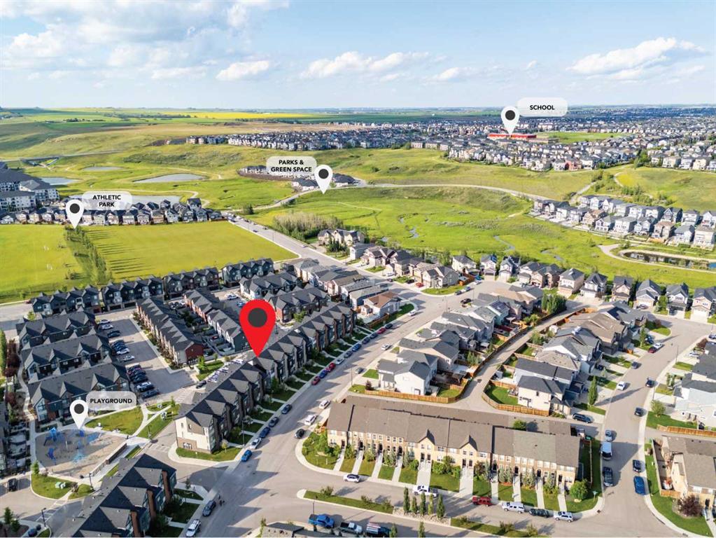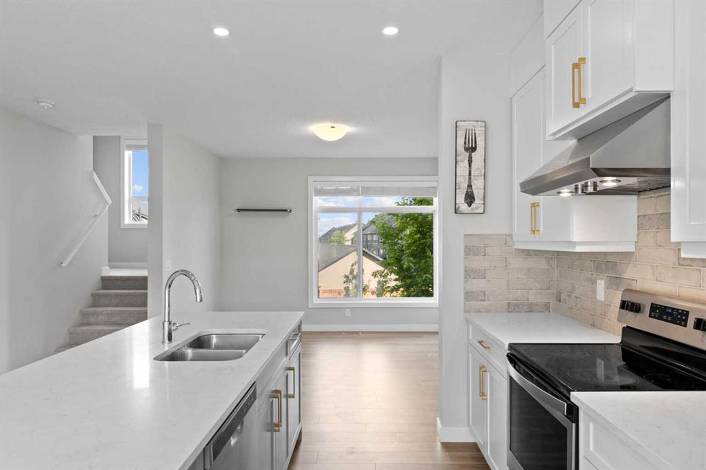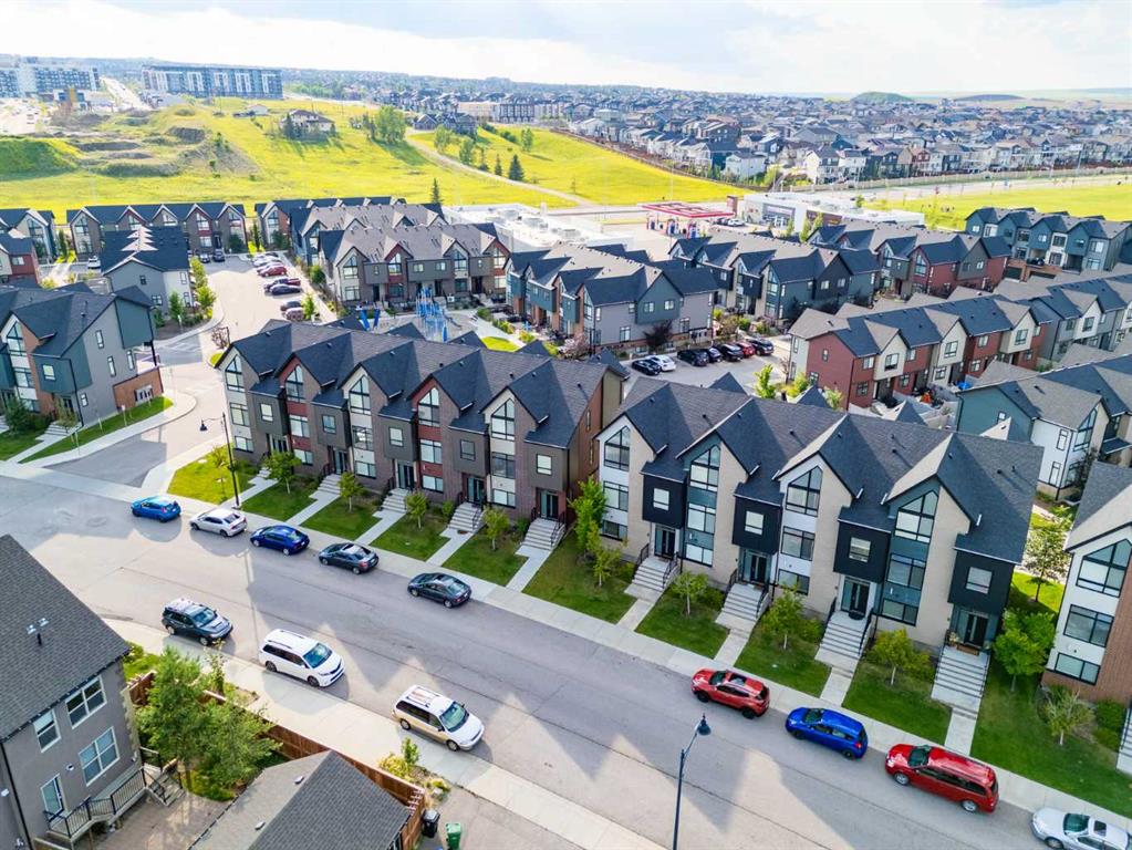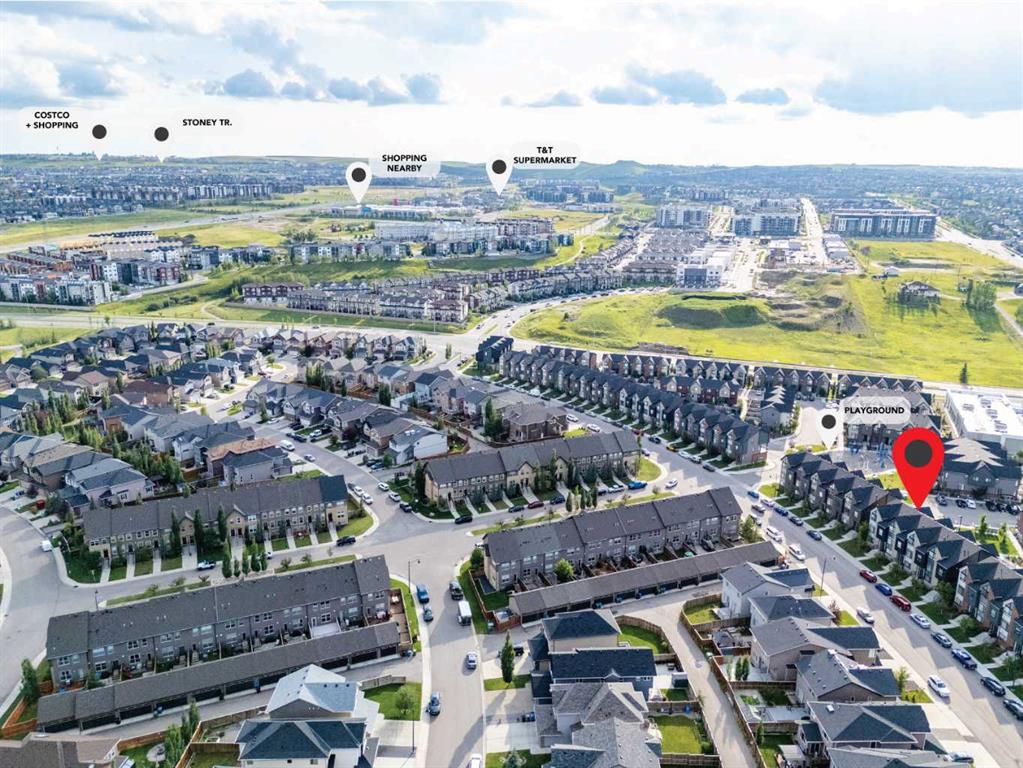 Welcome to this stylish 3-story townhome with attached double car garage in the community of Sage Hill. This particular condo is an end unit with full height brick exterior wall in the front and cement board siding. It has a modern design inside with 3 storeys that boasts many upgrades, including all carpet areas , laminate hardwood floorings, bath and laundry tiles and air-conditioning. The entrance is on street level that features a good-sized office with a large window and easy access to the double garage in the back. The living area on the second level has an open concept design with a spacious living room, a functional kitchen and a roomy dining room with large windows on two sides. The southeast facing windows in the living room allow natural sunlight to brighten and warm up the home. Kitchen is equipped with stainless steel appliances including the upgrade of Elica 30” under the cabinet range hood and a 2022 french door fridge with water dispenser and bottom freezer. Countertops in the kitchen and baths were upgraded to 1 ¼” granite. By the dining room is an exit to a covered balcony with a gas line for barbeque. A 2-piece half bath is on top of the stairs from the ground level. All three bedrooms are on the top floor. The master bedroom is completed with vaulted ceiling, raked windows that extend right to the ceiling, a walk-in closet and a 4-piece ensuite which has been upgraded to the 5’ stand-up shower with framed 5 mm glass slider door. The other two bedrooms are served by another 4-piece main bath on this level. The double attached garage, both heated and insulated, is backside facing. This complex is within walking distance to Symons Valley Natural Reserve. Minutes to shopping centres and major traffic arteries and highways. Don't miss the opportunity to make it your own! Book your showings today!