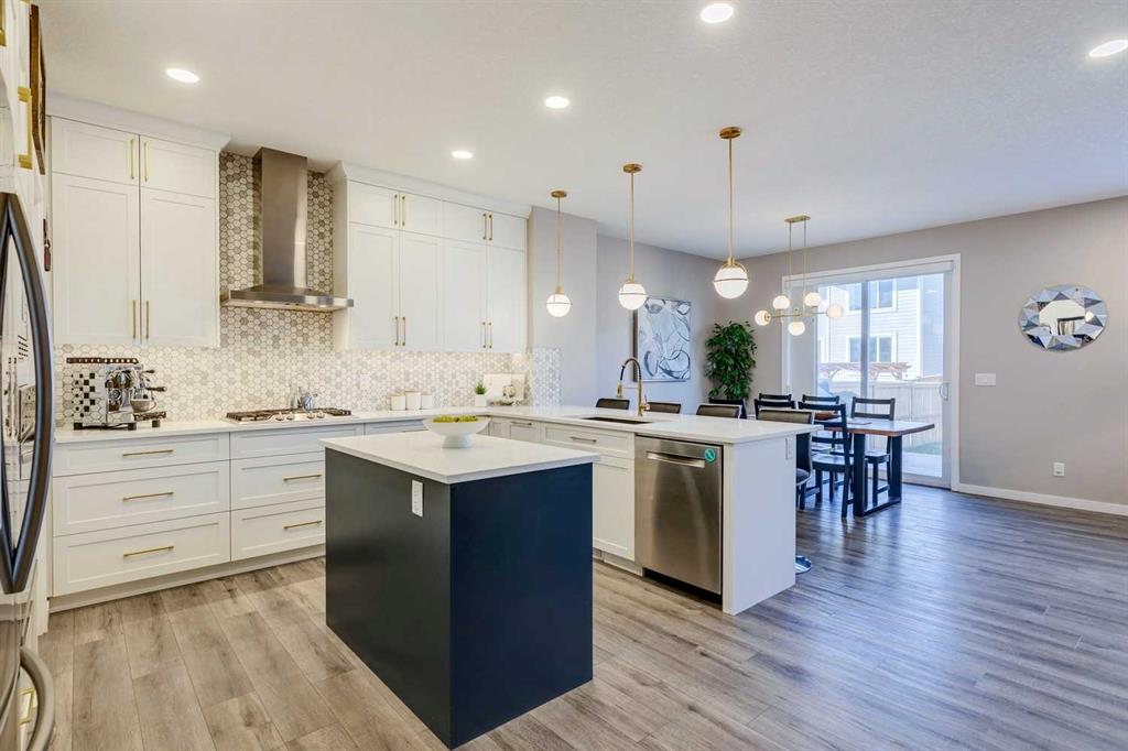 | RARE 3RD-FLOOR LOFT | 4 BEDROOMS UPSTAIRS | LAKE COMMUNITY LIVING | Looking for a beautiful family home with LOTS OF SQ FT? Are you ready to LIVE in a community where you can ice skake in the winter or swim/paddleboard/fish in the summer. Come check out one of Calgary’s MOST DESIRABLE LAKE COMMUNITIES. This beautiful FAMILY HOME features an OPEN-CONCEPT MAIN FLOOR, designed for get togethers. At the heart of the home, a chef-inspired kitchen impresses with FULL-HEIGHT WHITE CABINETRY, soft-close drawers, and undermount lighting that highlights the stunning hexagon tile backsplash. A contrasting navy island with QUARTZ countertops gives lots of additional food prep space. Kitchen also features GAS COOKTOP, built-in wall oven, microwave, and large pantry. The BRIGHT DINING AREA flows seamlessly to the backyard deck, while the inviting living room offers a modern fireplace and tons of NATURAL LIGHT. MAIN-FLOOR FLEX SPACE is ideal for a home office, music room or formal dining space…whatever you need. Mudroom with access to the garage is key for busy families. Upstairs discover 4 SPACIOUS BEDROOMS, including a primary suite with a large walk-in closet and spa-inspired ensuite featuring dual sinks, a deep soaker tub, and a glass-enclosed shower. A 5-piece main bath and upper-level LAUNDRY ROOM with extra storage you will love. The 3RD-FLOOR LOFT is a rare and versatile bonus — ideal as an additional GUEST SPACE, media room, home office, or teen retreat, and comes complete with a full 4-piece bath. The lower level offers endless potential for FUTURE DEVELOPMENT, with plenty of room for a recreation area, gym, or guest room. 2 AIR CONDITIONING UNITS. Set on a quiet street just MINUTES FROM MAHOGANY’S PARKS, PATHWAYS, AND THE LAKE, this home combines style, comfort, and thoughtful design in every detail. ALBERTA NEW HOME WARRANTY until April 2032. Don’t miss out on this one of a kind FAMILY GEM!