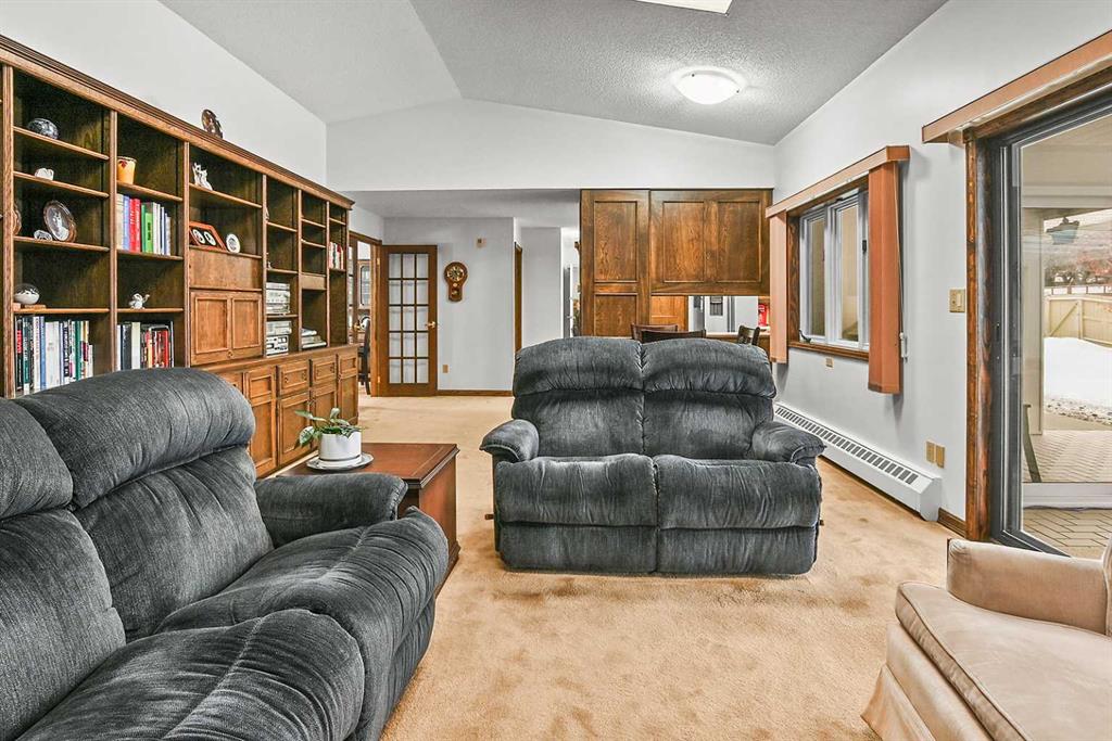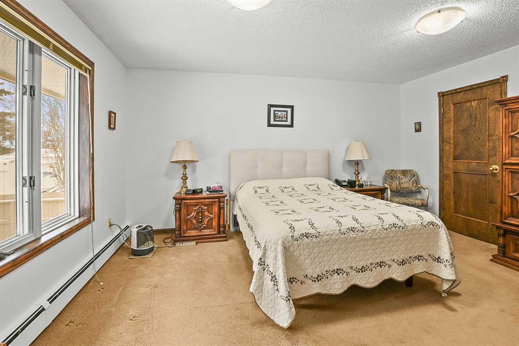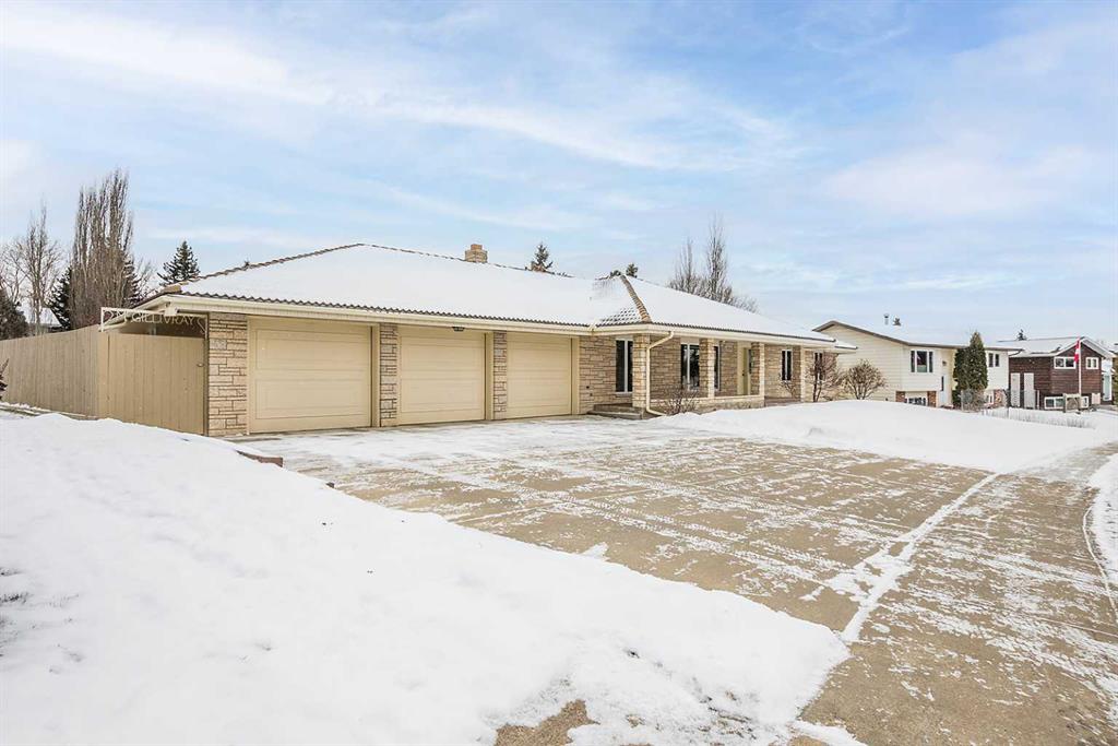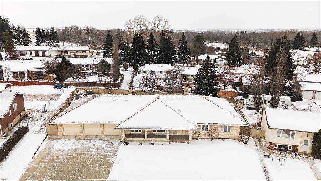 Back on Market and Priced to Sell. Nestled on an expansive 100’ lot in Innisfail, this custom-built bungalow is a rare gem, meticulously maintained by its original owners. Situated on TWO standard-sized lots, the maturely landscaped property boasts a programmable irrigation system, two rear RV-sized parking pads, a greenhouse, and two storage sheds. Built with premium materials, the home features engineered roof trusses, a gorgeous concrete tile roof, and a stucco exterior with striking Tyndall Stone accents. Inside, the sprawling main floor showcases exquisite custom woodwork, all built on-site by a local second-generation craftsman, adding a level of detail and quality rarely found. The chef’s kitchen offers custom-built cabinetry, a walk-in pantry, and updated stainless steel appliances, flowing into a bright family room with skylights, built-in wood bookshelves, and a stunning European-style fireplace with stonework. The formal dining room features a built-in china cabinet and French doors leading to the living room. The primary suite is a retreat with a walk-in closet and a luxurious 6-piece ensuite with a jetted tub, dual sinks, separate shower, and bidet. Two additional bedrooms, a 4-piece bathroom, a home office, main-floor laundry with built-in cabinets, and a powder room complete this level. The fully finished basement offers a huge family room with a second European-style fireplace, two large bedrooms, a 3-piece bath, cold storage, and 2 storage rooms. With a separate entrance from the oversized heated 3-car garage, this basement is perfect for teenaged kids or extended family. Additional features include a commercial-grade 9-zone hot water boiler system, dual hot water tanks, a reverse osmosis system, water softener, central vacuum, and an impressive 4-season sunroom overlooking the beautifully landscaped backyard. A one-of-a-kind home that offers space, elegance, and timeless craftsmanship!