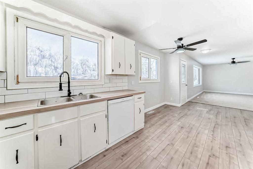 Welcome to 5309 43 Street in Olds, a beautifully renovated, move-in-ready home that offers a fresh and modern feel throughout with tons of storage. From the moment you step inside, you are greeted by bright new flooring and fresh paint that create an inviting first impression. The spacious living room features brand-new carpet and a large window that fills the space with natural light, while the kitchen has been tastefully updated with freshly painted cabinets, new hardware, updated counter-tops, and a new sink. All three bedrooms on the main floor have been completed with new carpet and fresh paint, including the ceilings, and all light fixtures throughout the home have been updated with a modern touch. The basement continues the same renovation story with new carpet and paint in both the bedroom and TV room, along with new laminate flooring in the hallway, providing excellent storage options in addition to flexible living space. Completing the property is a detached double garage with room for two vehicles, a workshop area, and even more storage, along with a newer furnace installed in 2018 and garage shingles replaced in 2022, offering comfort, functionality, and peace of mind in a great Olds location.
