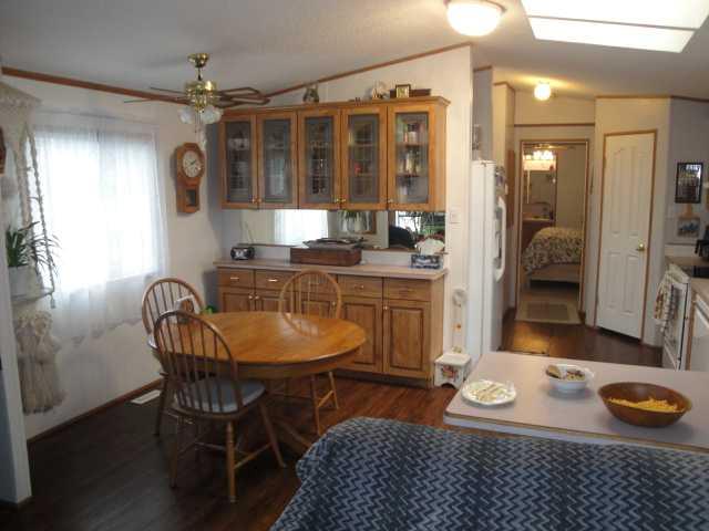 Welcome to this beautifully maintained 1216 sq ft mobile home, nestled in a vibrant 55+ community. Designed for comfort and ease, this home features three generously sized bedrooms and two full bathrooms, including a serene 4-piece ensuite. The open-concept layout with stylish laminate flooring offers a fresh, modern feel, while central air conditioning keeps things comfortable year-round. The kitchen is equipped with a newer stove and dishwasher, making meal prep and cleanup a breeze. A spacious enclosed carport with extra storage and an oversized deck provides the perfect space for enjoying sunny afternoons or hosting gatherings. Additional highlights include abundant natural light throughout and a handy storage shed. Located just minutes from shopping and essential amenities, this low-maintenance home is a wonderful opportunity to downsize without compromise. Buyer must be approved by Parkbridge Estates management.
