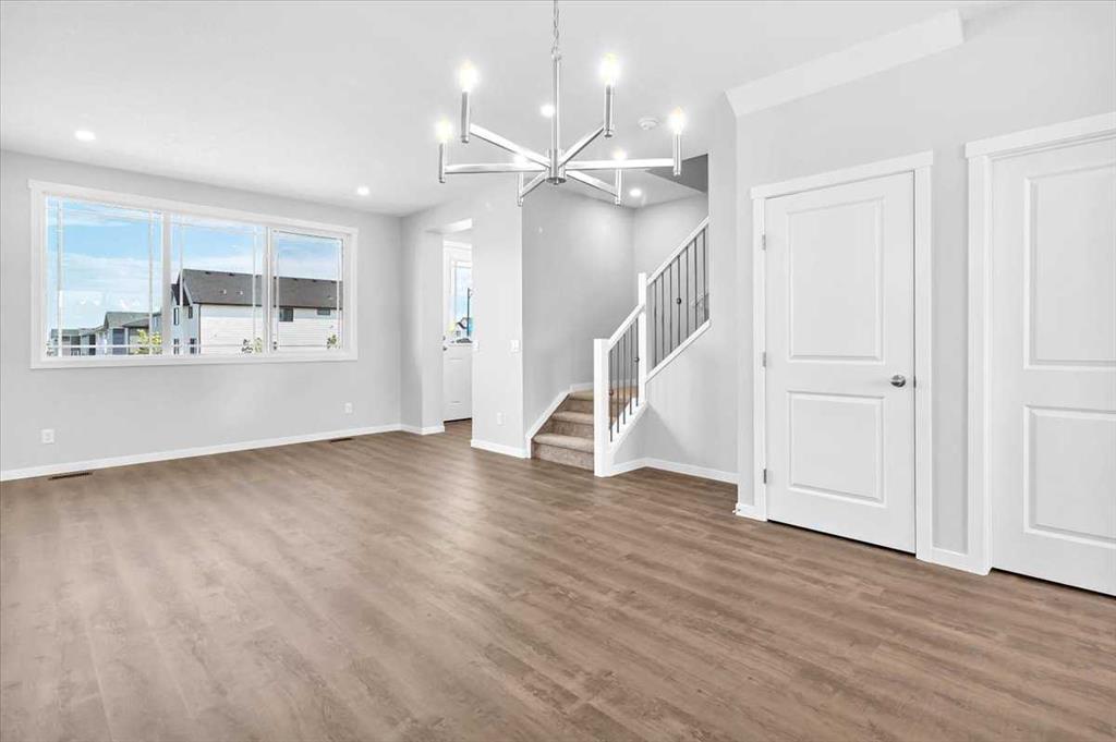 Welcome to this beautiful brand-new property in Okotoks. This house is situated in a new quite community, family-friendly neighborhood. A short walk to D’Arcy Ranch Golf Club, and shopping like Safeway, shoppers Drug Mart, Starbucks, Dollarama, Pet value and more. As soon as you step in to this property you will be greeted by nice foyer and coat closet. The main floor offers open layout, great kitchen with stainless steel appliances, Quartz countertops, good size kitchen island, upgraded cabinets with soft closing and under-cabinet lighting. The kitchen also comes with a generous size pantry with wired shelving. As you walk away to the back of the house, you will have access to a two-piece bathroom, a built-bench and a back door that leads you to a good size deck with railing, BBQ gas line to enjoy the summer days on your backyard. As you walk to the second floor you will find three bedrooms, tow and half bathrooms, stackable washer and dryer and a linen closet. Every bedroom comes with walk-in closet. This property also has a side entrance that leads to the basement. The basement has a great layout that offers excellent opportunity for development. 9’ foundation walls and two windows and all mechanicals are in one corner. This is an incredible opportunity in Okotoks. Book you showing through showing time.