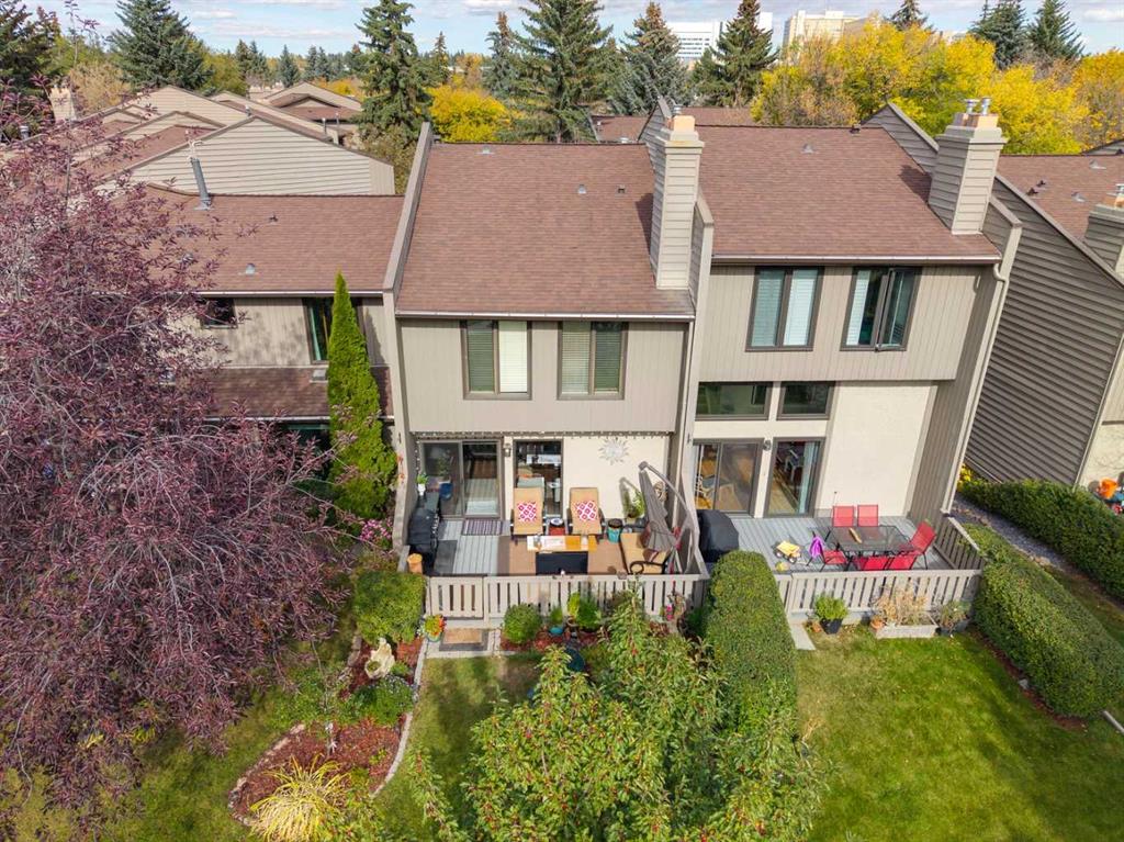 Nestled along the Bow River, this elegantly reimagined 3-bed, 2.5-bath townhome in prestigious Point McKay seamlessly blends modern comfort with natural serenity. Rare and highly sought after, these park-front units offer an unparalleled connection to the river pathway, Edworthy Park, The Riverside Sport Club, racquet courts, and beloved local cafés and restaurants. The sophisticated four-level split design features soaring ceilings, expansive park-facing windows, and a sleek gas fireplace with a custom copper mantle. The renovated kitchen impresses with granite counters, ceiling-height cabinetry, stainless steel appliances, a spacious pantry and laundry room, and heated tile floors extending through the front hall. Originally transformed in a substantial 2008 renovation, the home has since enjoyed further updates in 2022, including a full repaint, new ensuite, carpet, custom wardrobes, new dishwasher, gas range, and hot water tank (2024). Upstairs, the tranquil primary retreat offers vaulted ceilings, a cozy reading nook, walk-in closet, and peaceful river views. Two additional bedrooms and an updated bath complete the upper level. The finished lower level provides a versatile entertainment space ideal for music or movies, while the attached garage ensures year-round convenience. Outdoors, a private west-facing composite patio is surrounded by mature trees and showcases on of the best views in the NW—perfect for enjoying evening light and quiet moments. With quick access to downtown, Foothills Hospital, Market Mall, the University of Calgary, and the mountains, this rare Point McKay offering delivers the ideal balance of tranquility, sophistication, and connectivity.