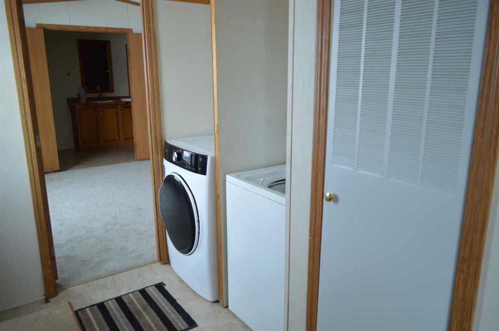 Located in the community of Lougheed, this 1,140 sq. ft. mobile home sits on a 0.79-acre lot and offers an affordable 3-bedroom, 2-bathroom layout. The interior features an open-concept living area with a kitchen island and a primary suite that includes a jetted tub. General maintenance updates to the property include new exterior skirting installed in the summer of 2023, along with new bedroom carpets and a new dryer both completed in the fall of 2025. The outdoor space is equipped with front and back decks, a fenced area for pets, and a gravel driveway with parking capacity for four vehicles. This property provides a functional living space and a large yard at an accessible price point.