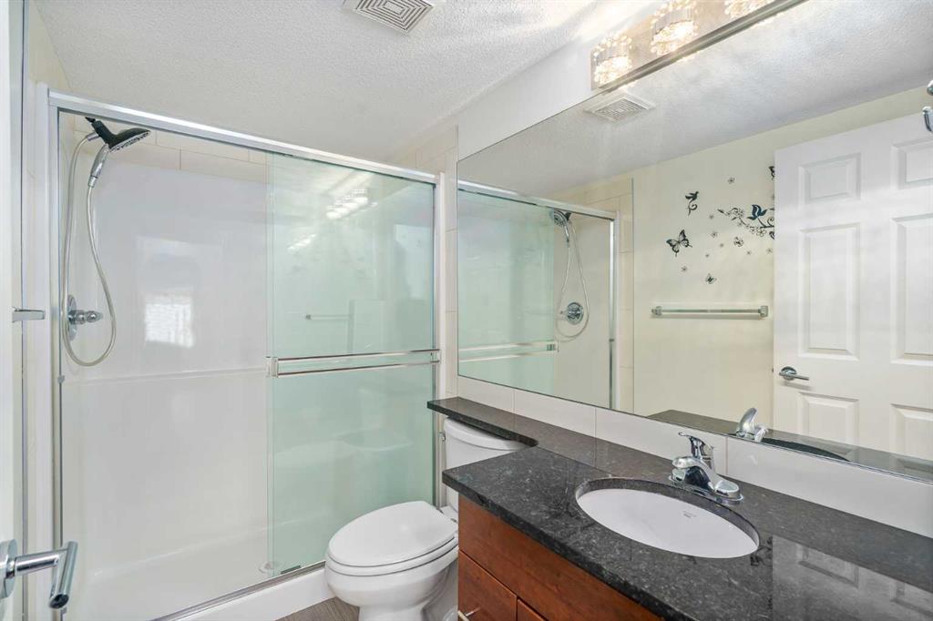 For the busy professional or perhaps someone wanting to simplify or downsize this may be the answer. A spacious 2 bedrooms, 2 bath, 913 sq. ft. CORNER-UNIT apartment complete with a fabulous view in the community of Copperfield SE needs your attention. The foyer invites you into the open-plan dining/living/kitchen area flooded with an impressive amount of natural light from south- and west-facing windows and the balcony door. This area has LUXURY VINYL PLANK FLOORING and a corner gas fireplace in the living room, and an AIR CONDITIONER for added comfort. The kitchen features sleek MODERN CABINETRY and lots of it, with stainless appliances, GRANITE COUNTERTOPS and a breakfast bar/island. The primary carpeted and large bedroom has a convenient walk-through closet leading to your own private 3-pc. ensuite. A second bedroom, also carpeted, is adjacent to the main 4-pc. bath. The railed balcony provides you with additional space where you can enjoy your morning coffee. A closeted laundry area completes the apartment. Additional amenities include a secure, TITLED UNDERGROUND PARKING STALL, A SECOND TITLED OUTSIDE PARKING STALL,, an assigned STORAGE UNIT, professional property management, to spare you the worry, which incorporates grounds maintenance, snow removal and security. SUPERB LOCATION as it is close to Stoney and Deerfoot Trails and 130th Avenue SE with its myriads of shops and restaurants (Walmart Super Centre), near Copperfield Community Centre and Rink/Park and the South Health Campus. Call and book your private showing today.