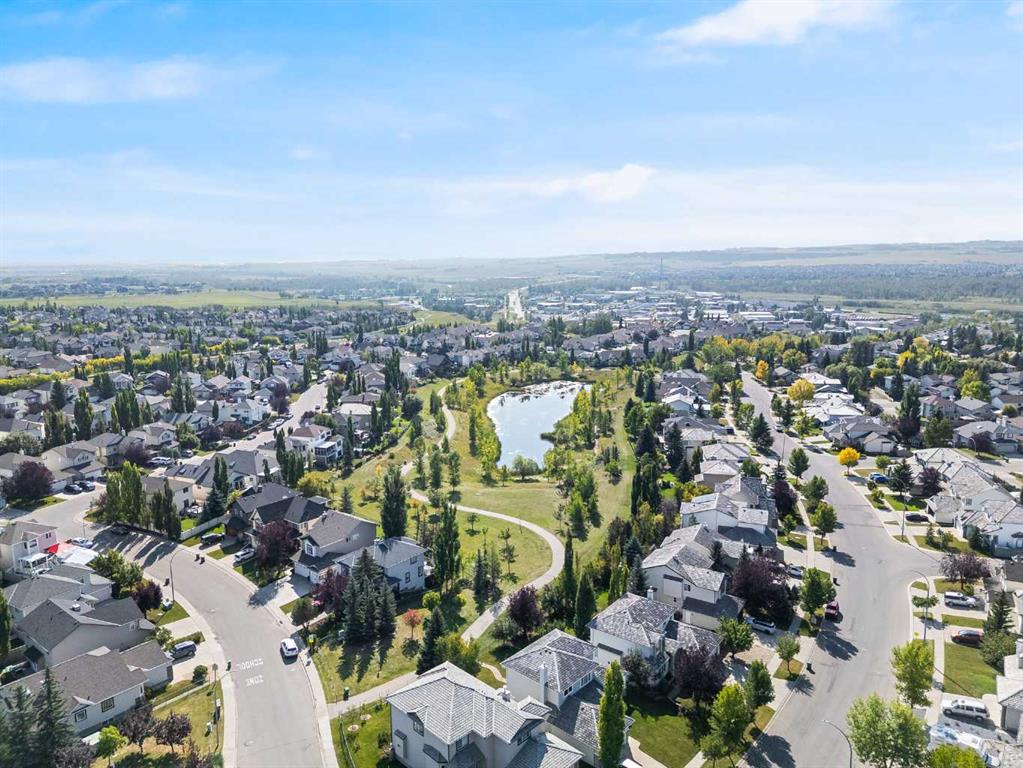 This beautifully maintained 3-bedroom home offers over 2,200 sqft of finished living space with an incredibly functional floor plan and a fully developed basement. Recent updates include FRESH PAINT THROUGHOUT, NEW CARPET, AIR CONDITIONING, and ENGINEERED HARDWOOD FLOORING, creating a clean, move-in-ready home that stands out from the crowd. Located near the entrance of the community in a QUIET POCKET WITH NO THROUGH TRAFFIC, the home BACKS ONTO GREEN SPACE & WALKING TRAILS—offering rare privacy and sought-after LAKE PRIVILEGES in a well-connected, amenity-rich area. The main level features an open-concept design with a bright and spacious kitchen offering NEWER APPLIANCES, island seating, and a large pantry. The dining and living areas flow naturally and include a GAS FIREPLACE and updated lighting. As a corner unit, the home is filled with natural light. Upstairs, you’ll find 3 bedrooms, including the primary suite with a 4-piece ensuite and room for a king-sized bed. A large bonus room offers flexibility for a media room or office. The developed basement includes a 2-piece bathroom, additional living space, and generous storage. Outdoor features include a two-tier deck with a privacy wall and enclosed storage below it. The landscaped yard is designed for low maintenance and features underground sprinklers, as well as direct access to the adjacent green space. Additional upgrades: new roof with drip edge (2017), newer hot water tank, newer washer and dryer, Hunter Douglas blinds, heated flooring in the 1/2 bath, and pre-wired for a future hot tub.