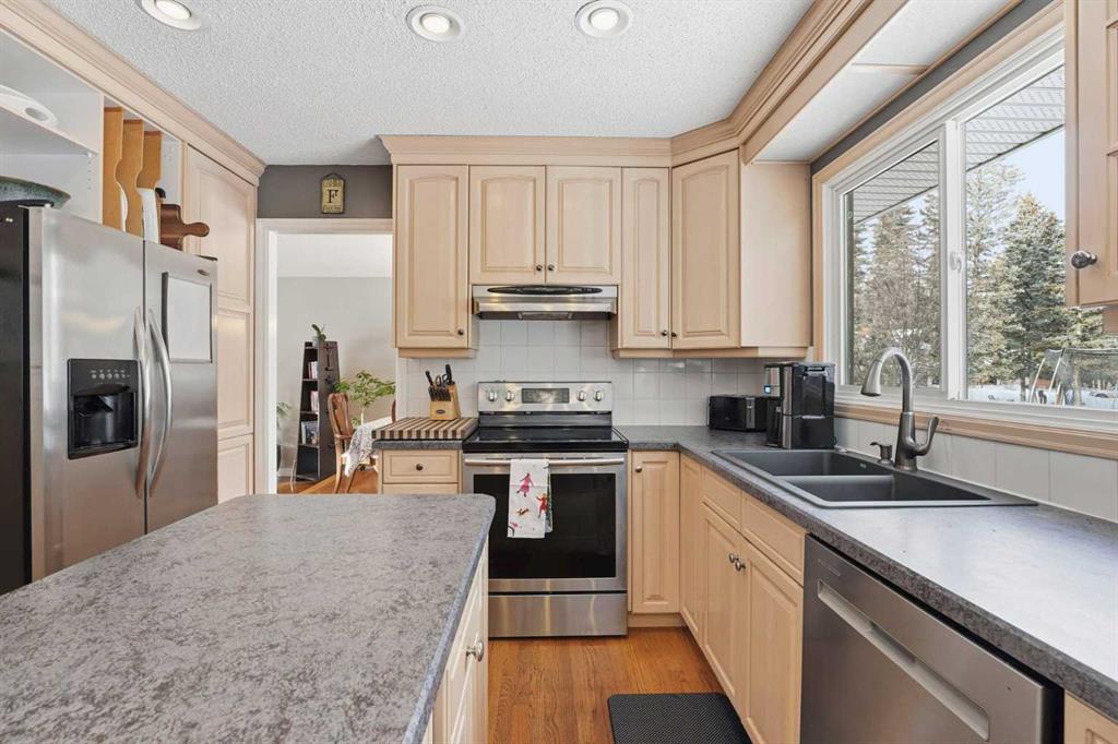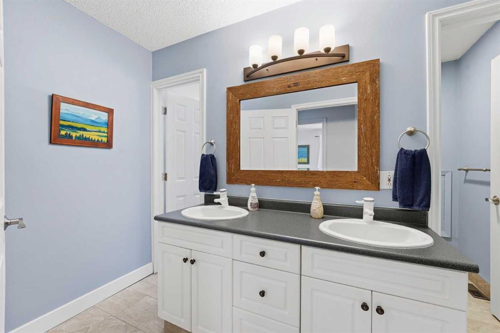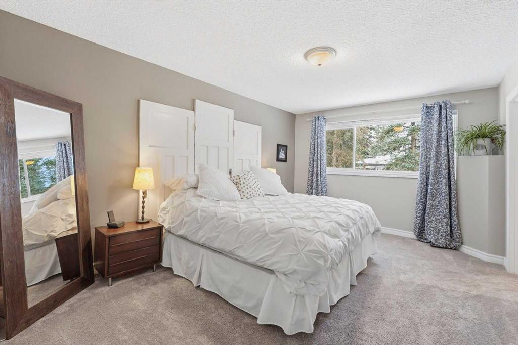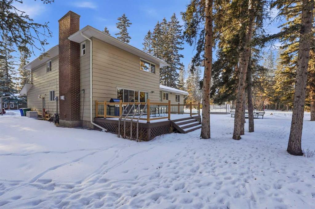 Welcome to a beautifully cared for family home nestled among the towering evergreens of Redwood Meadows where nature, space, and community come together. This inviting 2-storey residence offers over 2,500 sq ft above grade plus a fully finished basement, providing over 3,300 sq ft of developed living space on a nearly 16,150 sq ft lot. Warm and welcoming from the moment you arrive, the home features a new custom Oak front entry door and new garage door, leading inside to a thoughtfully designed layout with hardwood flooring and newer, luxuriously soft carpeting throughout. The main level offers exceptional versatility, highlighted by a sunken great room with a gas fireplace, an additional living room with a wood-burning fireplace, formal dining space, and a bright kitchen overlooking the private treed yard. Upstairs, the home features three generous bedrooms, including a unique oversized secondary bedroom (previously two rooms combined into one), along with a spacious primary suite complete with dual-vanity ensuite, jetted tub, and very spacious walk in closet. The fully developed basement provides an additional large bedroom with ensuite, plus an expansive storage and utility room supported by two furnaces and two hot water tanks for year round comfort. The sellers also confirm the property has never experienced flooding or water intrusion during their ownership, offering added peace of mind. Outdoors, enjoy the serenity of mature trees, a large composite rear deck and greenhouse, all within steps of the Redwood Meadows Golf Course, community pathways, and the peaceful Elbow River nearby. The yard is also equipped with an invisible pet fencing system for added convenience. This is an incredible opportunity to experience community oriented living surrounded by natural beauty, just minutes from Bragg Creek and an easy commute to Calgary. Book your private showing with your favourite Realtor® today!