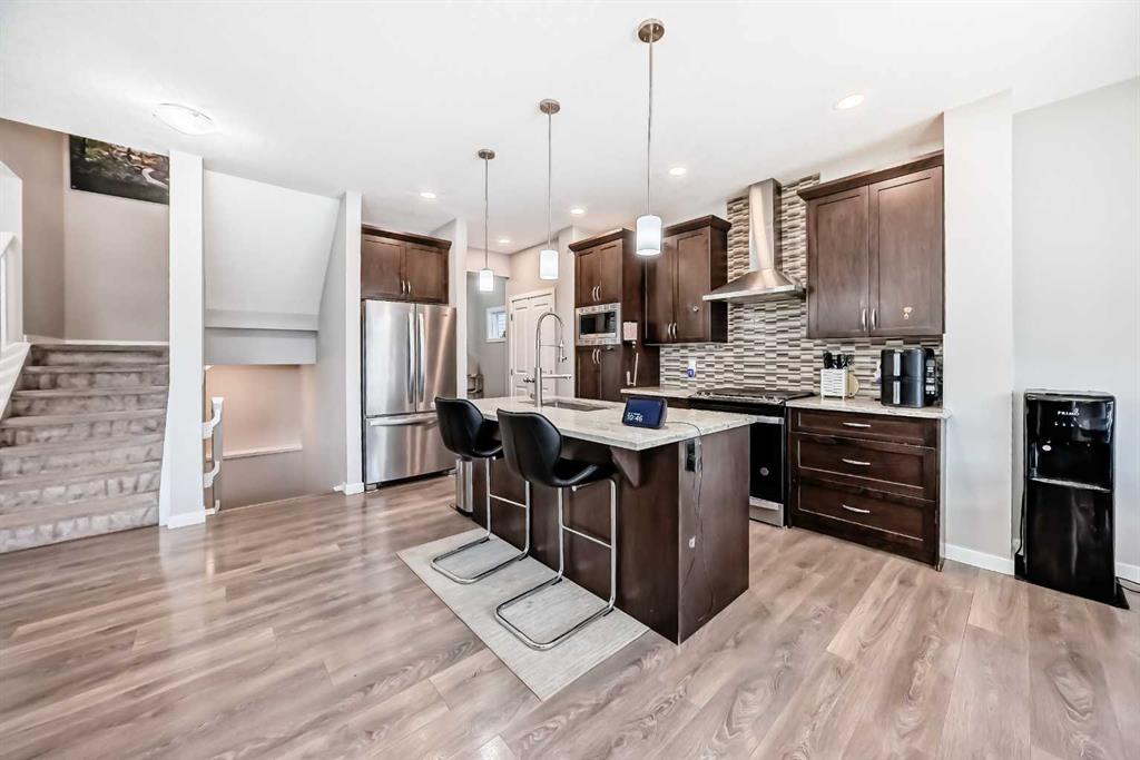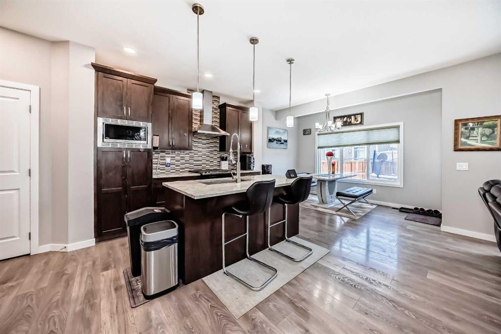 Welcome to this beautifully designed 2 story home with AC is located on a large corner lot in Midtown, Airdrie, offering spacious living and a functional layout perfect for growing families. The main level features an inviting open-concept design, complemented by stylish LVP flooring throughout. The kitchen is equipped with stainless steel appliances, ample cabinetry, and flows seamlessly into the dining area ideal for entertaining. Relax in the bright living room centered around a cozy gas fireplace, and enjoy the convenience of a 2-piece powder room and a large mudroom with plenty of storage. Completing the main level is a double attached garage for added comfort and practicality. Downstairs, the fully finished basement offers incredible versatility with a spacious bonus room, bedroom, an additional office/den, and a modern 3-piece bathroom perfect for guests, a home gym, or multi-generational living. Upstairs, you’ll find two generously sized bedrooms, a convenient laundry room, and an additional bonus room ideal for a play area or second living space. The primary suite is a true retreat featuring a walk-in closet and a luxurious 5-piece ensuite bathroom. Located in the family friendly community of Midtown, close to parks, pathways, schools, and shopping this home offers exceptional value, comfort, and space in one of Airdrie’s most desirable neighbourhoods.