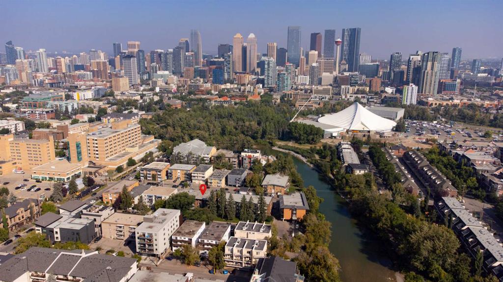 LOCATION, LOCATION! Discover exceptional inner-city living in this 700sqft spacious, fully renovated one-bedroom condominium, ideally situated just steps from the Elbow River and Calgary’s extensive pathway system. Located only two blocks from vibrant 4th Street and minutes to 17th Avenue, you’ll enjoy immediate access to trendy shops, cafés, and restaurants—while still being tucked away enough to savor quiet evenings at home. The thoughtfully designed floor plan and upscale finishes impress from the moment you enter. A generous foyer welcomes you with beautiful hardwood flooring, leading into bright, open-concept living spaces. Oversized south- and east-facing windows flood the home with natural light, while the enclosed, ?c?oncrete patio offers additional space for outdoor seating and BBQs—perfect for entertaining or relaxing year-round?. The fully renovated kitchen features stylish designer finishes, stainless steel appliances, quartz countertops, and a pantry—yes, there’s room for those Costco runs! The king-sized bedroom easily accommodates larger furnishings and includes expanded closet space and a striking designer chandelier. Completing the home is a modern, renovated four-piece bathroom, tailored for today’s lifestyle?. Additional conveniences include in-suite laundry located in the private storage room, a shared laundry room conveniently adjacent to the unit, and assigned parking, with ample street parking available for guests.? Set in a pet-friendly building, this home is perfect for active, outdoor enthusiasts who value walkability, river access, and urban convenience. Immerse yourself in everything Mission has to offer—this is inner-city living at its best.