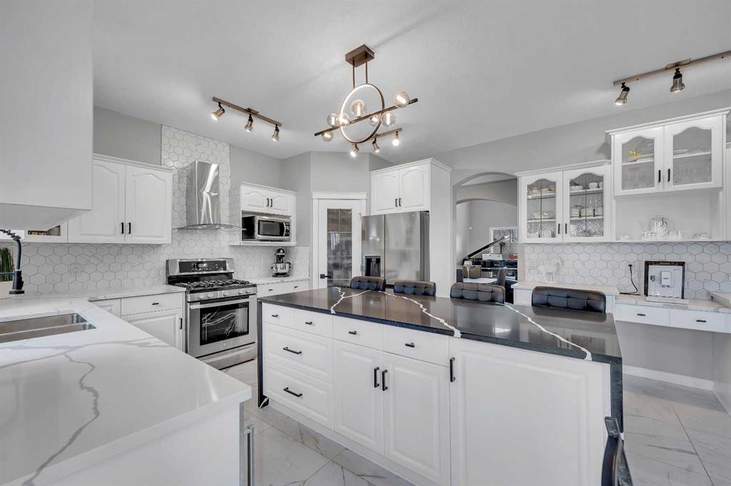Welcome to this beautifully renovated home backing onto the Golf Course! Step inside this stunning 7-bedroom, 5-bathroom residence perfectly positioned along the 7th hole of the Ridge Course at Country Hills Golf Course, offering sweeping views and exceptional living space for the entire family. From the moment you enter, you’re welcomed by a spacious foyer featuring beautiful ceramic tile and gleaming engineered hardwood flooring that flows throughout the main level. The heart of the home is the chef’s dream kitchen, showcasing sleek quartz countertops, high-end cabinetry, and a seamless flow into the family room with a cozy gas fireplace. Step out onto the balcony to take in the tranquil fairway backdrop, where you can sip your morning coffee, soak in the sunshine, and enjoy the beautiful views that can be seen from every level of the home. The main floor also features a bright dining area, a separate living room, a private office ideal for working from home, main floor laundry, and a convenient four-piece bathroom. Upstairs, you’ll find four generous bedrooms, including a primary bedroom with a walk-in closet and a luxurious four-piece ensuite with a separate shower and jetted tub. The upper level also features brand-new carpet and a bright bonus room overlooking the main floor. The fully finished walkout basement offers an illegal suite with three additional bedrooms, two bathrooms, a recreation room, separate laundry, and a utility room, providing excellent potential for extended family or rental income. Step outside and enjoy a beautiful stamped concrete patio complete with a welcoming pergola and comfortable seating area, perfect for outdoor gatherings. The raised garden beds add a touch of charm and are ideal for growing your own plants and flowers throughout spring and summer. Additional highlights include air conditioning, multiple new windows, two furnaces, two hot water tanks, and a new roof (2025), ensuring comfort, efficiency, and peace of mind. Ideally located close to schools, scenic biking and walking paths, shopping, dining, and convenient transit options, this home truly has it all. Experience the best of Northwest Calgary living with golf course tranquility, sun-filled mornings, and breathtaking views from every level, right in your backyard!