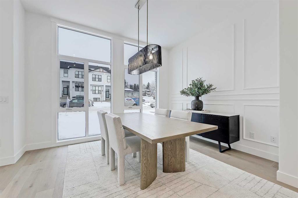 Welcome to a home where contemporary elegance meets everyday comfort in the heart of MONTGOMERY. Situated on a quiet street in this sought-after inner-city community, this stunning new build is designed with both style and function in mind, offering a thoughtfully crafted layout including a WALKOUT BASEMENT w/ COVERED PATIO SPACE, high-end finishes, and incredible natural light throughout. From the moment you step inside, the open-concept main floor makes an immediate impression. You’re greeted by a lovely glass wall in the front foyer, looking into the main floor home office with a built-in desk. The heart of the home is the designer kitchen—a perfect blend of modern aesthetics and practicality. A waterfall island anchors the space, complemented by custom cabinetry, quartz countertops, and top-tier appliances, including a gas cooktop and French door fridge. A built-in pantry offers storage space, while a built-in coffee counter adds more cabinetry and room for small appliances. The front dining area is spacious enough for large gatherings, while the living room is designed for relaxation and entertaining, featuring a sleek gas fireplace and oversized patio doors that open to the upper deck and SOUTHWEST-FACING BACKYARD. A stylish built-in bench and hooks in the mudroom provide everyday convenience, and a chic powder room completes the main level. Upstairs, the primary suite is stylishly finished with a tray ceiling and a spacious walk-in closet with custom built-ins. The generous ensuite is a masterpiece, featuring a freestanding soaker tub, a walk-in shower with a bench, dual vanities, and elegant finishes. Two additional bedrooms each have built-in closets, while a beautifully finished main bath adds even more functionality along with the full laundry room with tile floor and built-in cabinetry. The legal 2-BED LOWER SUITE is a fully independent living space featuring a modern kitchen with full-height cabinetry, quartz countertops, and a stainless steel appliance package. The thoughtful layout includes a bright living room, two spacious bedrooms with built-in closets, a stylish 4-piece bath, dedicated laundry, and a private backyard entrance. The highlight of this space, though, is the full WALKOUT PATIO – the covered space is perfect for enjoying the outdoors year-round, with the additional convenience of a fully private entrance! Located in Montgomery, this home offers an unbeatable lifestyle. Enjoy quick access to the Bow River pathways, Shouldice Park, and Winsport, perfect for outdoor enthusiasts. The community is home to fantastic local restaurants, trendy coffee shops, and boutique shopping while offering easy access to Market Mall, Foothills Hospital, the University of Calgary, and major roadways for a seamless commute. Don’t miss your chance to own this beautifully designed home in one of Calgary’s most desirable neighbourhoods! *Photos from show suite finishes may vary*