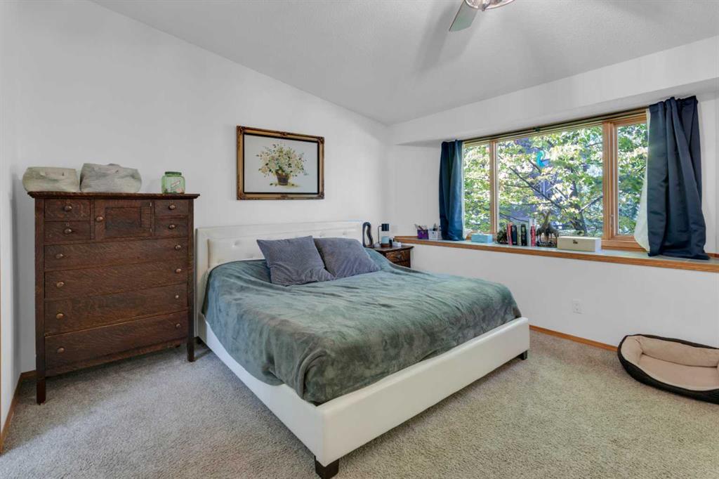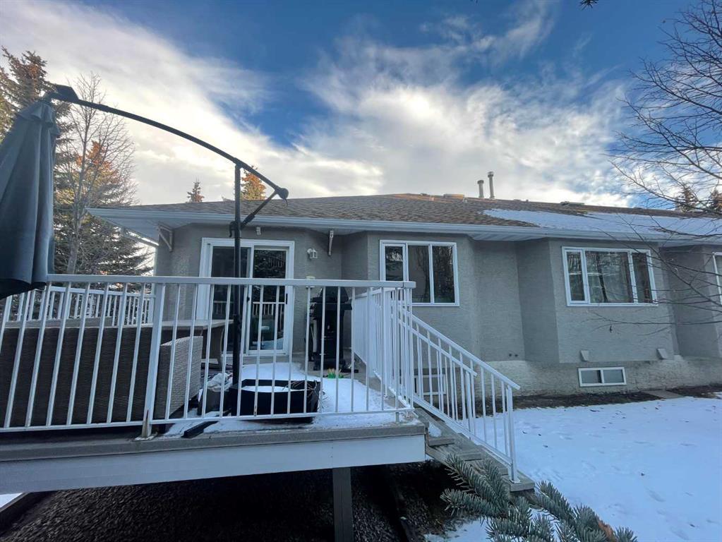 END UNIT BUNGALOW STYLE VILLA with double attached garage located in desirable Christie Gardens complex! This property is in fairly original condition needing upgrading and is a GREAT OPPORTUNITY for someone to do a partial or full scale renovation. With a total of over 2600 ft2 of living space, this property has lots of space to work with! It offers a PRIVATE AND QUIET LOCATION at the end of the cul de sac with mature trees surrounding it. OPEN MAIN FLOOR PLAN with VAULTED CEILINGS and large centre skylight which floods the living area with NATURAL LIGHT! Main floor has 2 bedrooms plus an office/den with built in desk and shelves. Spacious primary bedroom features a 5 piece ensuite bath with air jetted tub and separate shower. Spacious white kitchen with breakfast nook opens onto SUNNY, SW exposed back deck surrounded by trees for PRIVACY. Fully developed basement includes large rec room with built in shelving, 3rd bedroom (note: window is not egress size), full bath, laundry and plenty of storage. One of the storage rooms could be used as a wine cellar with built in sink and shelves, plus a cold room attached. GREAT LOCATION within walking distance of the Sirocco LRT station, West Market Square, Sunterra Market, and featuring many walking/biking trails just minutes away. Great access to schools, shopping, downtown and west to Kananaskis, Banff and the Rocky mountains. This home offers an easy "lock and leave" lifestyle at an unbeatable value! It's been a few years since any unit has sold for less than $600K in this complex!