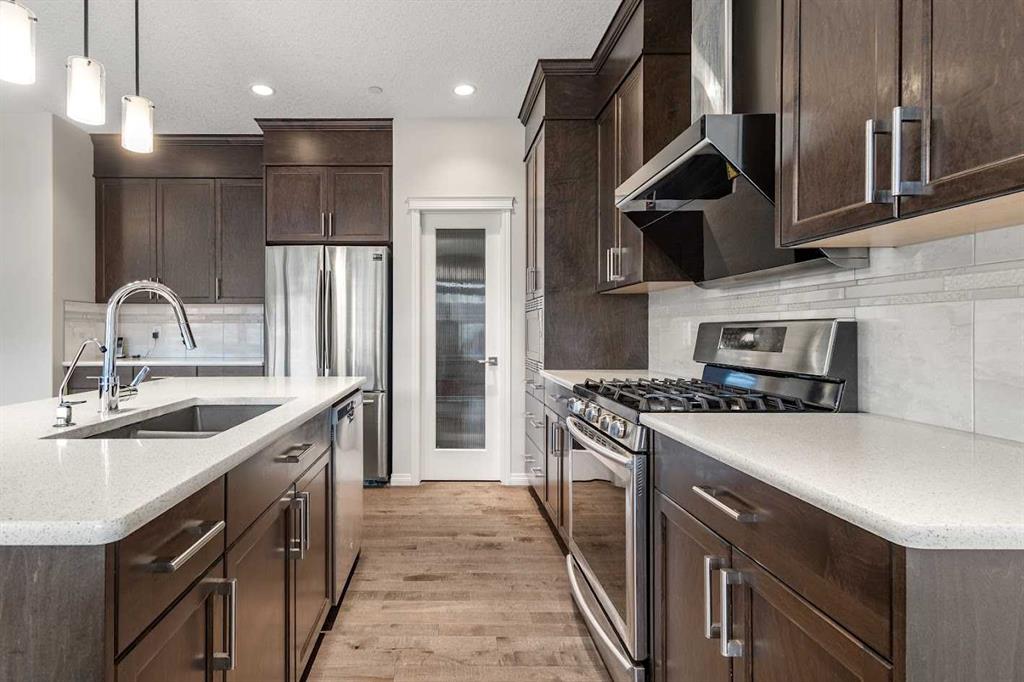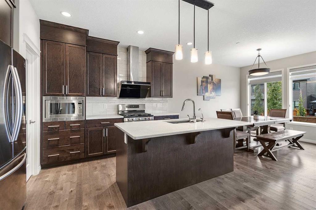 Open House January 10th @2-4 PM!This meticulously designed and extensively upgraded family residence in the desirable Livingston community presents an exceptional opportunity. Situated on a 36’1” x 120’ conventional lot with a northwest-facing backyard on a quiet street, this Morrison-built home is conveniently located just blocks from the community centre and pond, and within steps of a playground and park. The property offers outstanding functionality, comfort, and accessibility, featuring 9’ ceilings on both the basement and main floor levels plus the upper level bonus room. With over 3,270 square feet of developed living space across three levels, the home includes 7 bedrooms (4 upstairs, 1 on the main level, and 2 in the basement) and 4 full bathrooms, accommodating a variety of family needs. Upon entry, residents and guests are greeted by a spacious foyer accented by additional windows for enhanced natural light. The main floor also provides a flexible bedroom/office space adjacent to a full bathroom—an ideal configuration for multi-generational living or a dedicated workspace. The gourmet kitchen is equipped with stainless steel appliances, a gas stove, quartz countertops, a large island, full-height cabinetry, and a Brisas chimney hood-fan paired with a full-height tile backsplash. The main floor is further complemented by a generous living area and breakfast nook, both featuring expansive windows. The upper level comprises four well-appointed bedrooms, including a primary suite with a luxurious 5-piece ensuite, a spacious walk-in closet, and sound-insulated walls. A versatile bonus room and laundry room add further convenience. The professionally developed basement features a side entrance and offers a sizable recreation area, two additional bedrooms with egress windows, a 3-piece bathroom, dedicated laundry space, and kitchen rough-in. Notable upgrades include a 3-zone furnace for customized heating efficiency, a 75-gallon hot water tank, and over $110,000 in enhancements encompassing the gourmet kitchen package, main floor bedroom and bath, master suite upgrade, raised basement height, and comprehensive flooring improvements. New roofing and siding were installed following hail damage repairs in 2025. This impressive property seamlessly combines thoughtful design, quality upgrades, and exceptional location—suitable for discerning buyers seeking comfort and versatility.