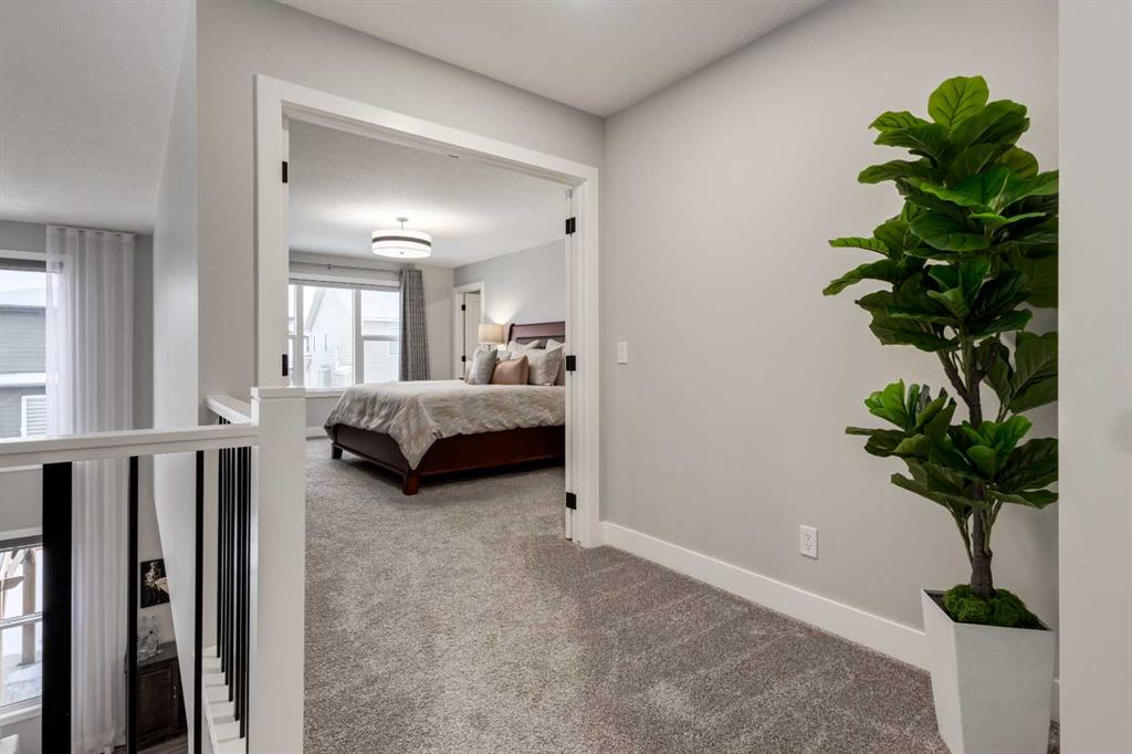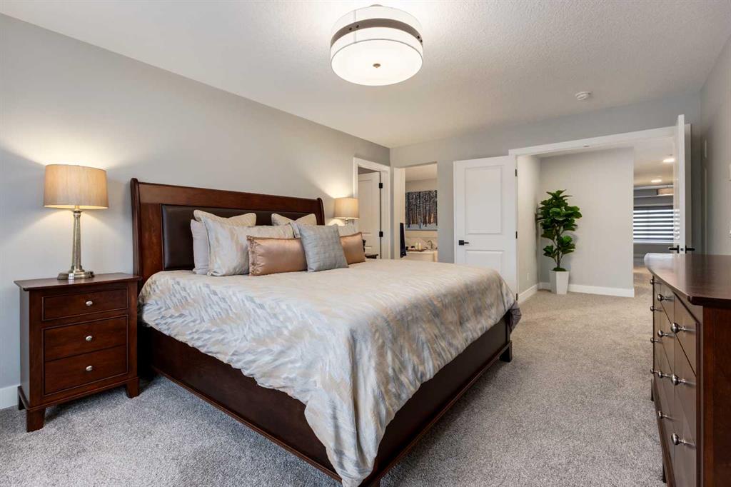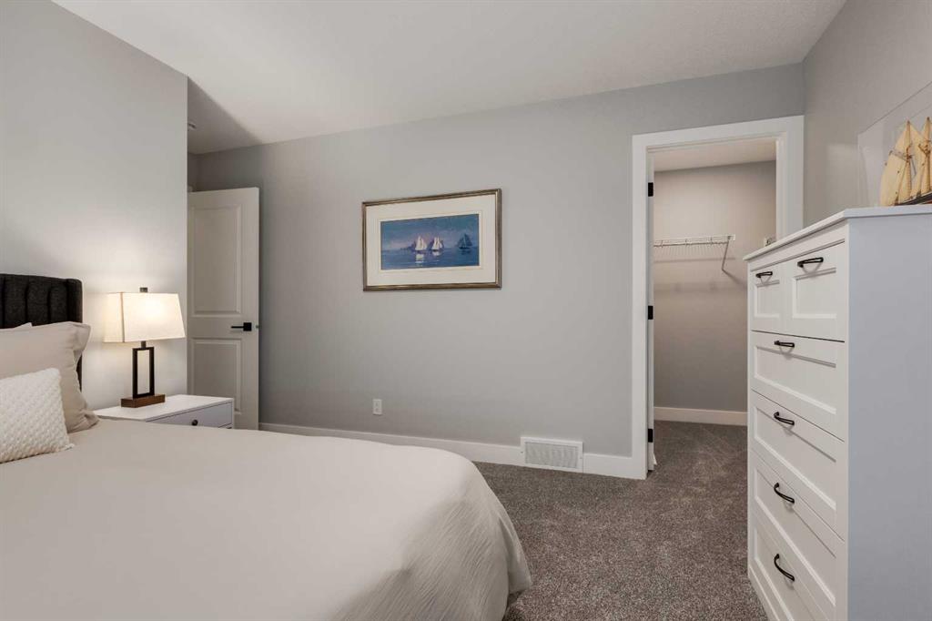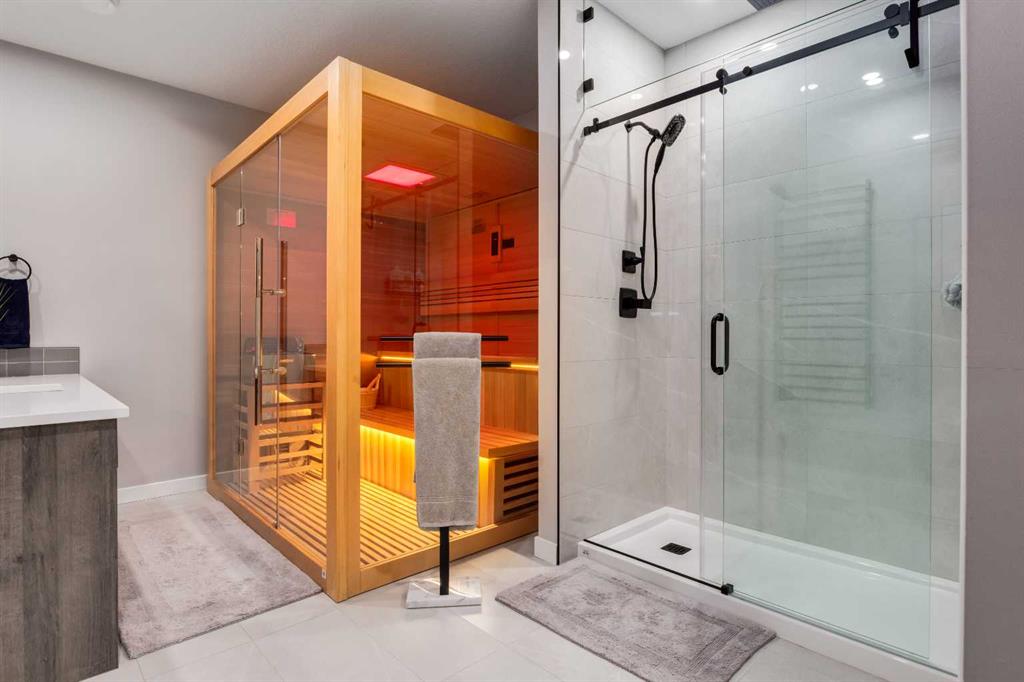From the moment you arrive at this quiet cul-de-sac in South Shores, there is a sense of calm, privacy, and understated luxury. This remarkable two-storey residence offers over 4,200 Square Feet of professionally finished living space, where every detail has been carefully considered and impeccably maintained. Set within an upscale community in Chestermere, the home enjoys quick access to Calgary via Glenmore Trail, while nearby walking paths along the canal invite daily moments of connection to nature. The west-facing backyard is a true retreat, fully fenced and thoughtfully designed for effortless enjoyment. Two gazebos, a hot tub, and low-maintenance landscaping create an outdoor environment that feels both private and inviting, perfect for quiet evenings or memorable gatherings as the sun sets. Inside, the home is pristine and beautifully appointed. The main level is warm and welcoming, designed for both everyday living and entertaining. A spacious kitchen anchors the space, showcasing a stainless steel appliance package with gas range, expansive two-tone cabinetry, a large centre island with seating, and huge walk-in pantry. The open living room is filled with natural light and anchored by a gas fireplace, while the dining area flows seamlessly onto the deck and backyard beyond. A main floor office provides a refined work-from-home space, complemented by a bedroom and three-piece bath ideal for guests or multigenerational living. Direct access from the triple attached garage leads into a functional mudroom, enhancing daily convenience. Upstairs, the home continues to impress with a generous bonus room, a dedicated laundry room, and three well-proportioned bedrooms, each with its own walk-in closet. The primary suite is a private sanctuary, featuring a luxurious five-piece ensuite and an expansive walk-in dressing room. A second five-piece bathroom serves the additional bedrooms with ease. The fully finished lower level elevates the lifestyle experience even further. A private gym with mirrored walls, rubber flooring, pot lighting, and included equipment offers a professional fitness experience at home. Movie nights become an event in the theatre room, complete with projector, screen, sound system, and plush leather recliners. A spa-inspired three-piece bath with electric sauna and double-wide shower, along with ample storage and utility space, completes this exceptional level. Central air conditioning, automated blinds, and flawless condition throughout reflect the care and quality invested in this home. Sophisticated, comfortable, and truly move-in ready, this is a residence that delivers an elevated way of living and will impress even the most discerning buyer.
