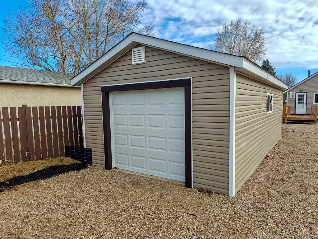 Welcome to this inviting 2-bedroom bungalow, perfectly blending comfort, updates, and convenience. Situated on a fully fenced lot, this home boasts an impressive 14’x26’ single detached garage—ideal for storage, hobbies, or extra parking space. Inside, the main floor offers a spacious and light-filled living room, two well-appointed bedrooms, and an eat-in kitchen designed for functionality and comfort. A full 4-piece bathroom includes stackable laundry and ample counter space, providing a practical area for folding and organizing. The basement features a large family space, a 2-piece bathroom, and flexible space that could be converted into an additional bedroom to suit your needs. In addition to thoughtful updates completed to the home prior to 2021 (newer siding, shingles, windows, flooring, countertops, cupboards, electrical, and sump system), the most recent updates include new light fixtures throughout, new paint throughout, new flooring throughout, new hot water tank, new furnace, new vinyl siding on garage to match house - just to name a few! All these updates/renovations will ensure peace of mind and provide modern appeal. Located just minutes from Main Street and close to schools and a splash park, this centrally located gem offers the perfect blend of neighbourhood charm and everyday convenience. Don't miss your chance to own this move-in-ready home in a prime location!