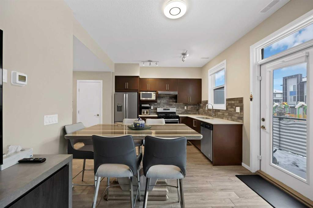 ***MASSIVE PRICE REDUCTION OF $45,000 FOR A QUICK SALE*** 3 BEDS | 3.5 BATHS | MULTI LEVEL TOWNHOME | CORNER END-UNIT | SEPARATE ENTRANCE | Welcome to this beautiful CORNER MULTI LEVEL END-UNIT TOWNHOME nestled in the highly sought-after community of Redstone, offers unparalleled convenience and comfort. This corner end unit is perfectly positioned to enjoy full-day sunshine as it’s directly backing onto a large park. This spacious 3-level home offers a thoughtful layout with 3 bedrooms, 3.5 bathrooms and a convenient parking stall out-front. The entry level features a versatile bedroom that can serve as a guest room, office or flex space with and attached full bathroom. The open-concept second level is designed for both everyday living and entertaining, showcasing a bright and modern kitchen with ample cabinetry, quartz countertops, stainless steel appliances, a large living room and a dining area with a leading door to the balcony, where you can enjoy summer evening barbecues and soak in the vibrant atmosphere. On the second level, you'll find two luxurious primary bedrooms boasting a pristine en-suite in each and a spacious walk-in closet ensuring comfort and privacy for all occupants. Laundry is thoughtfully located on the upper floor for added convenience. Large windows throughout the home create a bright and inviting atmosphere, while the location offers easy access to parks, walking paths and family-friendly green spaces just steps from your front door. With its unbeatable location and immaculate condition, this property is a rare find in today's market. Don't miss out on the opportunity to make it yours – schedule a showing with your favorite realtor today before it's gone!