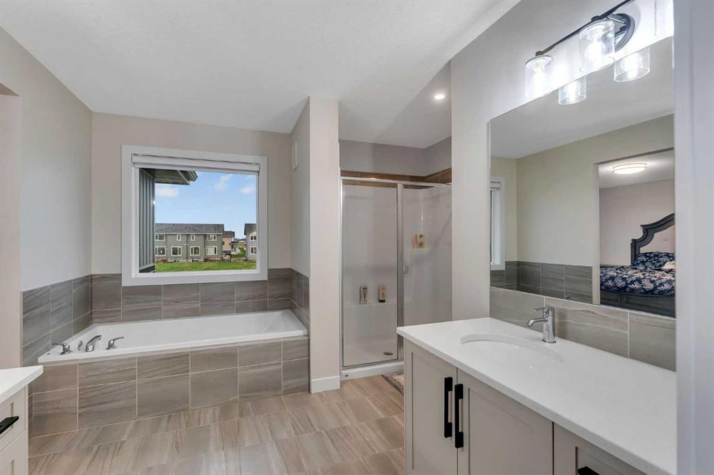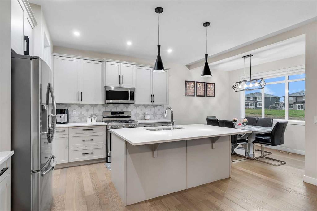 TRIPLE CAR GARAGE | GREEN SPACE | LAKESIDE LIVING | HARDWOOD FLOORS | HARDIE BOARD EXTERIOR | Welcome to your dream home in the sought-after community of Waterford, Chestermere! This beautifully upgraded home offers the perfect blend of functionality, style, and comfort — complete with a rare triple car garage featuring soaring high ceilings, ideal for car lovers, extra storage, or even a workshop. Backed by lush greenspace and flooded with natural light, this home invites you in through a spacious foyer adorned with elegant wrought iron railings and a custom built-in bench — the perfect spot to welcome guests or settle in after a long day. The heart of the home features a cozy living room with tiled accents and a striking fireplace, ideal for family movie nights or quiet evenings in. The chef-inspired kitchen boasts an abundance of cabinetry, a generous pantry, stainless steel appliances, and a stunning quartz island that invites conversations over coffee or weekend baking with loved ones. Just off the kitchen is the bright and airy dining room, framed by a large window that overlooks the sun-soaked backyard — perfect for summer BBQs, kids playing, or unwinding with a glass of wine. This floor is further completed by a 2 piece bathroom for added convenience. Conveniently located off the kitchen, the mudroom keeps life organized with direct access to the spacious triple garage. Upstairs, discover a thoughtfully designed layout featuring three bedrooms, including a massive primary retreat with a luxurious 5-piece ensuite and a generous walk-in closet. A 4-piece bathroom and dedicated laundry room add everyday ease. The open-to-below concept adds a dramatic, airy feel throughout the home, letting light flow effortlessly from floor to floor. The unfinished basement offers endless potential — whether you envision a home theatre, gym, or extra bedrooms, the space is yours to create. Located just minutes from the lake, scenic walking paths, playgrounds, and nearby shopping plazas, and with quick access to 17 Ave and Stoney Trail, this home is perfectly positioned for both tranquility and convenience. Don't miss your chance to make this stunning property your forever home. Book your private showing today!