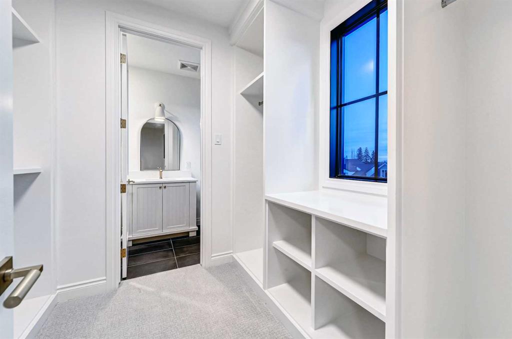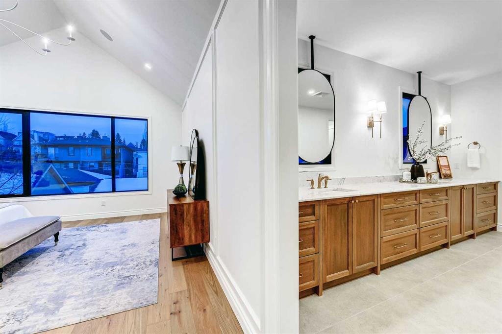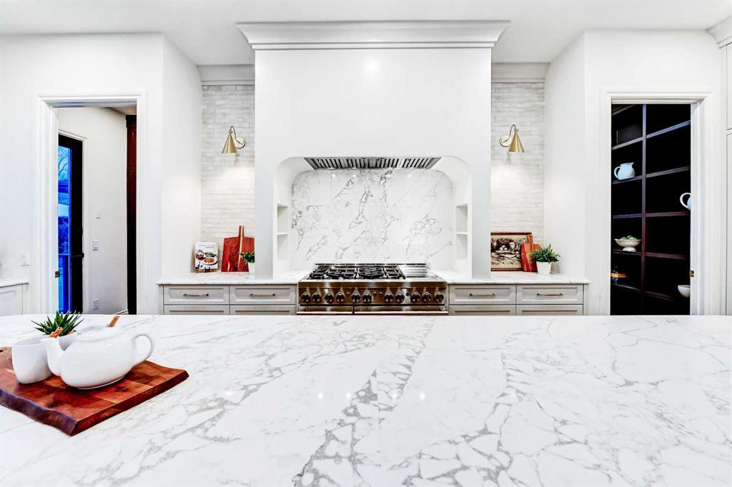 Set on a quiet street in the heart of Marda Loop, The Bardot is an exceptional custom residence that blends refined French-Country character with contemporary luxury. Thoughtfully designed and built by Cedar Rock Homes with interiors curated by Aly Velji Designs, this home offers four bedrooms, 4.5 bathrooms, and a rare triple-car garage. The striking exterior showcases a sophisticated mix of stone, stucco, and Hardie panel, accented by an aluminum cedar soffit entry, statement front door, and custom aluminum Lux windows with black interior cladding. The fully landscaped and fenced backyard is designed for low-maintenance enjoyment and features a generous composite patio with aluminum and glass railing, creating a private outdoor retreat. Inside, wide plank white oak engineered hardwood flooring flows throughout all levels, complemented by solid core doors and custom site-built cabinetry with wood dovetail drawers. Soaring 10-foot ceilings on the main floor and 9-foot ceilings on both the upper and lower levels enhance the home’s bright and open feel. The main living area is anchored by a cozy gas fireplace and transitions seamlessly into the chef-inspired kitchen featuring a premium JennAir appliance package, including a 48-inch gas range, 48-inch panelled refrigerator, panelled dishwasher, and a microwave drawer integrated into the island with additional storage on both sides. A curved quartz slab island, custom cabinetry, and a bespoke hood fan create a stunning focal point, while the adjacent butler’s pantry adds extended storage and elevated lighting. The dining space is highlighted by a custom oak sideboard, and a spacious mudroom with tailored millwork ensures everyday functionality. A private front office is thoughtfully designed with French doors, floor plugs, and custom glass-front cabinetry. Upstairs, three generously sized bedrooms each feature walk-in closets and private ensuites with heated tile flooring. The primary retreat is highlighted by vaulted ceilings and a spa-inspired ensuite complete with an oversized steam shower with dual rain heads, a freestanding tub, solid slab stone backsplash, and custom hanging mirrors. A beautifully finished upper-level laundry room with sink, hanging rod, and custom cabinetry completes the floor. The fully finished basement expands the living space with a gym, TV and games area, wet bar with beverage fridge, full bathroom, and ample storage. Mechanically, the home is equipped with dual-zone high-efficiency furnaces with humidifiers, along with rough-ins for in-floor basement heating, air conditioning, central vacuum, speakers, security system, and exterior cameras. Every detail of The Bardot reflects intentional design, superior craftsmanship, and timeless appeal, all just steps from Marda Loop’s vibrant shops, restaurants, parks, schools, and only minutes from downtown Calgary