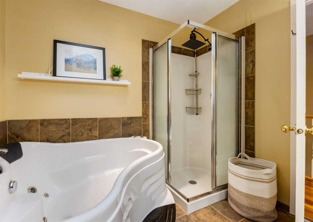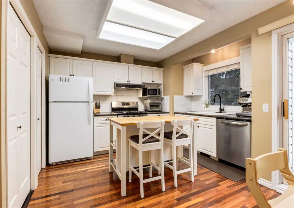 Discover refined urban living nestled in the heart of Tuxedo Park—one of Calgary's most convenient and charming inner-city neighbourhoods. Enjoy exceptional walkability to trendy shops, diverse restaurants, lush parks, golf courses, and top-rated schools, with seamless access to Highway 1, Deerfoot Trail, downtown Calgary, and the airport. This bright move-in-ready home showcases expansive windows flooding the space with natural light, tasteful neutral colors, and central air conditioning for year-round comfort. Step inside to an inviting main level featuring a spacious living room anchored by a cozy corner gas fireplace—perfect for relaxing evenings. Flow seamlessly into the dining area and white kitchen, complete with a generous island for casual meals, ample pantry storage, and convenient main-floor laundry. A stylish powder room and direct access to your private balcony complete this entertaining-friendly floor. Ascend to the upper level, where a luxurious spa-like bathroom awaits with dual sinks, a skylight bathing the space in sunlight, an oversized shower, and a jetted soaking tub for ultimate relaxation. Two well-proportioned bedrooms include the serene primary suite with soaring vaulted ceilings and its own exclusive balcony—an ideal retreat. The fully developed lower level offers a versatile third bedroom/den or media room with a full ensuite bath, plus direct entry to the attached single garage for added convenience. Multiple outdoor havens, including upper and lower balconies plus a ground-level deck, make al fresco dining and summer gatherings effortless. This Tuxedo Park treasure perfectly blends sophisticated style, practical design, and an unbeatable location—urban vibrancy meets tranquil escape. Don't miss this must-see home; check out the video in the media link and schedule your private viewing today!