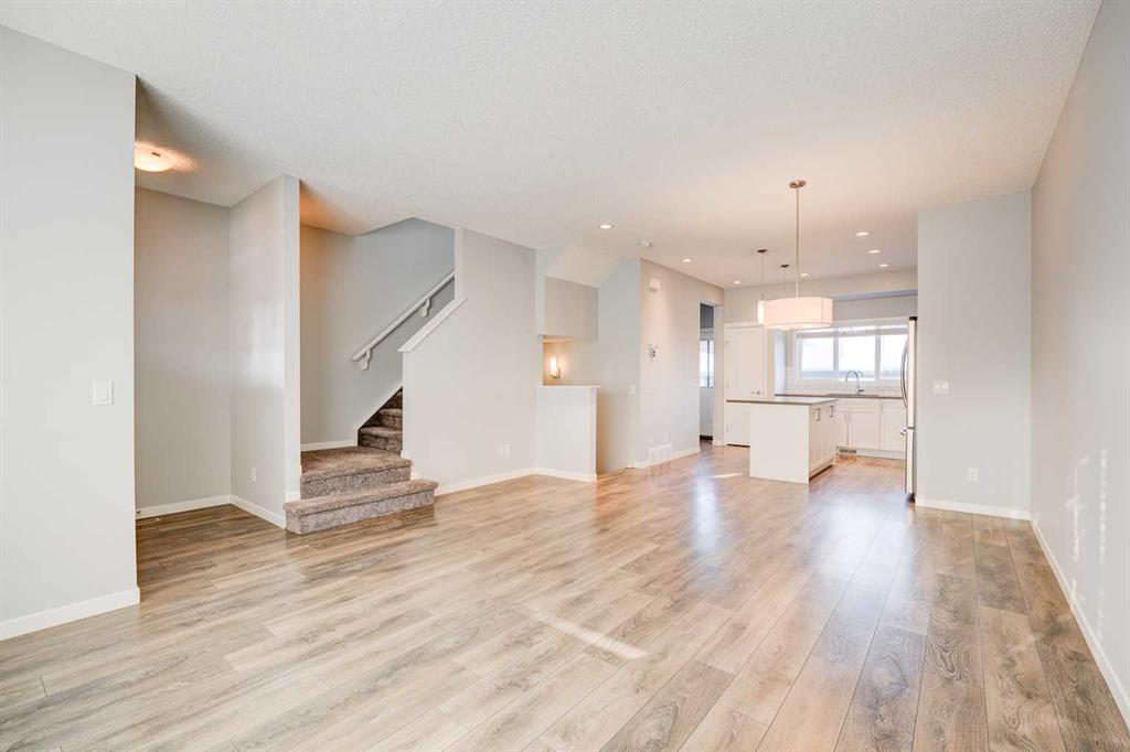 Welcome to this beautifully maintained duplex in the heart of Mahogany, Calgary’s premier lake community. Enjoy year-round lake living, with summer beach access, tennis courts, and top-tier recreational facilities just a 5-minute walk from your front door; perfect for active families and outdoor enthusiasts. Offering over 1,200 square feet of bright, open-concept above grade living space, this home features a functional layout ideal for everyday life and entertaining. The kitchen is finished with quartz countertops, stainless steel appliances, and flows seamlessly into the main living area, while central air conditioning keeps you comfortable year-round. The undeveloped basement boasts high ceilings, providing a fantastic opportunity to create additional living space exactly how you want; whether it’s a home gym, rec room, home theatre or a home office. Outside, enjoy a private, fully fenced backyard—great for kids, pets, and summer BBQs—plus the convenience of a detached double garage that is wired for and ready to accommodate electric vehicle charging. Located in a family-friendly neighbourhood close to schools, parks, pathways, and all the amenities Mahogany is known for, this home offers exceptional value in one of Calgary’s most sought-after communities. Book your showing today!