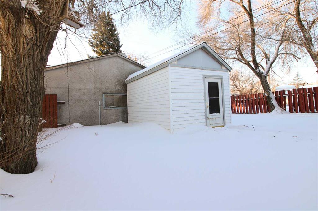 This 1955 bungalow is located on the Saskatchewan side of Lloydminster close to shopping, the Jack Kemp Community School, Glendale Park, and the dog park. The home boasts a functional family layout with an eat-in kitchen, living room, 2 bedrooms, and a 4-pc bathroom on the main level. The basement doubles the living space and features a family room, bedroom, laundry with non-private 2-pc bath, and storage. Lots of expensive updates have already been done! The home has vinyl windows and vinyl siding. The shingles were new in 2022, and the furnace was replaced in 2021. There is back-alley access to this property. The back yard is fenced and has a 14 ft X 10 ft shed with power. There is also a 24 ft X 24 ft double detached garage with one vehicle door. The garage is in need of repair. Call to view this terrific property!