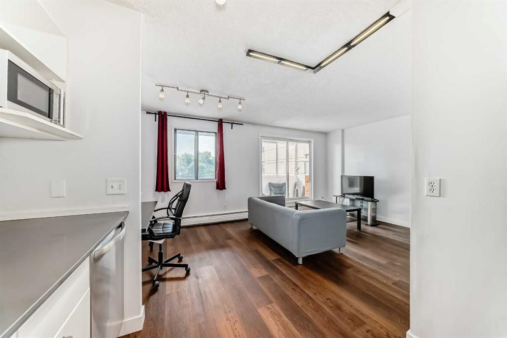 #504, 111 – 14 Avenue!! SELLER IS WILLING TO CONSIDER ALL REASONABLE OFFERS! This bright 5th-floor unit offers sunny south facing views along with an unbeatable location just steps from the Stampede Grounds, 17th Avenue, the C-Train, and all the amenities of downtown living. There is a good sized living room, functional kitchen, bedroom and bath plus brand new easy care laminate flooring throughout! There is an UNDERGROUND HEATED parking stall, ideal for keeping your vehicle warm during the cold winter months! Enjoy the unique sunroom, an inviting bonus space not included in the official square footage, perfect for relaxing or entertaining. The unit can also be sold fully furnished at no extra cost, making it truly move in ready. Whether you’re a first time buyer, investor, or simply seeking a low-maintenance lifestyle, this condo is a smart choice. Take a stroll to nearby Lindsay Park or explore the countless shops, cafes, and restaurants in this vibrant community. Best of all, the condo fee includes heat, electricity and water, combining convenience and value in one outstanding package. Short Term Rental Application and Policy can be viewed under Supplements