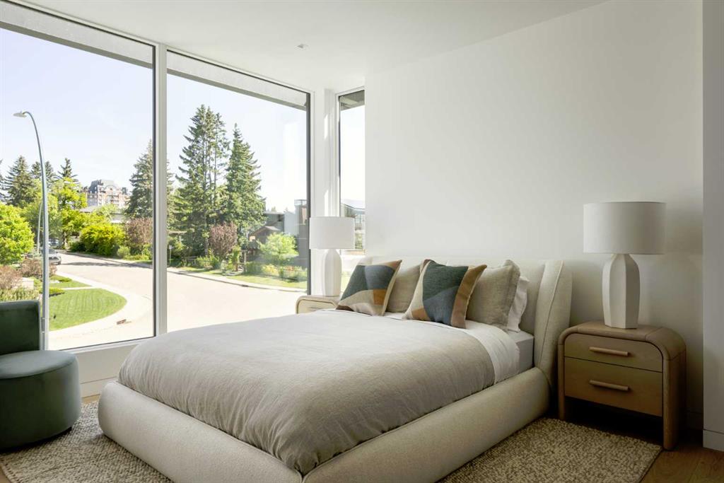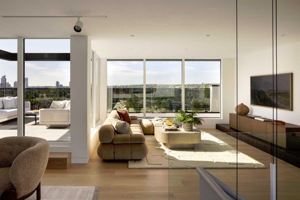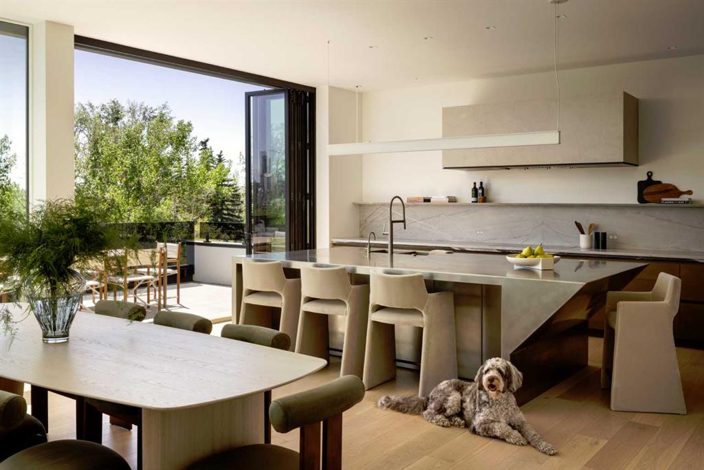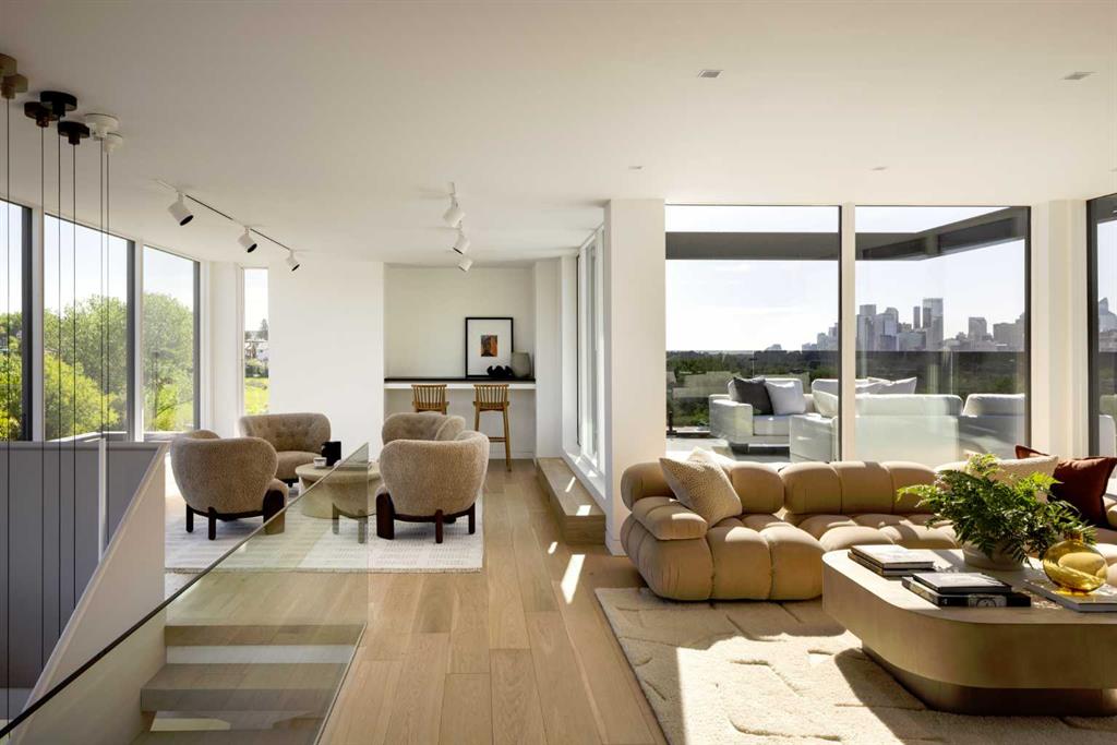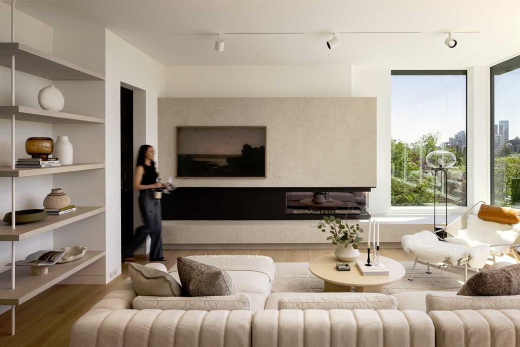 Nestled in the prestigious Briar Hill neighborhood, this warm contemporary masterpiece, built by Wurzer Page Homes, spans 6,000 sq ft of exquisite living space, embodying California-inspired design and exceptional craftsmanship. Designed by R-EID Studio as a true architectural gem, this south-facing home boasts unequaled city views from every level, with all three exterior patio spaces basking in southern light, framed by an oversized Loewen window package. Constructed with steel, wood, and concrete, the residence exudes sophistication with high-end quartzite and stone finishes, matte white California Faucets, and a stainless steel island. The entire home operates on a Lutron control system, featuring designer light fixtures throughout, including a stunning Bocci light fixture above the basement bar. Designed for seamless entertaining, the walkout basement offers a 12-foot ceiling and a 36’ wide folding door, blending indoor and outdoor living. Perfect for hosting or relaxation, the home includes a 400 sq ft dedicated gym, a serene office with floor-to-ceiling windows, and heated floors in the basement and garage, with rough-in for driveway heat. Located in a tranquil setting next to green space, surrounded by luxury homes, it’s close to downtown and hospitals. With too many features to capture in print, this home must be experienced in person—a private tour is recommended. Potential buyers are advised to drive by at night to witness the captivating illumination.