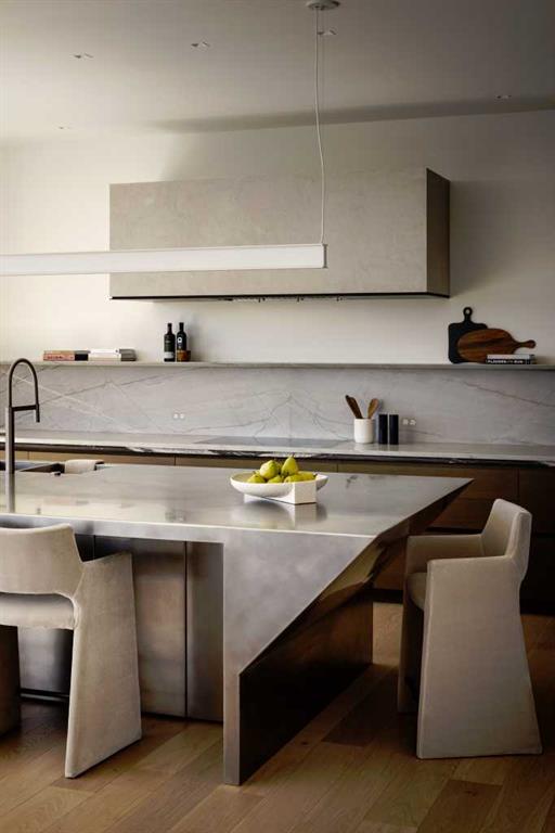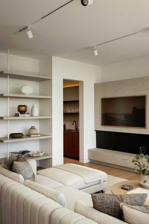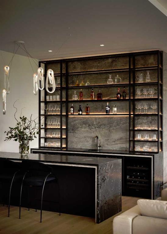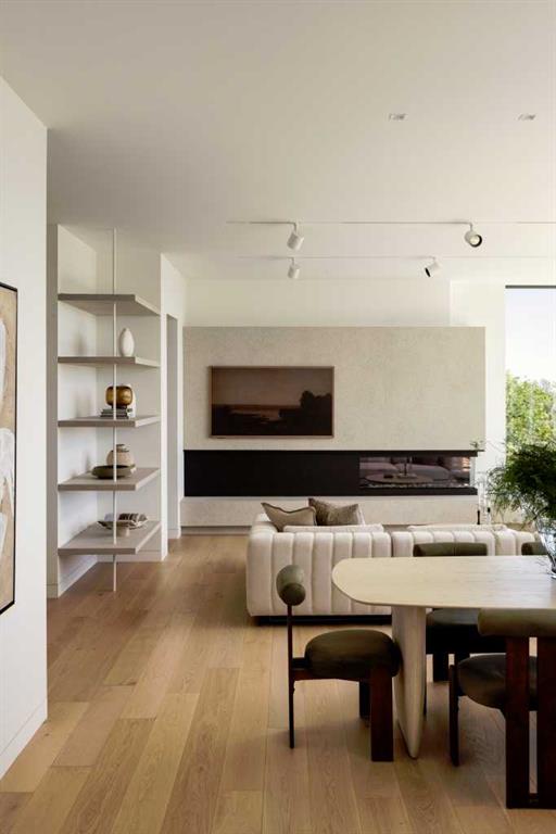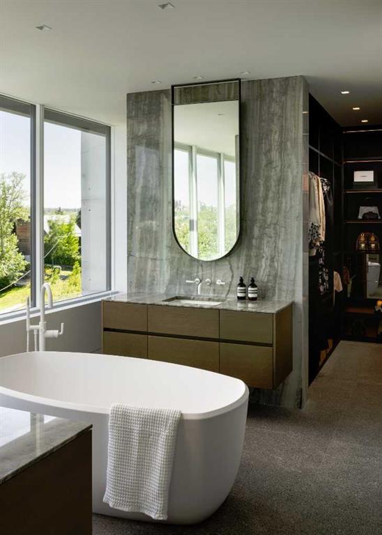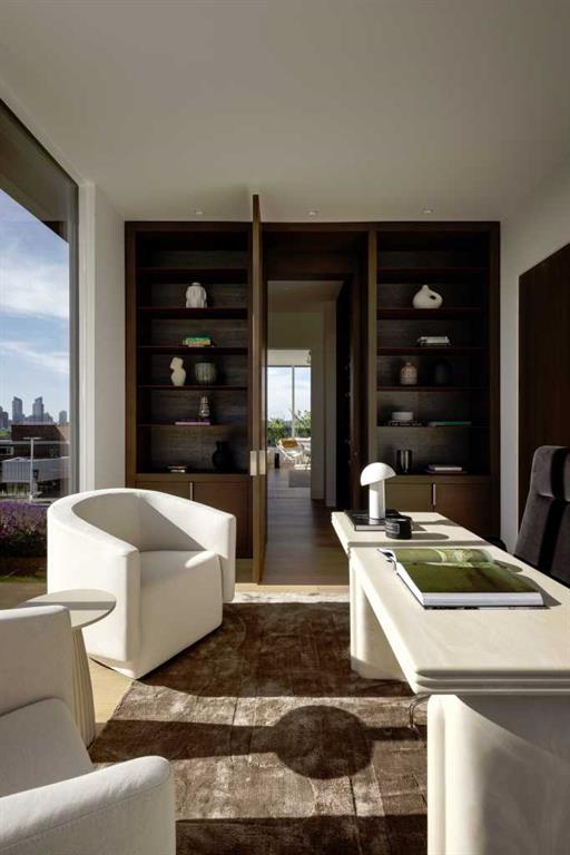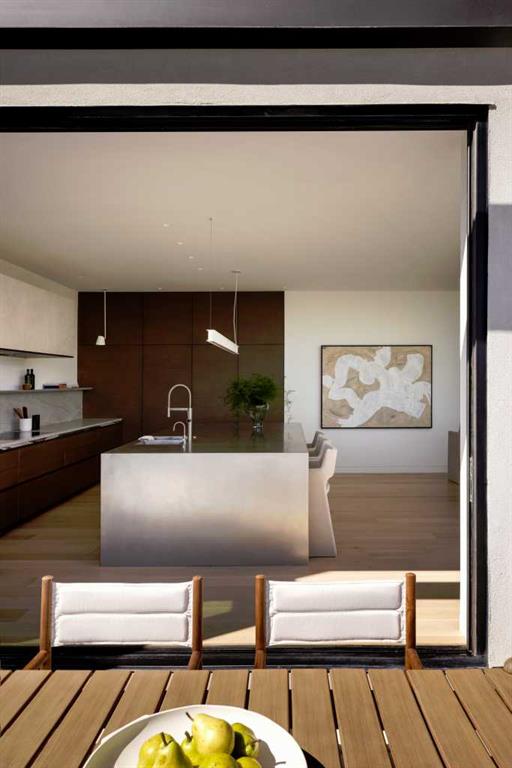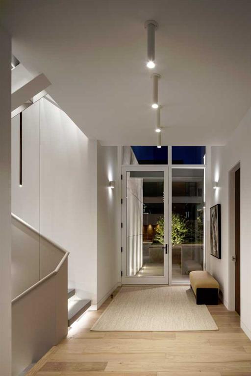 Nestled in the prestigious Briar Hill neighborhood, this warm contemporary masterpiece, built by Wurzer Page Homes, spans 6,000 sq ft of exquisite living space, embodying California-inspired design and exceptional craftsmanship. Designed by R-EID Studio as a true architectural gem, this south-facing home boasts unequaled city views from every level, with all three exterior patio spaces basking in southern light, framed by an oversized Loewen window package. Constructed with steel, wood, and concrete, the residence exudes sophistication with high-end quartzite and stone finishes, matte white California Faucets, and a stainless steel island. The entire home operates on a Lutron control system, featuring designer light fixtures throughout, including a stunning Bocci light fixture above the basement bar. Designed for seamless entertaining, the walkout basement offers a 12-foot ceiling and a 36’ wide folding door, blending indoor and outdoor living. Perfect for hosting or relaxation, the home includes a 400 sq ft dedicated gym, a serene office with floor-to-ceiling windows, and heated floors in the basement and garage, with rough-in for driveway heat. Located in a tranquil setting next to green space, surrounded by luxury homes, it’s close to downtown and hospitals. With too many features to capture in print, this home must be experienced in person—a private tour is recommended. Potential buyers are advised to drive by at night to witness the captivating illumination.