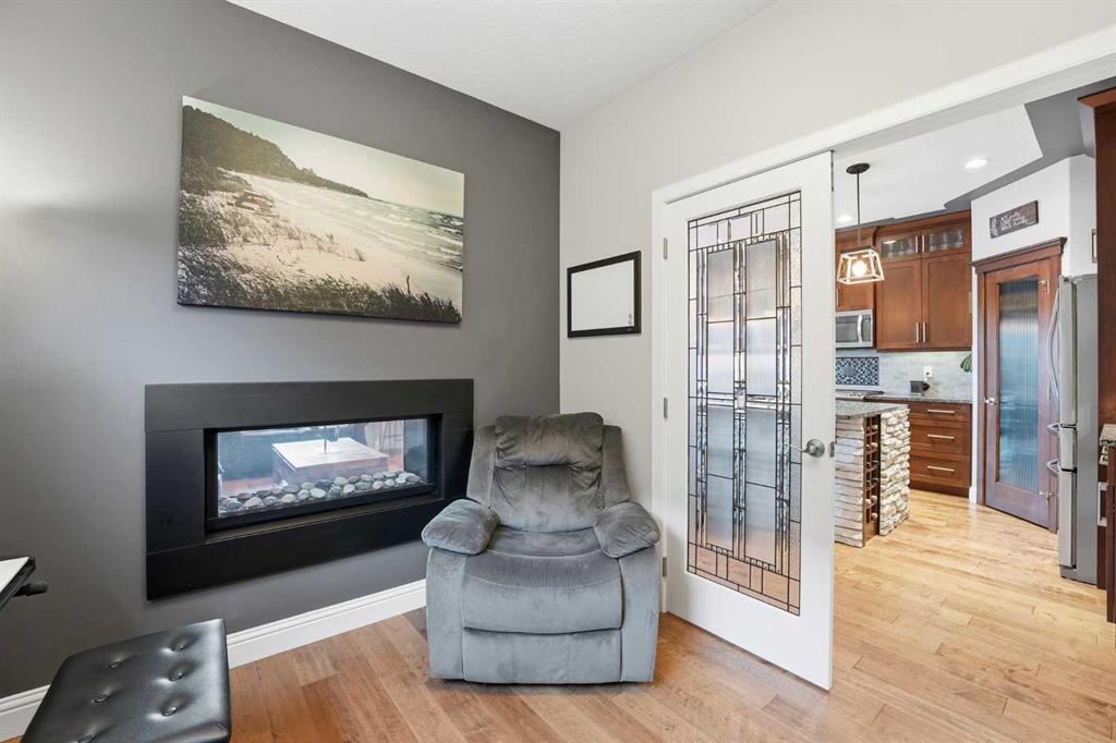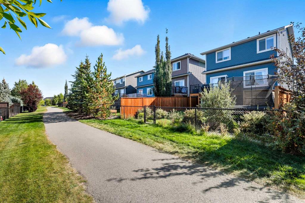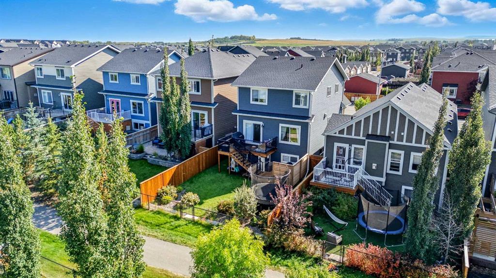Welcome to 166 Fireside Bend, a well-designed family home backing onto a landscaped pathway in the heart of Fireside. Offering 2,000 developed SQ FT, his home is ideally situated on a generous lot. With schools, playgrounds, parks, and Fireside’s retail hub just steps away, this location is perfect for families seeking both convenience and a strong sense of community. The main floor features a bright, open-concept layout with large rear-facing windows overlooking the backyard. The kitchen is the true centerpiece, showcasing full-height cabinetry with glass display uppers, a built-in wine rack, granite countertops, stainless steel appliances including a gas range, corner pantry, and a large island with breakfast bar and eye-catching stone detail. Thoughtful lighting and generous prep space make it ideal for both everyday living and entertaining. The dining area offers easy access to a well-designed two-tiered deck, creating a private outdoor space for hosting, relaxing, and enjoying summer evenings while overlooking mature landscaping and the pathway beyond. The great room is anchored by a stone feature wall with a double-sided fireplace, shared with the main floor office or den; A flexible space ideal for working from home or a quiet retreat. Upstairs, a vaulted-ceiling bonus room provides excellent additional living space filled with natural light. The primary suite features a walk-in closet and a well-appointed ensuite with jetted tub and standalone shower. Two additional bedrooms, a full bathroom, and a conveniently located laundry room complete the upper level. The undeveloped basement is ready for future customization with bathroom rough-in and large windows for added natural light. This home offers exceptional value in one of Cochrane’s most family-friendly communities! Book your private showing today before it’s gone!