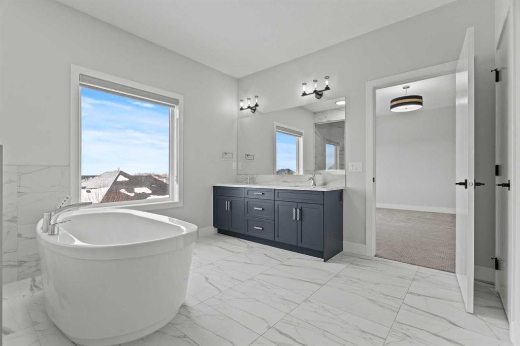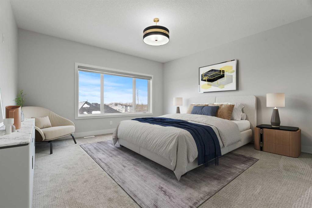 Newly built in December 2023, this exceptional residence is located in the prestigious community of Artesia at Heritage Pointe, offering a perfect blend of luxury, functionality, and modern design. Boasting 6 bedrooms and 5.5 bathrooms, this home is thoughtfully designed to accommodate growing families, multi-generational living, or those who love to entertain. The main floor features 10-foot ceilings and an open-concept layout where the chef’s kitchen overlooks the dining and living areas. The kitchen is highlighted by a large central island, expansive pantry, and premium finishes—ideal for everyday living and hosting. A rare main-floor bedroom with ensuite and private sitting area offers incredible flexibility, perfect for in-laws, teenagers, guests, or a sophisticated home office. An additional beautiful powder room, a big mud room and access to an oversized patio overlooking the pond completes the main floor. Upstairs, you’ll find a spacious bonus room, along with a luxurious primary retreat featuring a spa-inspired ensuite with a large shower and soaker tub. The primary suite conveniently connects to the upper-level laundry room. Three additional bedrooms and two additional full washrooms complete this level, including one with its own private ensuite. The fully developed walk-out basement is an entertainer’s dream, offering awet bar, gym, generous storage, and a large bedroom with a full bathroom—ideal for guests or extended family. Additional highlights include a triple heated garage with epoxy flooring, triple-pane windows, Gemstone exterior lighting, heating and cooling controls on each level, and 9-foot ceilings throughout the upper and lower levels. The home is fully landscaped with underground sprinklers, exposed aggregate concrete pad under the patio, and with a beautiful lighted pergola to enjoy under the summer and autumn nights. This is a rare opportunity to own a nearly new luxury home in one of the most sought-after communities in the Calgary area.