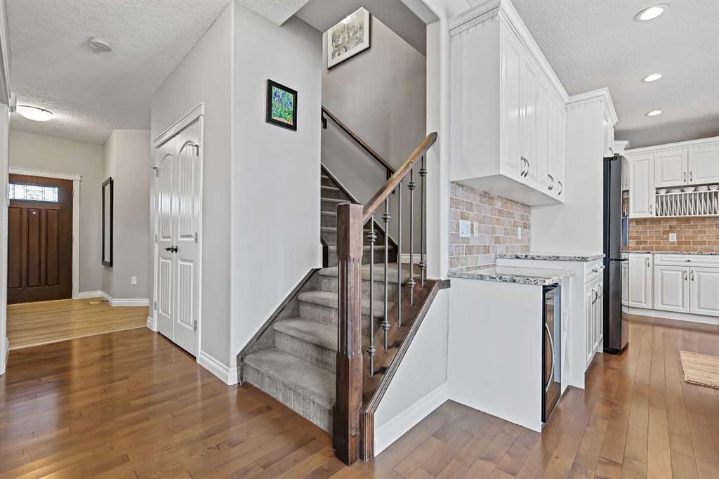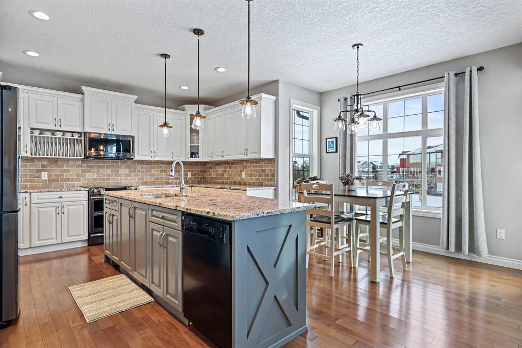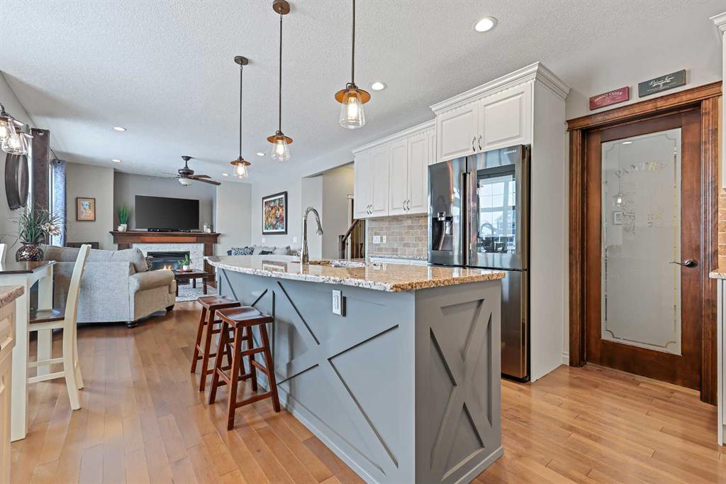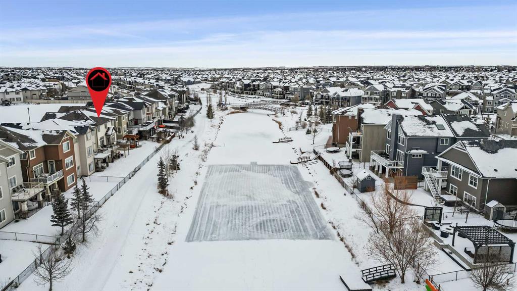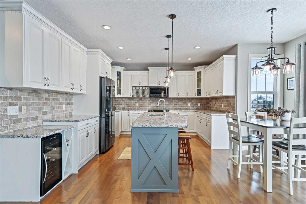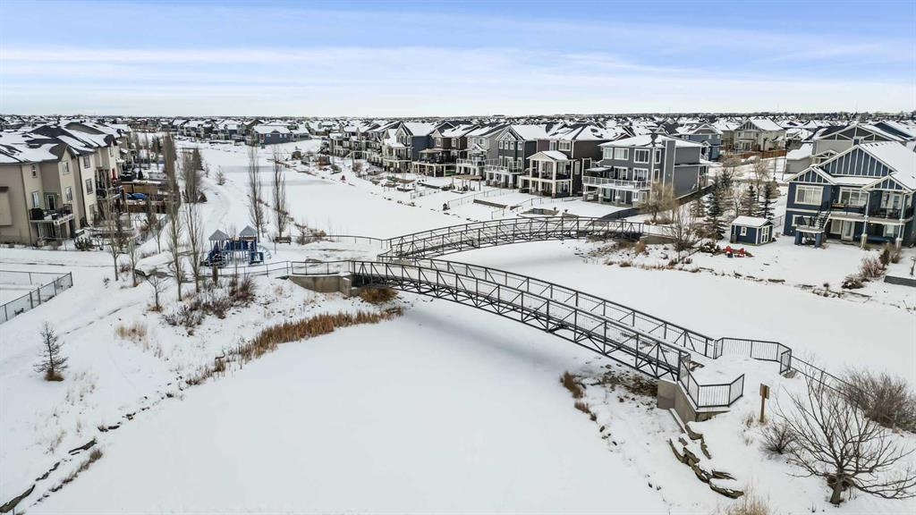 OPEN HOUSE - Saturday Jan 17, 12pm to 2pm! Welcome to Bayside, where a true village atmosphere defines everyday living and community comes first. Here, neighbours gather, children play freely, and winter ice rinks become a shared tradition for all to enjoy. In the summer enjoy paddle boarding and kayaking in your own back yard. This beautifully maintained, air conditioned home has been thoughtfully cared for and is ready to welcome its next family. With 4 beds, 3.5 baths, and more than 3,500 sq ft of developed living space, this home has space for everyone. The main floor offers an exceptional open-concept layout featuring a stunning kitchen, living area, and breakfast nook designed for both daily living and effortless entertaining. Granite countertops, upgraded stainless steel appliances, an abundance of cabinetry, an oversized island with seating space, and an included wine fridge create a space that is as functional as it is inviting. Soaring ceilings and expansive windows overlooking the canal are perfectly complemented by a gas fireplace, creating a warm and elegant backdrop. This level also includes a formal dining room, a spacious den, a convenient half bath, and a mudroom with walk-through pantry access, ideal for seamless organization. Upstairs, the home continues to impress with an oversized bonus room perfect for movie nights or relaxing gatherings. The large primary retreat, accessed through French doors, features a spa-inspired five-piece ensuite with jetted tub and separate shower, along with a spacious walk-in closet. Two additional generously sized bedrooms and a four-piece bath complete this level. Originally designed with four bedrooms up and main-floor laundry, one upper bedroom has been converted into an exceptional laundry room, with the option to easily revert back to a five-bedroom layout as original hookups remain. The professionally developed lower level offers a private bedroom for guests or teens, a three-piece bath, ample storage, a wet bar, and a show-stopping recreation room with Dolby 7.1 wiring and built in ceiling speakers. This level has walk-out access to a concrete patio overlooking the canal. An additional poured concrete pad with cedar pergola and hot tub rough-in adds even more outdoor potential. Additional highlights include central air conditioning, refreshed paint throughout the main and upper levels, and evident pride of ownership throughout. Backing onto the canal and facing greenspace, soccer fields, and ball diamonds, the home also benefits from additional parking options and endless family-friendly recreation. Nose Creek Elementary is just steps from the front door, with parks, pathways, shopping, and amenities close at hand. Bayside remains one of Airdrie’s most sought-after communities—this is a move-in-ready home offering exceptional lifestyle and value.
