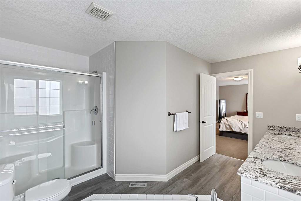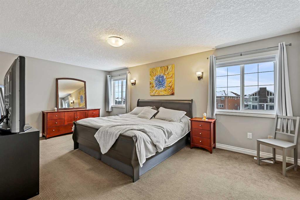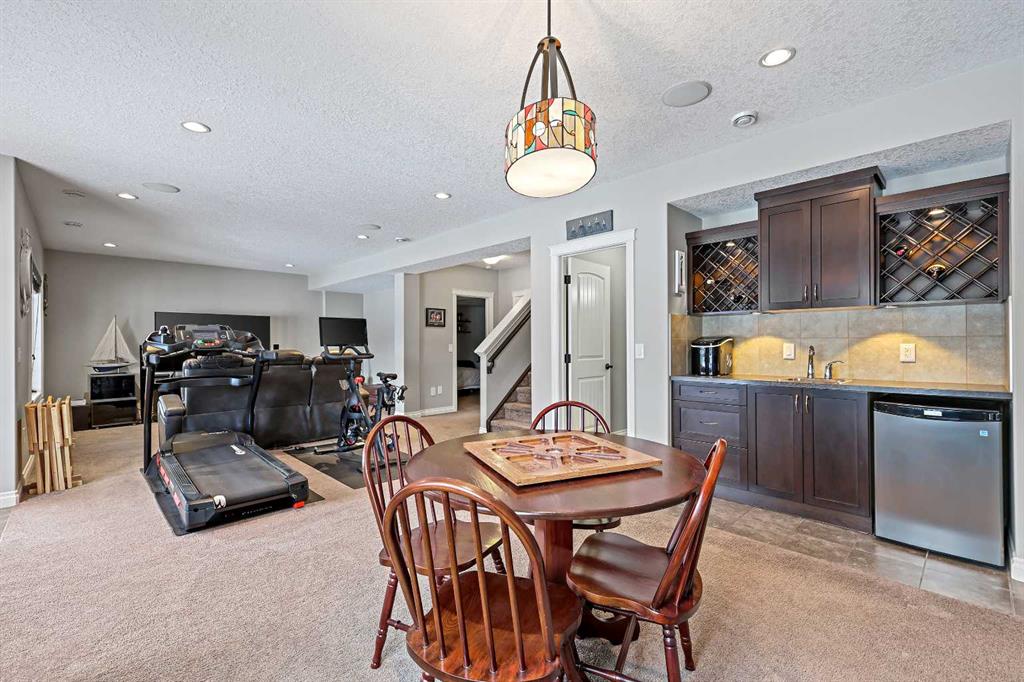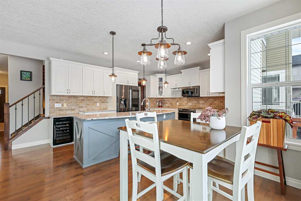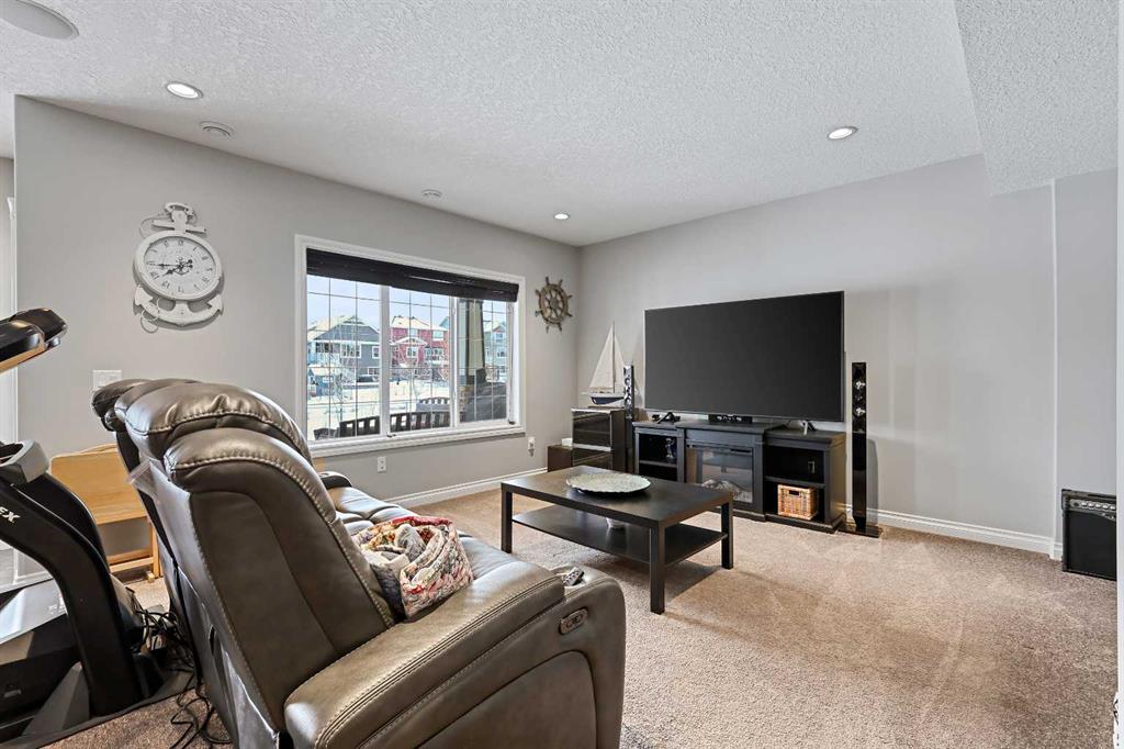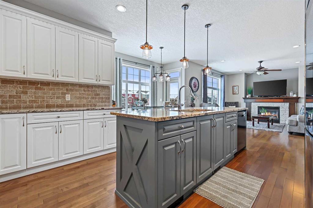 OPEN HOUSE - Saturday Jan 17, 12pm to 2pm! Welcome to Bayside, where a true village atmosphere defines everyday living and community comes first. Here, neighbours gather, children play freely, and winter ice rinks become a shared tradition for all to enjoy. In the summer enjoy paddle boarding and kayaking in your own back yard. This beautifully maintained, air conditioned home has been thoughtfully cared for and is ready to welcome its next family. With 4 beds, 3.5 baths, and more than 3,500 sq ft of developed living space, this home has space for everyone. The main floor offers an exceptional open-concept layout featuring a stunning kitchen, living area, and breakfast nook designed for both daily living and effortless entertaining. Granite countertops, upgraded stainless steel appliances, an abundance of cabinetry, an oversized island with seating space, and an included wine fridge create a space that is as functional as it is inviting. Soaring ceilings and expansive windows overlooking the canal are perfectly complemented by a gas fireplace, creating a warm and elegant backdrop. This level also includes a formal dining room, a spacious den, a convenient half bath, and a mudroom with walk-through pantry access, ideal for seamless organization. Upstairs, the home continues to impress with an oversized bonus room perfect for movie nights or relaxing gatherings. The large primary retreat, accessed through French doors, features a spa-inspired five-piece ensuite with jetted tub and separate shower, along with a spacious walk-in closet. Two additional generously sized bedrooms and a four-piece bath complete this level. Originally designed with four bedrooms up and main-floor laundry, one upper bedroom has been converted into an exceptional laundry room, with the option to easily revert back to a five-bedroom layout as original hookups remain. The professionally developed lower level offers a private bedroom for guests or teens, a three-piece bath, ample storage, a wet bar, and a show-stopping recreation room with Dolby 7.1 wiring and built in ceiling speakers. This level has walk-out access to a concrete patio overlooking the canal. An additional poured concrete pad with cedar pergola and hot tub rough-in adds even more outdoor potential. Additional highlights include central air conditioning, refreshed paint throughout the main and upper levels, and evident pride of ownership throughout. Backing onto the canal and facing greenspace, soccer fields, and ball diamonds, the home also benefits from additional parking options and endless family-friendly recreation. Nose Creek Elementary is just steps from the front door, with parks, pathways, shopping, and amenities close at hand. Bayside remains one of Airdrie’s most sought-after communities—this is a move-in-ready home offering exceptional lifestyle and value.
