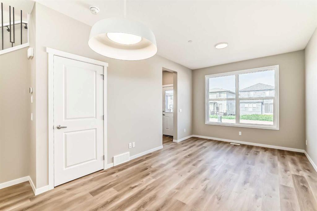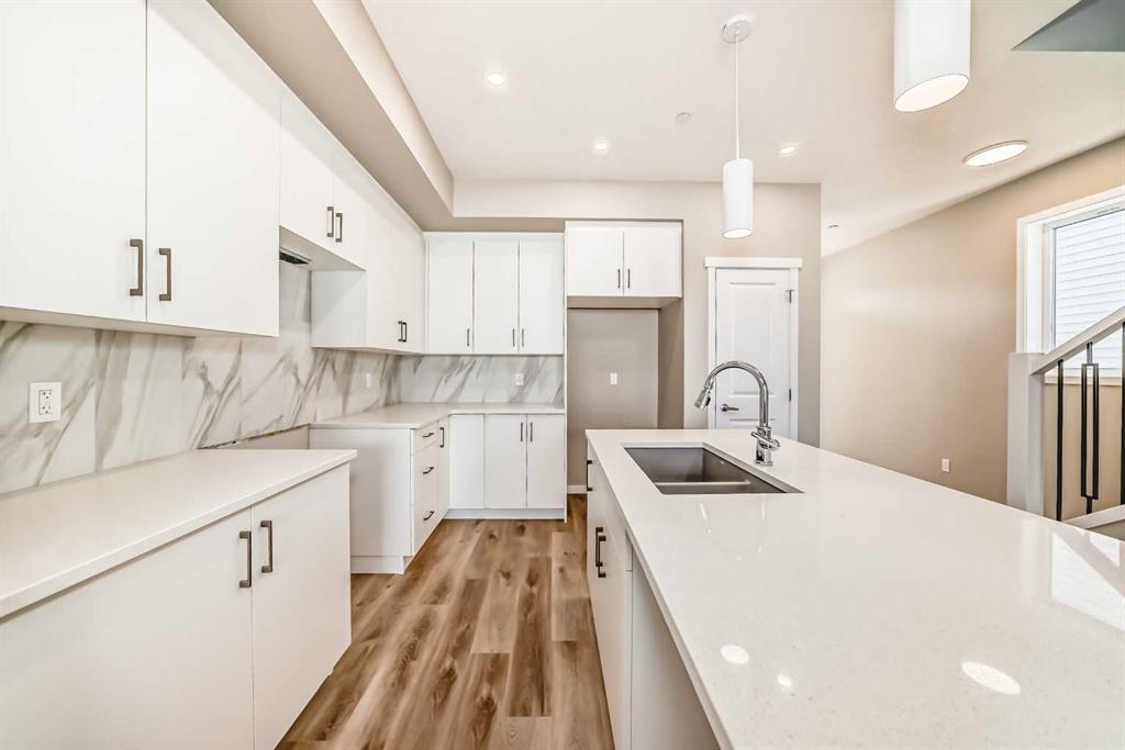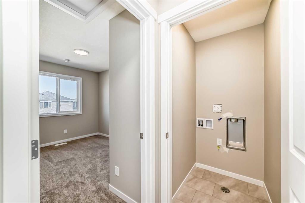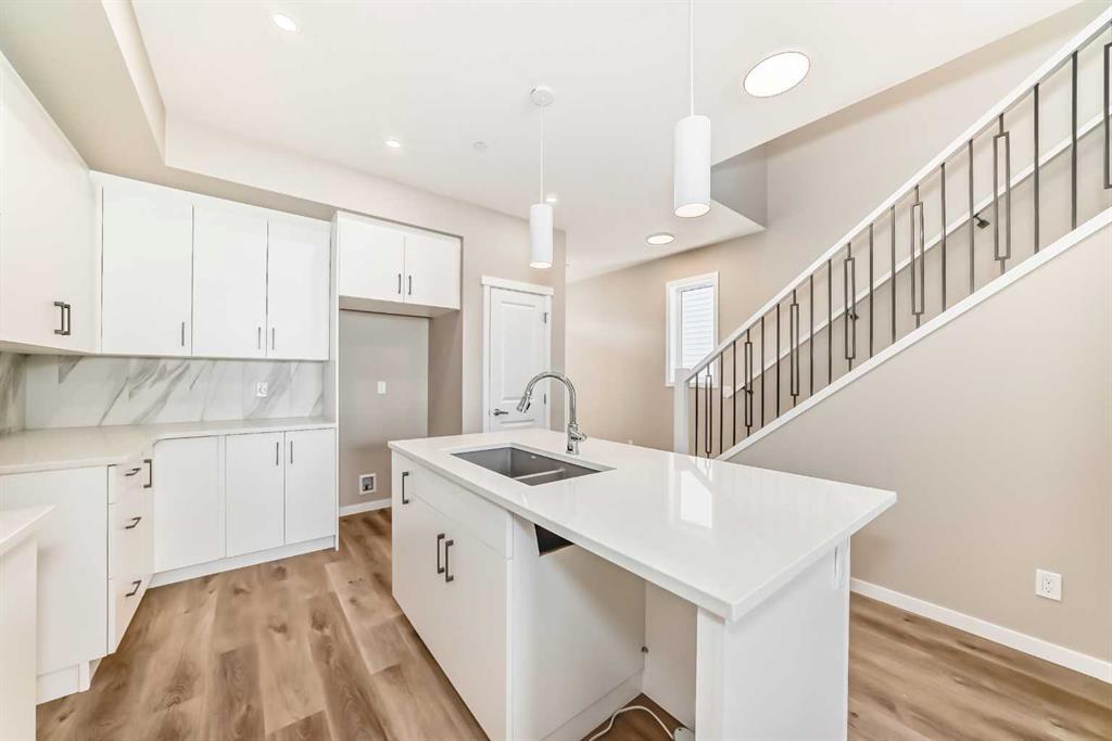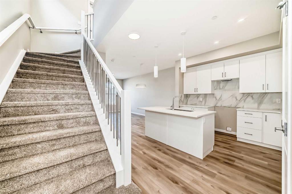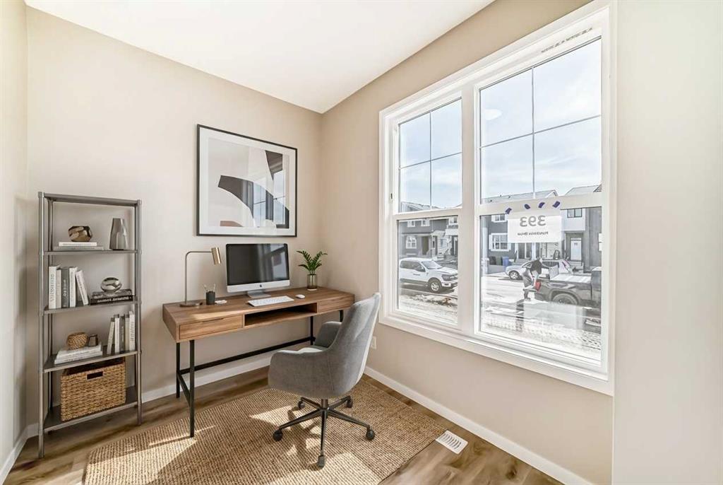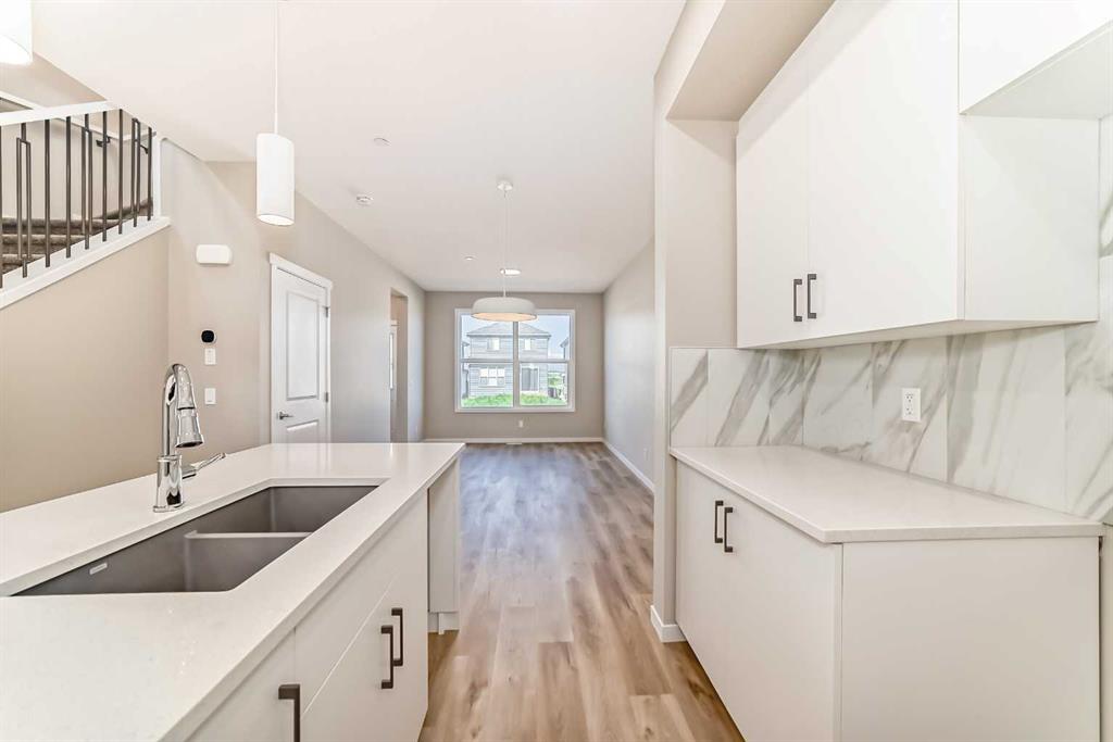 If you’ve been searching for a brand-new home but don’t want to wait for construction, this is your chance. Be the first to call this beautifully designed, never-lived-in 3-bedroom home by Hopewell Residential your own. Offering nearly 1,400 sq. ft. of thoughtfully planned living space and a side entrance for a potential future basement suite (a secondary suite would be subject to approval and permitting by the city/municipality), this home blends style, function, and future flexibility. From the moment you step inside, the home feels bright and welcoming thanks to an abundance of windows and a desirable west-facing backyard that captures the afternoon and evening sun. The main floor is finished in luxury vinyl plank flooring throughout, creating a seamless, modern look that’s both durable and easy to maintain. An upgraded railing that carries up the staircase helps create an open, connected feel between the levels, enhancing the overall sense of space. The main floor is designed for everyday living and effortless entertaining. A separate living room and family room give you flexibility—whether you want a cozy TV space, a more formal sitting area, or a play area for the kids. The dedicated dining area is well-positioned between the kitchen and family room, making it ideal for family dinners, hosting friends, or gathering for those special holiday meals. At the heart of the home is the show-stopping kitchen. Here you’ll find white kitchen cabinets extended to the bulkhead, creating a clean, custom feel with extra vertical presence. These are paired with white quartz counters and a marble-style backsplash, giving the space a fresh, upscale look that will stand the test of time. Stainless steel appliances, a large central island, and generous cabinet and counter space ensure this kitchen is as functional as it is beautiful, whether you’re preparing weeknight meals or entertaining a crowd. Just off the main living area, a generous pocket office provides a quiet, dedicated space for working from home, managing household tasks, or serving as a homework zone for the kids. Upstairs, the layout continues to prioritize comfort and convenience. The spacious primary bedroom offers a calming retreat at the end of the day, complete with a stylish 4-piece ensuite featuring dual sinks & an oversized shower. Two additional well-sized bedrooms provide flexibility for kids, guests, or a home office, while the upper-floor laundry room adds everyday practicality. A full main bathroom completes the second level, making the upstairs space feel balanced and family-friendly. The side entrance opens up future opportunities to develop the basement into a suite (a secondary suite would be subject to approval & permitting by the city/municipality), creating potential for extended family living or rental income down the road. Outside, the home comes fully finished with front and backyard landscaping, including sod, mulch along the side yards. The Benning by Hopewell Residential delivers it all.