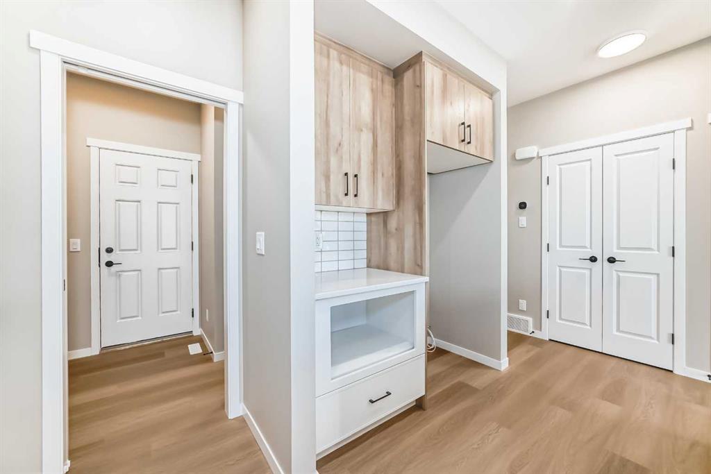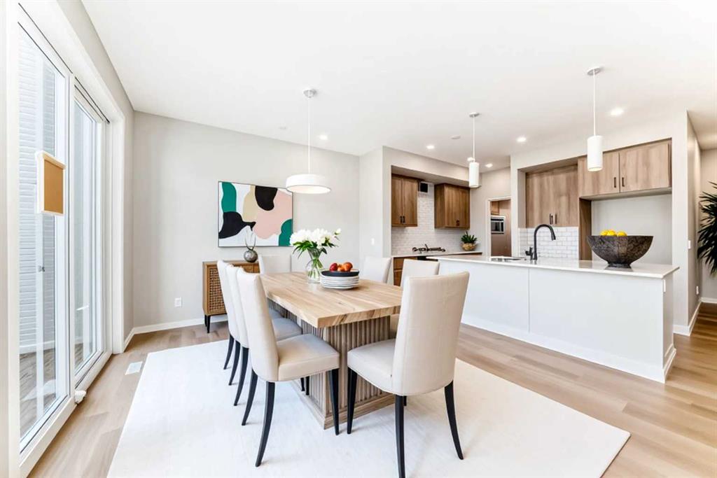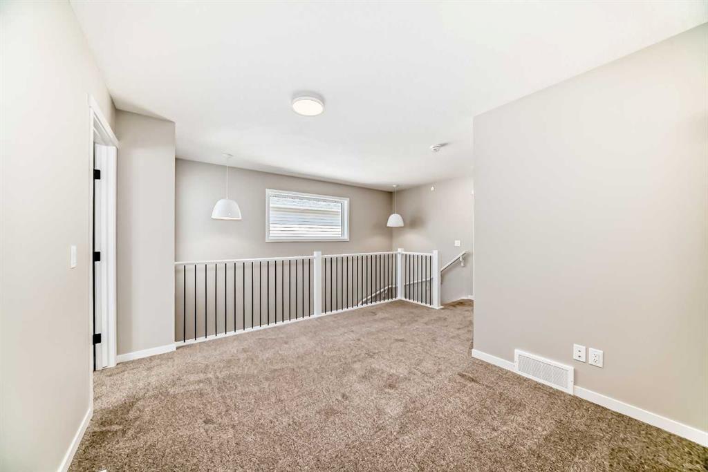 Step into the Carisa, a thoughtfully designed home that perfectly balances style, comfort, and everyday functionality—ideal for modern families seeking exceptional value in a growing community. From the moment you arrive, this home welcomes you with a layout that’s both practical and visually appealing. The open-concept main floor creates a warm, inviting atmosphere where the kitchen, dining, and lifestyle areas seamlessly connect. Large rear windows allow natural light to flood the space throughout the day, thanks to the desirable west-facing backyard, while an added window in the stairwell brings even more brightness to the heart of the home. The kitchen is designed to impress with upgraded quartz countertops, modern cabinetry, a built-in microwave, chimney hood fan, and pot lights that enhance the overall ambiance. An extra-large walk-in pantry offers incredible storage, making it ideal for growing families or avid home cooks. The main and upper floors are finished with sleek spindle railings, adding architectural interest and a clean, modern feel throughout. Upstairs, you'll find a spacious and flexible entertainment room—perfect for movie nights, a kids' play space, or even a quiet work-from-home setup. Three generously sized bedrooms, including a beautifully appointed primary suite, provide plenty of room for rest and relaxation. The primary bedroom is complete with a private ensuite, designed to offer a peaceful start and finish to each day. For added convenience, the upper-floor laundry room is just steps away from all bedrooms, making household routines that much easier. Downstairs, the 9-foot foundation sets the stage for future development with even more possibilities. The basement includes a wet bar rough-in and a secondary entrance, offering excellent flexibility for a future legal suite or multi-generational living (pending city approval and permitting). Whether you're looking to expand your living space or explore income-generating opportunities, the Carisa gives you room to grow. **This home also comes complete with full front and backyard landscaping, including sod, mulch on the side yards, and trees/shrubs in the front as per community guidelines. Located in the emerging southeast Calgary community of Hotchkiss, this home offers more than just a beautiful interior. Hotchkiss is designed for connection—with access to open green spaces, natural wetlands, and future parks that create a serene environment for outdoor enjoyment. The community also boasts easy access to major roadways like Stoney Trail and 22X, making commuting and weekend getaways a breeze. Whether you're heading downtown or out to the mountains, you'll appreciate the convenience of this well-connected location. In Hotchkiss, you'll find the perfect blend of quiet residential living, natural beauty, and proximity to everyday amenities—making it a place where families can truly thrive. The Carisa is more than just a home—it’s a foundation for lasting memories and f