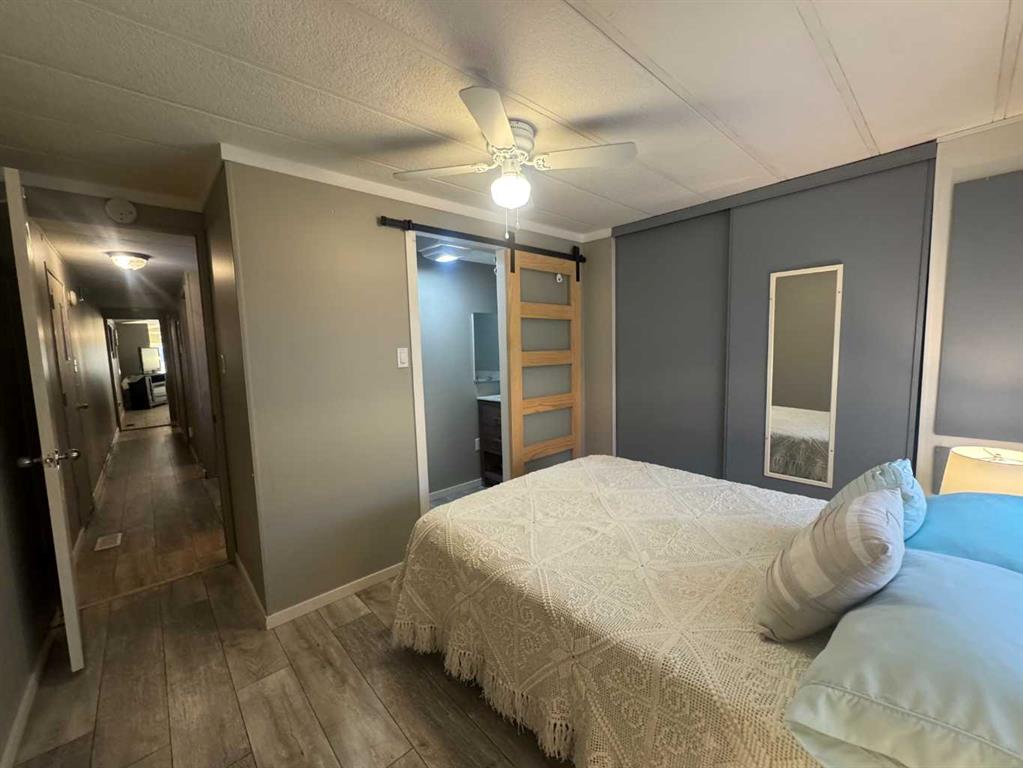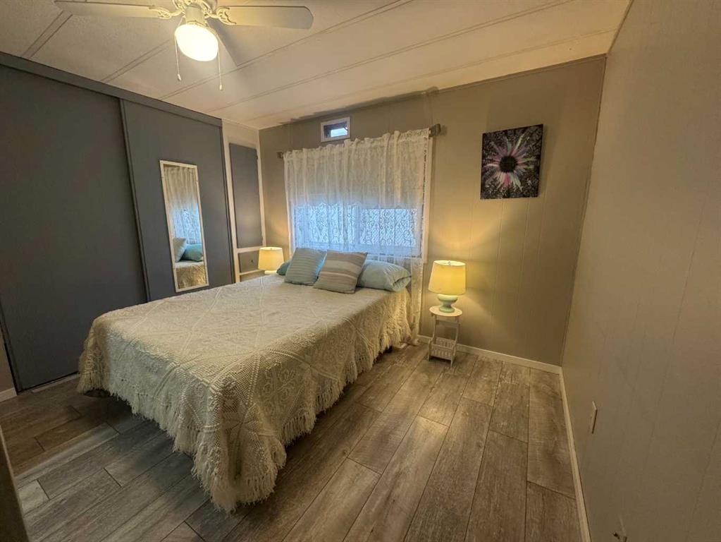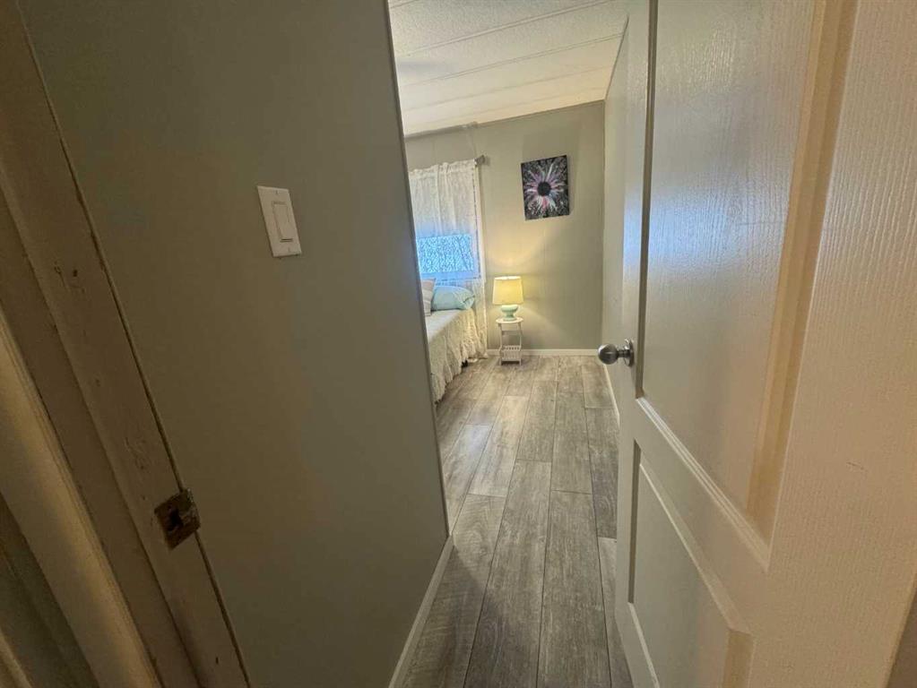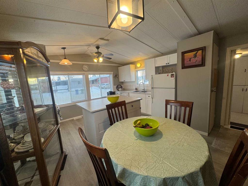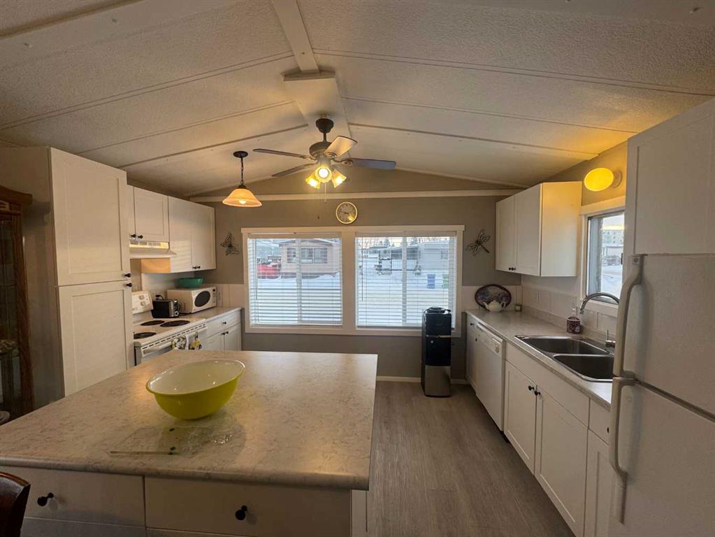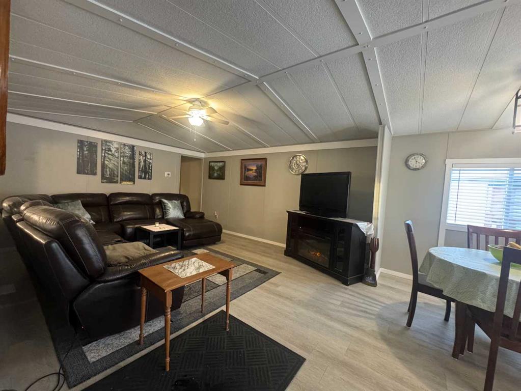 Welcome to this beautifully renovated and well-cared-for mobile home, ideally located near the G.H. Dawe Centre—one of the city’s premier recreation facilities—along with schools, shopping, restaurants, and everyday amenities close by. From the moment you step inside, the vaulted ceiling creates an open, airy feel that immediately makes the home feel large and inviting. This thoughtfully laid-out home offers 3 bedrooms and 1.5 bathrooms, with recent updates throughout, including high-end vinyl flooring that adds both style and durability. The kitchen is a true highlight, featuring a spacious laminate island with built-in storage, ample cupboard and counter space, upgraded lighting, and ceiling fans—perfect for everyday living and entertaining alike. The living room offers plenty of space to gather and overlooks the impressive 10’ x 30’ addition, that could be set up as a games room and comes with a dart board, but easily adaptable to suit your lifestyle. Down the hall, you’ll find two generous bedrooms, a full 4-piece bathroom with a relaxing JETTED TUB, and conveniently located washer and dryer. The primary bedroom is privately situated at the end of the hall and features a stylish barn door leading to its own 2-piece ensuite—an ideal retreat at the end of the day. Additional features include newer windows, a 10x10 SUNROOM, a 7-year-old furnace, an 8’ x 12’ storage shed, dedicated parking, and a fully fenced yard that has been lovingly maintained and will boast beautiful flowers in the spring. Lot rent is $910 per month and includes water, garbage, and snow removal of common areas, offering excellent value and ease of living. This is a move-in-ready home that has clearly been cared for with pride. Comfortable, functional, and full of charm—this is a fantastic opportunity for someone looking for quality, convenience, and a place that truly feels like home.