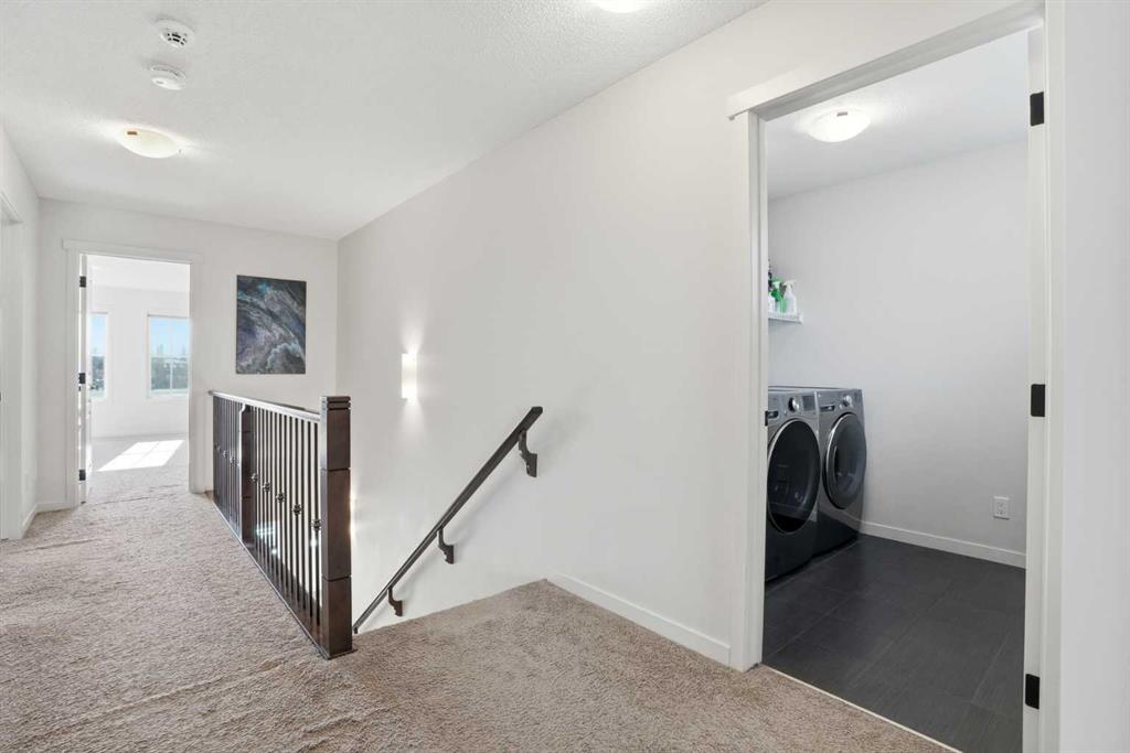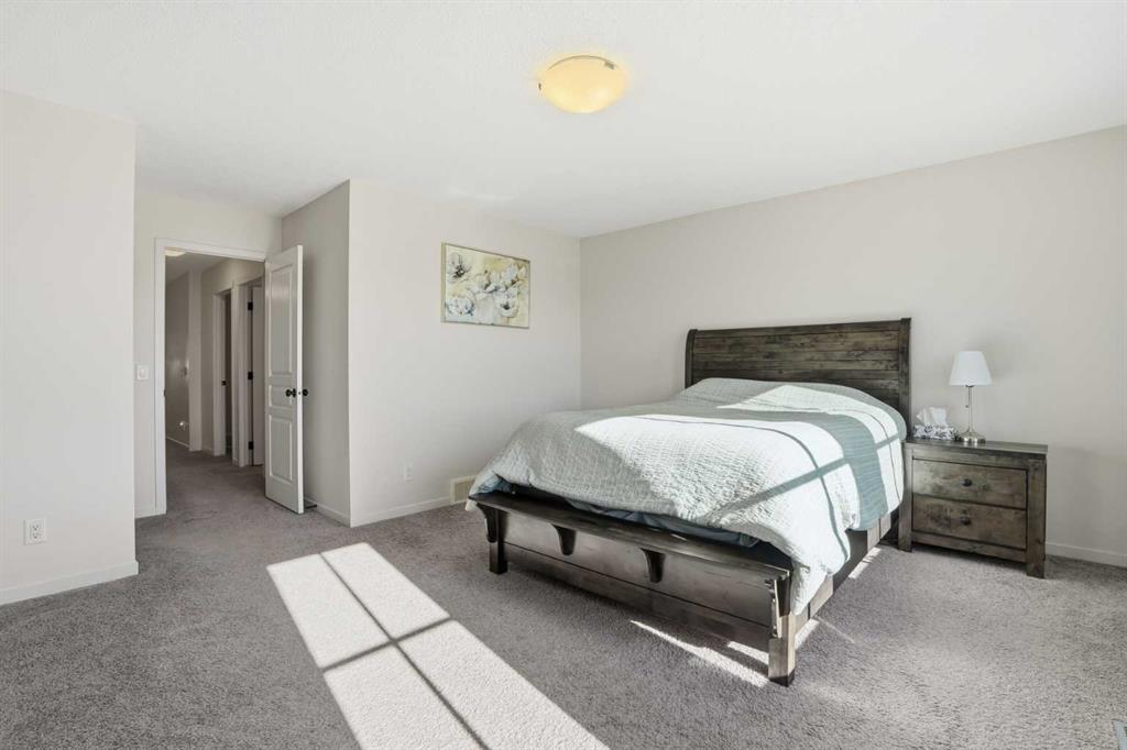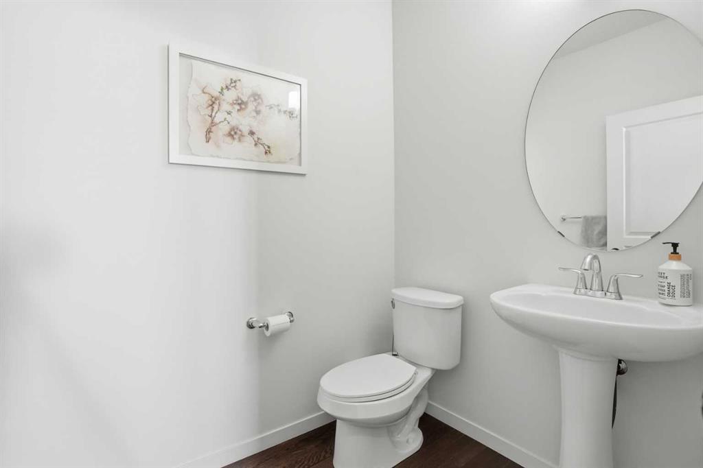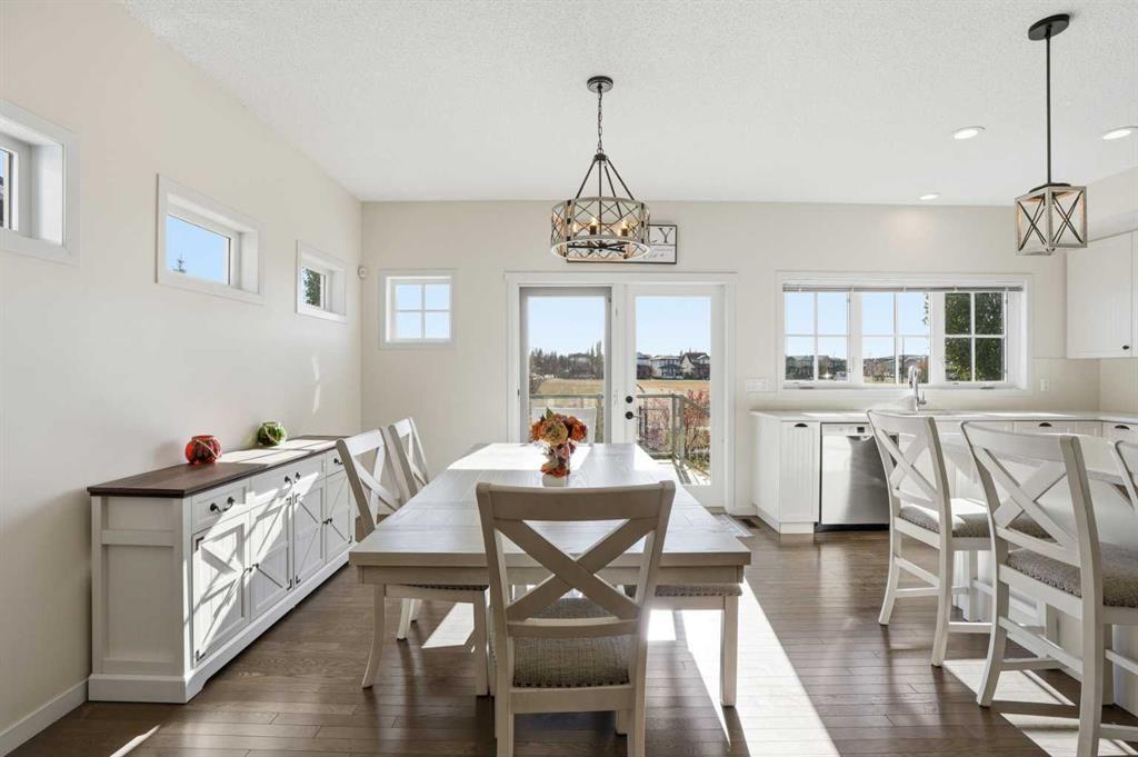 Welcome to this beautifully maintained 3-bedroom, 2.5-bathroom home backs onto large green field, next to the school in the heart of Reunion, Airdrie. Offering 2168 sq. ft. of bright, inviting living space with a versatile bonus/flex room, this home truly stands out for its thoughtful layout and pride of ownership. Step inside to a spacious entryway and rich hardwood floors that flow seamlessly throughout the main level. The open-concept design creates an airy, connected feel, while south-facing windows fill the home with natural light all day long. On cooler evenings, unwind by the cozy gas fireplace in the generous living room. The chef’s kitchen is a perfect hub for family gatherings and entertaining, featuring a gas stove, stainless steel appliances, ample counter space, and a large island with breakfast bar. A spacious mudroom with built-in lockers keeps everything organized as you come and go. Upstairs, a bright bonus room offers flexibility for a family retreat, play area, or home office. The primary suite overlooks the backyard and includes a walk-in closet and spa-like ensuite. Two additional bedrooms, a full bath, and convenient upper-floor laundry complete the level. The bright, unfinished basement is ready for your ideas—whether you envision a rec room, home gym, or additional living space, the possibilities are endless. Outside, enjoy the south-facing, fully landscaped, and fenced backyard, complete with a spacious deck and backs onto plenty of green space for play or relaxation. With Herons Crossing (K–8) School just across the back field, plus parks, playgrounds, and shopping nearby, this home perfectly blends comfort and convenience. Additional features include air conditioning, a double attached garage, and newly installed permanent exterior lights . Don’t miss this rare opportunity to own a warm, inviting home in a friendly, family-oriented community—book your private showing today!